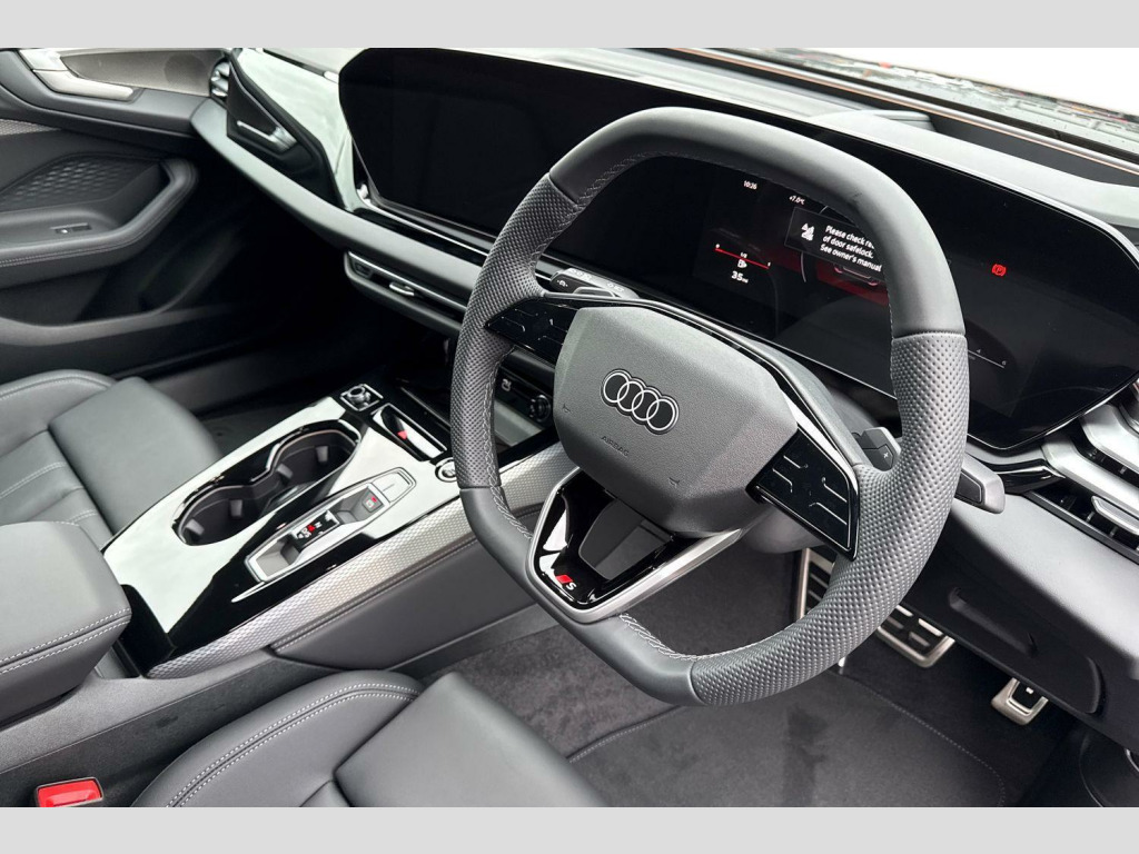 Sound and Vision Pack, Twin Leather - Front Sport Seats with S Embossed Logo - Black with Steel Grey Stitching, 19in Alloy Wheels - 8.0J 5-Twin-V-Spoke Design - Graphite Grey, 2 USB-C Ports in both the Front and the Rear, 3-Zone Automatic Climate Control, Accent Surfaces and Control Buttons in Gloss Black, Adaptive Cruise Control, Advanced Driver Attention and Fatigue Monitor, Airbags in Front - Front Passenger Airbag Can Be Manually Deactivated, Aluminium Window Trims, Ambient Lighting Package Plus, Anti Theft Wheel Bolts, Anti-Theft Alarm, Audi Application Store and Smartphone Interface, Audi Assistant, Audi Connect Emergency Call and Service with Audi Connect Remote and Control, Audi Connect Navigation and Infotainment (3 Year Subscription From New), Audi Drive Select, Audi Sound System, Auto-Dimming Rear-View Mirror, Automatic Start-Stop with Coasting Functionality and Efficiency Programme, Body Coloured Door Mirrors, Camera Based Traffic Sign Recognition, Comfort Centre Armrest - Front, DAB Digital Radio Reception, Dashboard - Black with Contrast Stitching, Electric Child Safety Lock, Exterior Mirrors - Electrically Adjustable - Heated and Folding - Automatically Dimming on Both Sides, First Aid Kit and Warning Triangle and Safety Vests, Front Door Sill Trims with Aluminium Inlays - Illuminated with S Logo, Front Emergency Brake Assist, Front Seats with Manual Adjustment for Position and 4-Way Electric Lumbar Support, Front Side Airbags with Head Airbag System and Front Interaction Airbag, Front and Rear Floor Mats, Headlining in Cloth - Black, Heated Front Seats, High Beam Assist, Hill Hold Assist, I-Size Child Seat Mounting on the Front Passenger Side and I-Size and Top Tether on the Outer Rear Seat, Inlays in Matt Brushed Aluminium with Linear Embossing - Anthracite, Intersection Assist, Keyless Go, LED Headlights, LED Rear Lights Pro, Lane Departure Warning, Luggage Compartment Lid - Electrically Opening and Closing, MMI Navigation Plus with High Resolution 14.5in OLED Touchscreen Colour Display and Audi Virtual Cockpit Plus with 11.9in OLED Colour Display, Manual Steering Column Adjustment, Park Assist Plus, Parking System Plus with 360 Degree Display, Phone Compartment with Wireless Charging, Privacy Glass, Progressive Steering with Servotronic, Rear-View Camera, S Line Badge on the Front Wings, S Line Exterior Styling, Seat Belt Monitoring with Rear Seat Occupant Reminder - Child Presence Detection, Side and Rear Windows in Heat-Insulating Glass, Softwrap in Leatherette with Contrast Stitching, Split-Folding Rear Seat Bench Can Be Split 40-20-40 with Centre Armrest and Cup Holders, Sports Suspension - Lowered by 20mm, Stainless Steel Pedals and Footrest, Steering Wheel - 3-Spoke Leather - Multi-Function Buttons with Touch Control - Flattened on Top and Bottom - S Badging - Contrast Stitching - Steering Wheel Grips in Perforated Leather - Shift Paddles, Swerve Assist and Turn Assist, Traffic-Sign-Based Speed Limiter, Tyre Pressure Loss Indicator, Tyre Repair Kit, Upper and Lower Interior Elements in Leatherette, White Rhombus Logo Projection Light in Exterior Mirrors, Windscreen with Acoustic Glazing