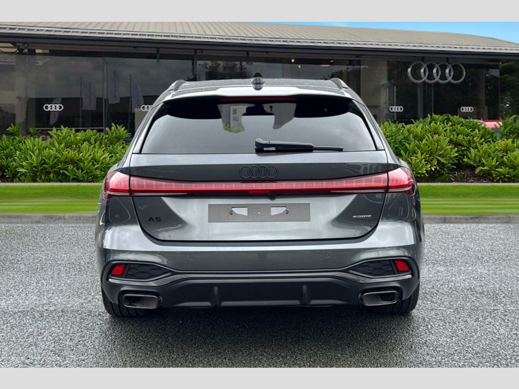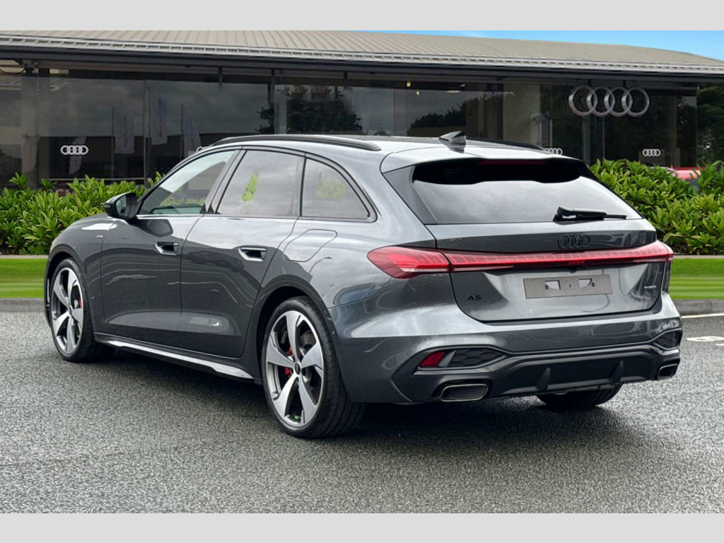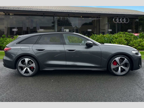 Take a look at the future of driving with this brand new Audi A5 Avant. Finished in the stunning and sophisticated Daytona Grey pearl effect paint, this model perfectly balances modern hybrid efficiency with Audi's famous performance. As a 2.0 e-hybrid, it features a powerful 25.9kWh battery that allows for impressive electric-only driving, while the S Tronic gearbox and quattro all-wheel drive ensure a smooth and confident ride on any road. This Edition 1 model looks incredible thanks to the striking 20-inch 5-Arm Fold Design alloy wheels, which are beautifully contrasted by vibrant red brake calipers. The sleek look is enhanced by the black styling pack, featuring bold black badging that replaces the traditional chrome for a more aggressive and modern finish.