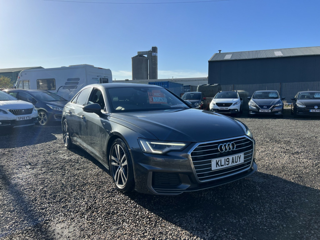 ????2019 AUDI A6 2.0 40TDI S LINE AUTOMATIC S TRONIC 4DR 84,000 MILES F/S/H/£17,495, BEAUTIFUL EXAMPLE IN MATALIC GREY WITH FULL MAIN DEALERSHIP SERVICE HISTORY AND 2 X KEYS/, 3rd brake light, Anti-lock Brake System (ABS), Electronic Stability Program (ESP), One touch indicator, Power assisted brakes, Rear cross traffic camera, Active speed limit assist, Tyre pressure monitor, Hands-free Bluetooth system, Telephone, Voice control for telephone, Adaptive cruise control, Autopilot function, Check control system, Configurable dashboard display, Cruise control, Navigation system, Keyless go, Service interval indicator, Steering wheel audio controls, Steering wheel with cruise control operation, Tool kit, Travel data recorder, Trip computer, Engine start button, Power Assisted Steering, Rev counter, Start/Stop system, Traction control, Digital radio, Radio/CD, USB input, Touchscreen media control, Body coloured bumpers, Rear boot, Daytime running lights, Door mirror indicators, LED daytime running lights, Xenon headlights, Air conditioning, Front centre armrest, Front head restraints, Front interior 12V power outlet, Rear headrests, OEM sound system, Apple CarPlay, Rear armrest, Steering wheel manually adjustable, Steering wheel rake adjustment, Steering wheel reach adjustment, Leather gear selector trim, Leather handbrake trim, Leather interior door trim, Leather steering wheel, Electric door mirrors, Metallic Paint, Electric parking brake, Front parking sensor, Rear park assist camera, Rear parking sensor, Self steering parking system, 3x3 point rear seat belts, Active front head restraints, Drivers airbag, Isofix child seat anchor points, Manual child proof locks, Passenger airbag, Height adjustable drivers seat, Heated front seat, Height adjustable passenger seat, Lumbar support, Alarm, Central locking, Immobiliser, Remote central locking, half Leather seat upholstery, Alloy wheels, Tyre repair kit, Front electric windows, Rear electric windows, Rear wiper, Tinted rear windows/84,000 miles f/s/h/comes with 12 month mot and full engine service/6 months warranty/finance can be arranged,delivery available,buy with confidence,read our 5 star reviews,ms car sales Cupar ky154rd