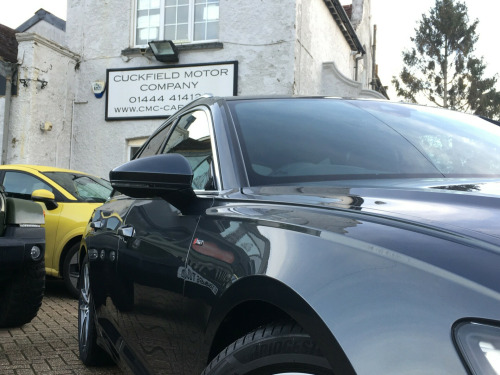 Cuckfield Motor Company are delighted to offer for sale this well presented 2 Owner, Audi A6 S-Line 40 TFSi. Finished in Metallic Grey with Black 1/2 Leather, this car has been well maintained with Audi Services recorded at 30410, 38483, 46542,53980 and most recently Gearbox Oil. Fuel Filter & Brake Fluid at 55228 miles. Specification includes CARPLAY---Sat Nav---Bluetooth Phone & Audio---Privacy Glass---Heated Front Seats---Power Tailgate---Front & Rear Parking Sensors---19'' Alloy Wheels---Electric Memory Drivers Seat---Paddle Shift Gear Selection---Rear View Camera---Heated Folding Door Mirrors---DAB Radio and moreEvery car we offer comes with a comprehensive provenance check certificate, Minimum 6 month warranty and new MOT and service where applicable. All part exchanges welcome.We offer extremely competitive finance packages to help you fund your new car.Cuckfield Motor Company Ltd is a family run business FCA approved dealer established for over 20 years, With 30 years experience in the motor trade.We are located in the village of Cuckfield just off the A23, 15 minutes from Gatwick airport and only 5 minutes from Haywards Heath train station.Please contact us via phone/email to view this car today. email us on: salescmc-cars.co.uk01444 414129, '' alloy wheels, 2 owners, 2x usb, air conditioning, bluetooth phone & audio, carplay, cruise control, dab radio, drivers memory seat, front & rear parking sensors, heated seats, isofix, keyless start, paddle shift, power tailgate, reversing camera, satellite navigation, ulez compliant