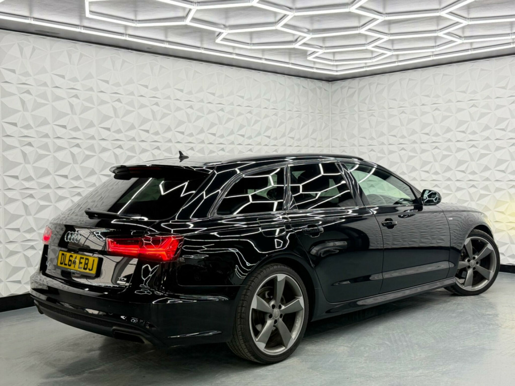 Boasting an MOT valid until February 2027 and a full service history, this 2015 Audi A6 Avant TDI Black Edition presents a compelling proposition. This Euro 6 compliant 2.0 litre diesel model comes with a clear vehicle history check and benefits from a 3 month warranty for your peace of mind. Inside, you will find sophisticated Aluminium Beaufort Black inlays, ambient lighting to set the mood, and a heated, multi-function leather sports steering wheel complete with shift paddles. The Black Edition trim also includes advanced Audi Matrix LED headlights for superior visibility.This Audi A6 Avant is designed to impress, offering a remarkable 61 mpg fuel economy, demonstrating its efficiency compared to similar vehicles. Its acceleration from 0 to 62 mph in just 8.5 seconds shows its responsive performance. Furthermore, the generous boot space ensures practicality for all your needs, making this A6 Avant a well rounded choice for those seeking a blend of style, performance, and utility.. AMI - Audi Music Interface, 12V Power Socket, 12V Power Socket - Rear Centre Console, 20in Alloy Wheels - 5-Arm Rotor Design Titanium Look, 6.5in Display Screen, ABS - Anti-Lock Braking System, AUX-IN Socket, Acoustic Windscreen, Airbags - Curtain, Airbags - Driver, Airbags - Front Passenger, Airbags - Front Side System, All-LED Headlights with High-Beam Assist, Amplifier - 12-Channel, Amplifier - 180 Watt, Anti Theft Locking Wheel Bolts, Anti-Theft Alarm, Audi Drive Select, Audi Hill Hold Assist, Audi Parking System Plus - Front, Audi Parking System Plus - Rear, Audio Output - 600 Watts, AudioPilot for Noise Compensating Volume Adjustment, Auto-Dimming Rear-View Mirror, Automatic Wipers with Rain Sensor, BOSE Surround Sound System, Black Styling Package, Body Coloured Door Mirrors, Climate Control - Electronic Deluxe 4-Zone, Cloth Headlining in Black, Cruise Control, DAB Digital Radio, Door Mirrors - Electrically Adjustable and Heated, Door Sill Trims with S Line Logo, Double Cargo Floor, Drivers Information System - DIS, Dynamic Route Guidance, ESP - Electronic Stability Programme, Electric Windows - Front and Rear, Electrically Adjustable 4-Way Lumbar Support, Electromechanical Parking Brake, Electromechanical Power Steering, First Aid Kit, Front Centre Armrest - Adjustable, Front Passenger Airbag Deactivation Switch, Front and Rear Floor Mats, Gear Knob - Perforated Leather Black, Head Restraints - Front Adjustable, Headlight Washers, Headlights - Automatic Adjustment, Headlights - High-Beam Assist, Headlights - Light Sensor, ISOFIX Child Seat Mounting for Front Passenger, ISOFIX Child Seat Preparation for Rear Seats with Top Tether, Inlays - Piano Finish - Black, Keyless Go, LED Daytime Running Lights, LED Rear Lights, Luggage Compartment - Dirt Resistant Tray, Luggage Compartment - Hooks, Luggage Compartment - Lashing Points and Side Restraining Straps, Luggage Compartment - Rail Fixing System, Luggage Compartment System, MMI Navigation - SD Card Based, MMI Radio Plus, Manual Height Adjustment for Front Seats, Mobile Telephone Preparation - Bluetooth Interface, Non-Smoking Package, Platinum Grey Front Spoiler Lip and Diffuser Insert, Pollen Filter, Power Operated Tailgate, Privacy Glass, Radiator Grille - Matt Black, Radiator Grille and Frame and Struts - High-Gloss Black, Remote Central Locking, Roof Rails - Matt Black, S Line Badges on the Front Wings, SDHC Card Reader x2, Seats - Sports - S Line, Side Ventilation Grille - S Line, Space Saver Spare Wheel, Speakers x14, Split-Folding Rear Seats, Spoiler - Body Coloured, Sport Suspension, Steering Wheel - 3-Spoke Leather - Multi-function - Sports - Shift Paddles, Steering Wheel - 3-Spoke Sports, Steering Wheel - Gear-Shift Paddles, Steering Wheel - Height and Reach Adjustable, Steering Wheel - Multi-function, Subwoofer, Surround Sound 5.1 Reproduction, Tailgate - Aluminium Effect Trim, Towbar Preparation, Tyre Pressure Monitoring System, Voice Control, Warning Triangle, Technology Package - Advanced, Technology Package, Entertainment Package, Audi Matrix LED Headlights, Pre-Sense Basic, 20in Alloy Wheels - 5-Twin-Spoke Design, 20in Alloy Wheels - 5-Twin-Spoke Design in Matt Titanium Look - Gloss Turned Finish, S Line Suspension, Ambient Lighting, Convenience Package, Inlays - Aluminium - Beaufort Black, Lighting Package, Steering Wheel - 3-Spoke Leather-Multi-Function-Heated-Sports-Shift Paddles, Power Door Closure. Full service history
