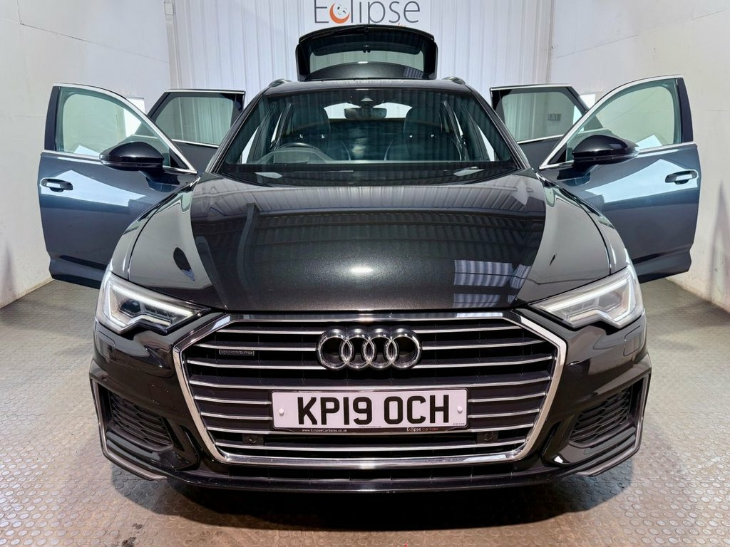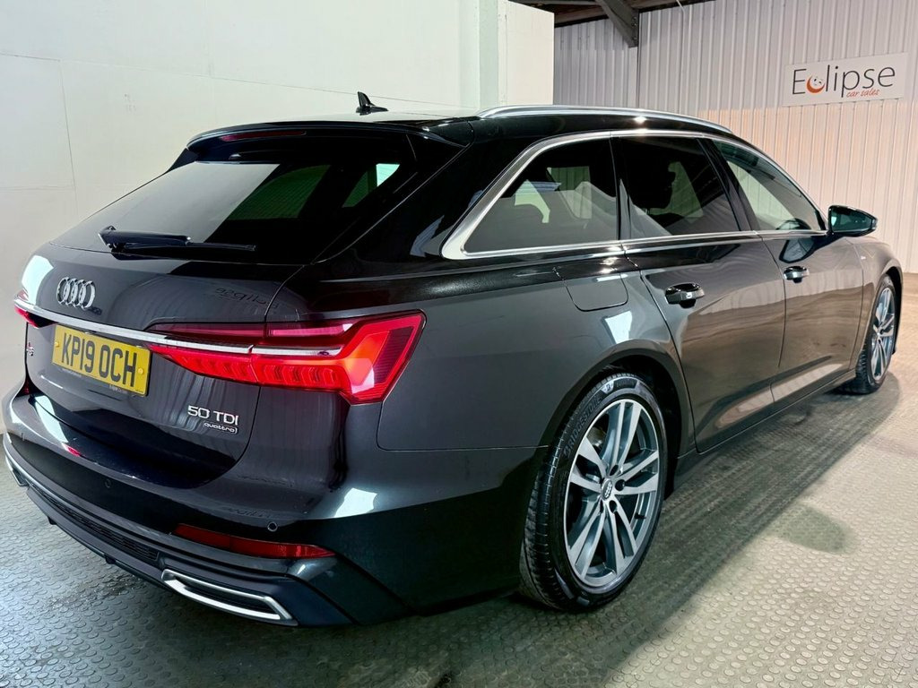 Audi A6 Avant 3.0 TDI V6 50 S line Quattro Estate first registered in March 2019 (19 plate) Finished in Brilliant Black with a grey leather interior and 19 inch alloy wheels. Spec includes Heated front memory seats | Cruise control with speed limiter | Heads up display | heated and folding wingmirrors | Park assist | Deluxe dual zone climate control | 2 keys | reversing camera with front and rear sensors and more. New MOT provided upon sale. Serviced at 5926 miles | 20399 miles | 28347 miles and 40094 miles. 19in Alloy Wheels - 5 Twin Spoke Design , 19in Alloy Wheels - 5-Arm Dynamic Design, 4-Way Electric Lumbar Support, ABS - Anti-Lock Braking System, Airbags - Driver, Airbags - Front Passenger, Aluminium Roof Rails, AMI - Audi Music Interface, Anti Theft Locking Wheel Bolts and Wheel, Anti-Theft Alarm with Tow-Away Protectio, Audi Connect (3 Year Subscription From N, Audi Connect Safety and Service - e-call, Audi Drive Select, Audi Pre-Sense Front, Audi Smartphone Interface, Audi Sound System, Auto Dimming and Frameless Rear View Mir, Bluetooth Interface, Body Coloured Door Mirrors, Brilliant Black, Cloth Headlining in Black, Colour Drivers Information System with 7, Cruise Control System with
