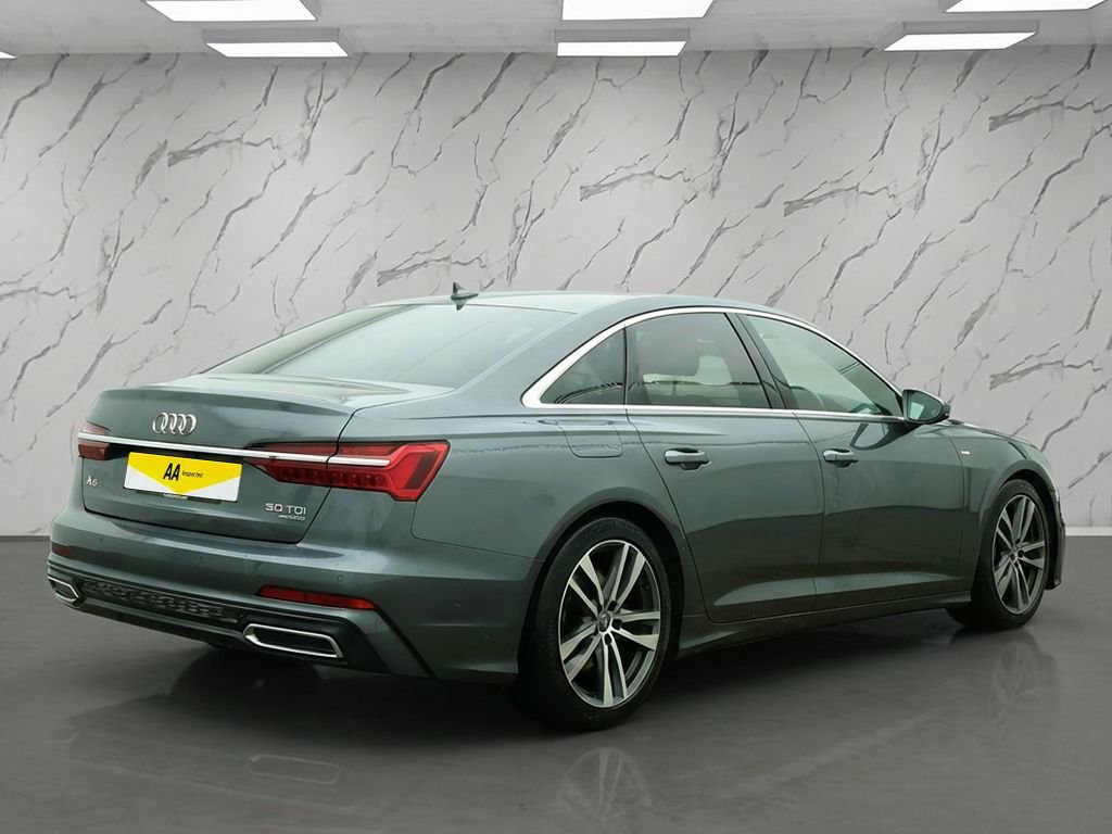 This 2018 Audi A6 Saloon TDI V6 S line presents a compelling proposition with its remarkably low mileage of just 60,668 miles for its age, complemented by a clear vehicle history check. As a Euro 6 compliant model, it features a powerful 3.0 litre diesel engine paired with Audi's renowned four wheel drive system, ensuring confident performance in all conditions. The S line trim enhances its sporty appeal, while the interior boasts the Audi Smartphone Interface, allowing seamless integration of your Android Auto or Apple CarPlay devices. Illuminating your journey are the advanced Matrix LED headlights with distinctive signature daytime running lights, and parking is made effortless with the Parking System Plus, offering sensors for both the front and rear. Inside, you will appreciate the Deluxe 2-Zone Electronic Climate Control for personalised comfort and the convenience of electrically adjustable front seats with a memory function for the driver's side. This Audi A6 Saloon stands out from similar vehicles thanks to several key highlights. Its impressive acceleration, achieving 0-60mph in a swift 5.4 seconds, demonstrates its dynamic capability. Furthermore, the generous boot space offers ample practicality for luggage or shopping, making it a versatile choice for everyday use and longer trips. The vehicle also benefits from a low insurance group, which can contribute to lower running costs. These factors combine to offer a refined and capable driving experience, w Daytona Grey, Extended LED Interior Lighting Package -, Privacy Glass, Valcona Leather - Sports Seats with S Em, Technology Package, 19in Alloy Wheels - 5 Twin Spoke Design , 4-Way Electric Lumbar Support, ABS - Anti-Lock Braking System, AMI - Audi Music Interface, Airbags - Driver, Airbags - Front Passenger, Anti Theft Locking Wheel Bolts and Wheel, Anti-Theft Alarm with Tow-Away Protectio, Audi Connect (3 Year Subscription From N, Audi Connect Safety and Service - e-call, Audi Drive Select, Audi Pre-Sense Front, Audi Smartphone Interface, Audi Sound System, Auto Dimming and Frameless Rear View Mir, Bluetooth Interface, Body Coloured Door Mirrors, Cloth Headlining in Black, Colour Drivers I