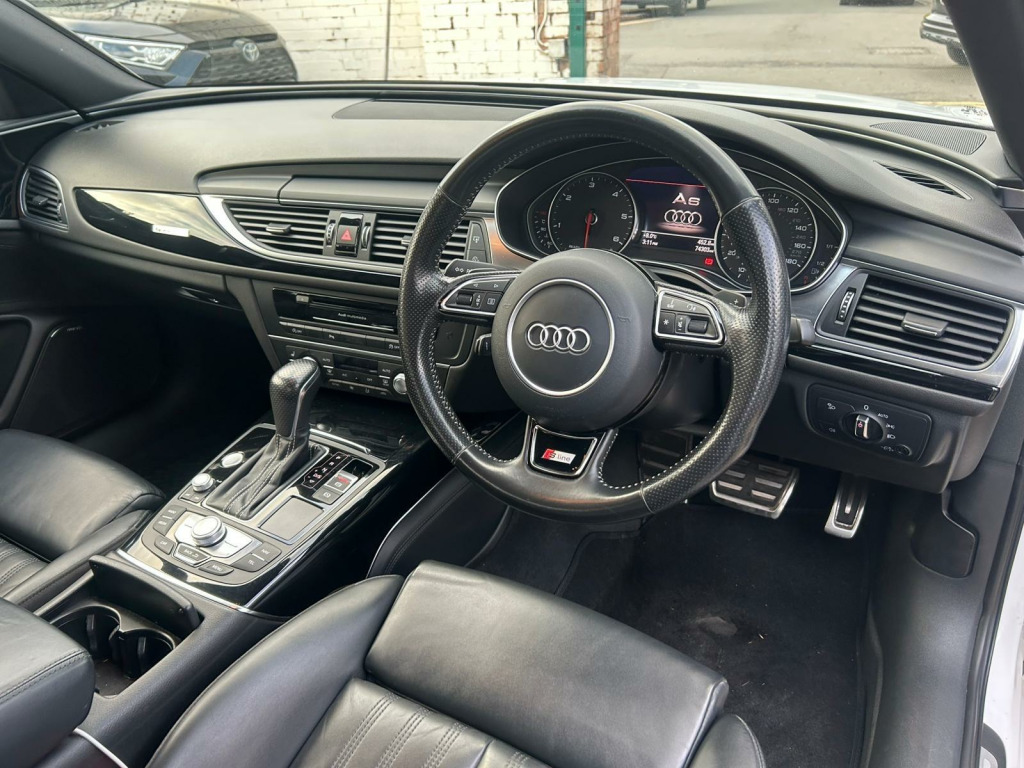 This 2016 Audi A6 Saloon TDI V6 Black Edition boasts exceptionally low mileage for its age, having covered just 76,500 miles. This premium saloon features a powerful 3.0 litre diesel engine paired with Audi's renowned four wheel drive system, ensuring confident handling in all conditions. As a Euro 6 compliant vehicle, it meets modern emissions standards. Inside, you'll find a host of desirable features including Mobile Telephone Preparation with Bluetooth, BOSE Surround Sound for an immersive audio experience, and the Audi Parking System Plus for both front and rear, making manoeuvring effortless. Automatic headlights, activated by a light sensor, add to the convenience.The Black Edition trim enhances the already sophisticated styling of the A6 Saloon. This particular model offers a compelling combination of performance and practicality, with a 0-60mph acceleration time of just 5.3 seconds, demonstrating its brisk performance. The large boot space provides ample room for luggage or shopping, making it a versatile choice for families or those who require extra capacity. Furthermore, its placement in a low insurance group indicates that running costs are kept competitive, offering excellent value for a vehicle of this calibre and specification. On v car cat s. v power socket, 12v power socket - rear centre console, 20in alloy wheels - 5-arm rotor design titanium look, 6.5in display screen, abs - anti-lock braking system, ami - audi music interface, aux-in socket, acoustic windscreen, airbags - curtain, airbags - driver, airbags - front passenger, airbags - front side system, all-led headlights with high-beam assist, aluminium-effect bootlid trim, amplifier - 12-channel, amplifier - 180 watt, anti theft locking wheel bolts, anti-theft alarm, audi drive select, audi hill hold assist, audi parking system plus - front, audi parking system plus - rear, audio output - 600 watts, audiopilot for noise compensating volume adjustment, auto-dimming rear-view mirror, automatic wipers with rain sensor, bose surround sound system, black styling package, body coloured door mirrors, climate control - electronic deluxe 4-zone, cloth headlining in black, cruise control, dab digital radio, door mirrors - electrically adjustable and heated, door sill trims with s line logo, drivers information system - dis, dynamic route guidance, esp - electronic stability programme, electric windows - front and rear, electrically adjustable 4-way lumbar support, electromechanical parking brake, electromechanical power steering, first aid kit, front centre armrest - adjustable, front passenger airbag deactivation switch, front and rear floor mats, gear knob - perforated leather black, head restraints - front adjustable, headlight washers, headlights - automatic adjustment, headlights - high-beam assist, headlights - light sensor, isofix child seat mounting for front passenger, isofix child seat preparation for rear seats with top tether, inlays - piano finish - black, keyless go, led daytime running lights, led rear lights, mmi navigation - sd card based, mmi radio plus, manual height adjustment for front seats, mobile telephone preparation - bluetooth interface, non-smoking package, platinum grey front spoiler lip and diffuser insert, pollen filter, privacy glass, radiator grille - matt black, radiator grille and frame and struts - high-gloss black, remote central locking, s line badges on the front wings, sdhc card reader x2, seats - sports - s line, side ventilation grille - s line, space saver spare wheel, speakers x14, split-folding rear seats, sport suspension, steering wheel - 3-spoke leather - multi-function - sports - shift paddles, steering wheel - 3-spoke sports, steering wheel - gear-shift paddles, steering wheel - height and reach adjustable, steering wheel - multi-function, subwoofer, surround sound 5.1 reproduction, towbar preparation, tyre pressure monitoring system, voice control, warning triangle