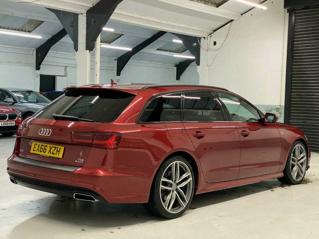 Boasting a clear vehicle history and only two previous owners, this 2016 Audi A6 Avant TDI V6 Black Edition presents a compelling proposition. Powered by a robust 3.0L Diesel engine and featuring Four Wheel Drive, this Euro 6 compliant model offers a refined driving experience. Its MOT is valid until July 2026, and it comes with a 3 month warranty for your peace of mind. The vehicle has a partial service history, with the last service recorded at 108,778 miles on 26th September 2025. Notable features include the Audi Parking System Plus for both front and rear, a Bluetooth interface for mobile telephone preparation, automatic headlights with a light sensor, and a deluxe 4 zone climate control system.Experience impressive performance with this Audi A6 Avant, capable of accelerating from 0 to 60mph in just 5.5 seconds, a figure that sets it apart from many similar vehicles. The spacious boot offers ample room for luggage or shopping, making it a practical choice for families or those who require extra carrying capacity. The combination of its powerful engine, advanced parking assistance, and comfortable climate control ensures a superior driving experience, highlighting its advantage over other models in its class., w bar, quattro sports differential, advanced key - with hands free tailgate sensor and power operated tailgate, pearl nappa leather-alcantara - s line sports seats - black, 12v power socket, 12v power socket - rear centre console, 20in alloy wheels - 5-arm rotor design titanium look, 6.5in display screen, abs - anti-lock braking system, ami - audi music interface, aux-in socket, acoustic windscreen, airbags - curtain, airbags - driver, airbags - front passenger, airbags - front side system, all weather led headlights, all-led headlights with high-beam assist, aluminium-effect bootlid trim, amplifier - 12-channel, amplifier - 180 watt, anti theft locking wheel bolts, anti-theft alarm, audi drive select, audi hill hold assist, audi parking system plus - front, audi parking system plus - rear, audio output - 600 watts, audiopilot for noise compensating volume adjustment, auto-dimming rear-view mirror, automatic wipers with rain sensor, bose surround sound system, black styling package, body coloured door mirrors, bumpers - front and rear - s line design, climate control - electronic deluxe 4-zone, cloth headlining in black, cruise control, cupholders, dab digital radio, door mirrors - electrically adjustable and heated, door sill trims with s line logo, double cargo floor, drivers information system - dis, dynamic rear indicators, dynamic route guidance, esp - electronic stability programme, electric windows - front and rear, electrically adjustable 4-way lumbar support, electromechanical parking brake, electromechanical power steering, emergency braking function, front centre armrest - adjustable, front passenger airbag deactivation switch, front and rear floor mats, gear knob - perforated leather black, head restraints - front adjustable, headlight washers, headlights - automatic adjustment, headlights - high-beam assist, headlights - light sensor, isofix child seat mounting for front passenger, isofix child seat preparation for rear seats with top tether, inlays - piano finish - black, keyless go, led daytime running lights, led rear lights, luggage compartment - dirt resistant tray, luggage compartment - hooks, luggage compartment - lashing points and side restraining straps, luggage compartment - rail fixing system, luggage compartment system, mmi navigation - sd card based, mmi radio plus, mmi touch, manual height adjustment for front seats, mobile telephone preparation - bluetooth interface, non-smoking package, platinum grey rear bumper diffuser insert, pollen filter, power operated tailgate, privacy glass, radiator grille - matt black, radiator grille and frame and struts - high-gloss black, remote boot release, remote central locking, roof rails - matt black, s line badges on the front wings, s line side skirts, sdhc card reader x2, seats - sports - s line, side ventilation grille - s line, space saver spare wheel, speakers x10, speakers x14, split-folding rear seats, spoiler - body coloured, sport suspension, steering wheel - 3-spoke leather - multi-function - sports - shift paddles, steering wheel - 3-spoke sports, steering wheel - gear-shift paddles, steering wheel - height and reach adjustable, steering wheel - multi-function, subwoofer, surround sound 5.1 reproduction, tailgate - aluminium effect trim, towbar preparation, traction control, tyre pressure monitoring system, voice control, warning triangle