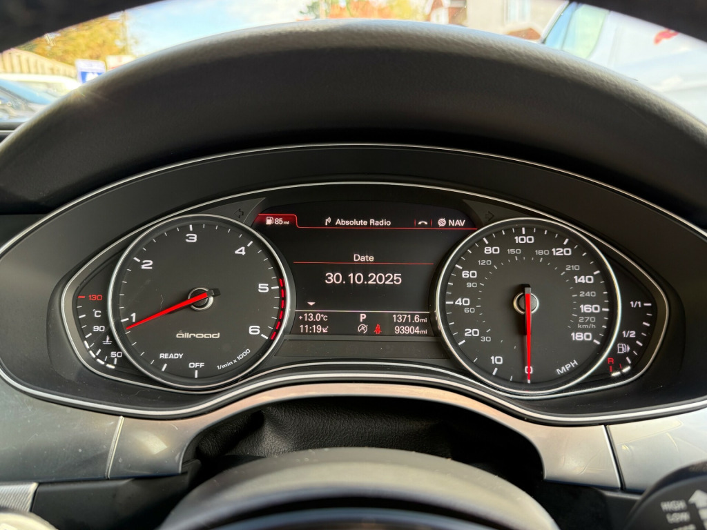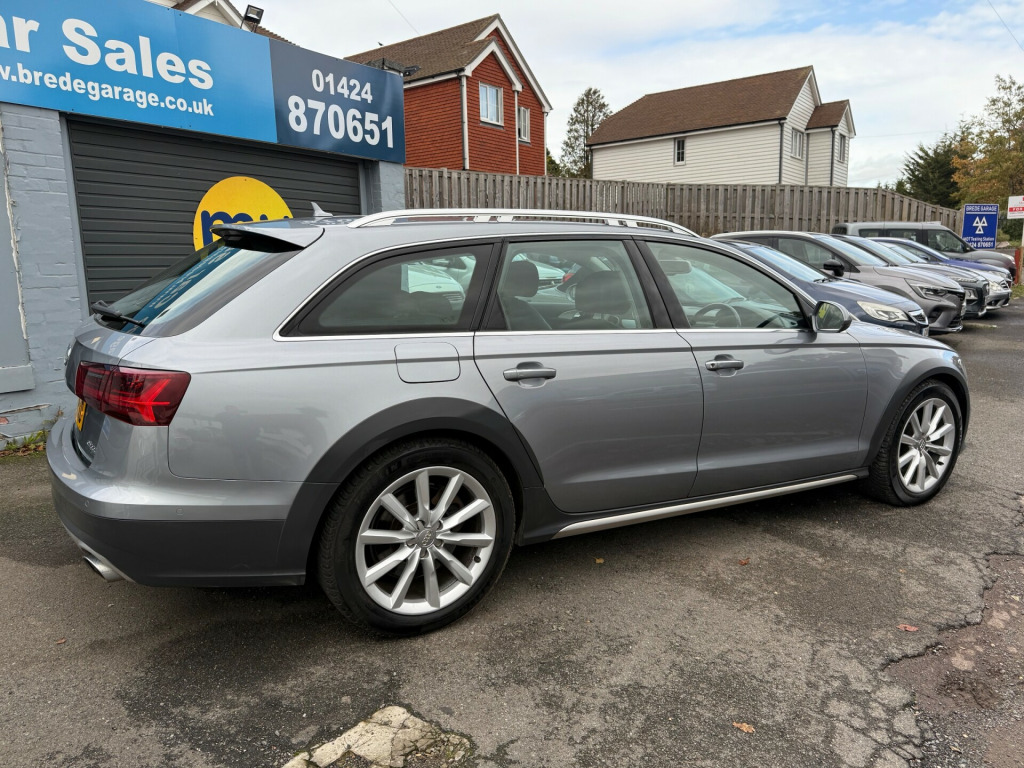 The 2017 Audi A6 Allroad 3.0 TDI V6 S Tronic quattro delivers the ideal blend of luxury, practicality and performance, with just 93,904 miles on the clock. Powered by Audi's 272PS diesel engine and smooth automatic transmission, it provides outstanding torque and a refined driving experience both on and off the road. The quattro all-wheel drive system ensures exceptional grip and confidence in all conditions, while the adaptive air suspension makes every journey comfortable, composed and effortless.Presented in a sleek grey finish, this A6 Allroad combines estate practicality with the style and presence of a premium SUV. The strong body lines and subtle aluminium trim accents give it a sophisticated appearance, while the spacious interior offers excellent comfort for long-distance travel. Designed with families, commuters and adventure seekers in mind, this car offers a great balance between luxury and versatility.Inside, the cabin reflects Audi's renowned attention to detail. Expect top-grade materials, ambient interior lighting and intuitive controls throughout. The 3.0-litre V6 diesel engine offers brisk acceleration and relaxed motorway cruising, achieving an impressive combined 50.4 MPG. With a top speed of 155 mph, it has no shortage of power when needed.This vehicle comes with a full main dealer service history, showing consistent care and maintenance throughout its life. The automatic S Tronic gearbox operates seamlessly, and the quattro system adds stability on wet, uneven or rural roads. With 4 previous owners, it's been responsibly maintained and presents in excellent condition both inside and out.The A6 Allroad's estate body provides generous boot space for luggage, dogs or sporting gear, making it an excellent choice for those needing practicality without sacrificing refinement. Its versatile driving character and high build quality make it a smart choice for drivers seeking long-term comfort, capability and reliability.Finance Options are available, pre-approved finance checks on our website. All our vehicles come with a Service, a 12 month MOT, 6 months Nationwide Warranty (extended warranties available), and FREE 12 months breakdown cover as part of our AA Dealer Promise agreement, ensuring ongoing roadworthiness and safety.Please don't hesitate to contact us by phone on 01424 870651 or email us for more information., in alloy wheels - 5-arm design, aluminium optic package, anti theft locking wheel bolts, body coloured door mirrors, body-coloured roof spoiler, collapsible spare wheel, door mirrors - electrically adjustable and heated, electric windows - front and rear, abs - anti-lock braking system, airbags, anti-theft alarm, audi hill hold assist, esc - electronic stabilisation control, electromechanical parking brake, front passenger airbag deactivation switch, isofix child seat mounting, remote central locking, seat belt monitoring, ami - audi music interface, aux-in socket, audi sound system, bluetooth interface, mmi navigation - sd card based, mmi radio plus and dab, tow bar bracket preparation, adaptive air suspension, audi drive select, audi parking system plus, cruise control, drivers information system - dis, power steering, tyre pressure loss indicator, aluminium door sill trims with allroad logo, auto-dimming rear-view mirror, deluxe 4-zone automatic climate control, electrically adjustable 4-way lumbar support, front centre armrest, front and rear floor mats, heated front seats, inlays - aluminium ellipse, keyless go, luggage compartment system, non-smoking package, power-operated boot lid, split-folding rear seats, steering wheel - 3-spoke leather - multi-function - sports - shift paddles, storage package, tool kit - warning triangle and car jack, bi-xenon headlights, headlight washer system, led rear lights, light and rain sensor, 12 months mot, 6 months nationwide warranty, aa dealer promise 12 months free breakdown cover