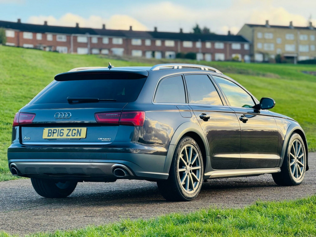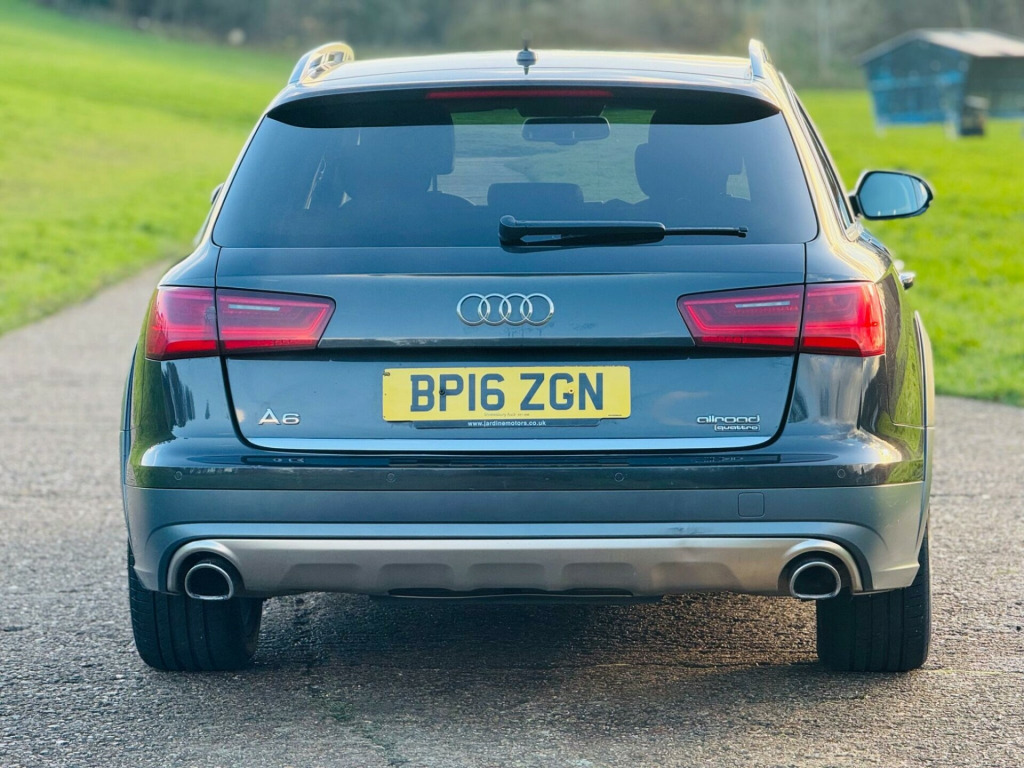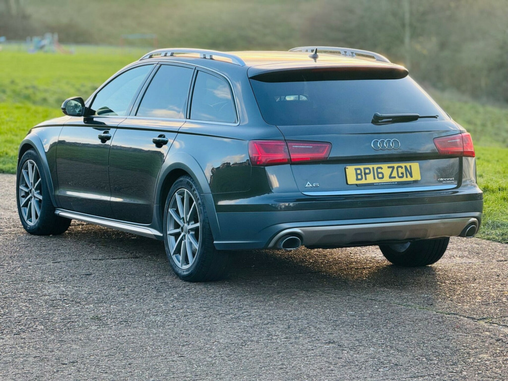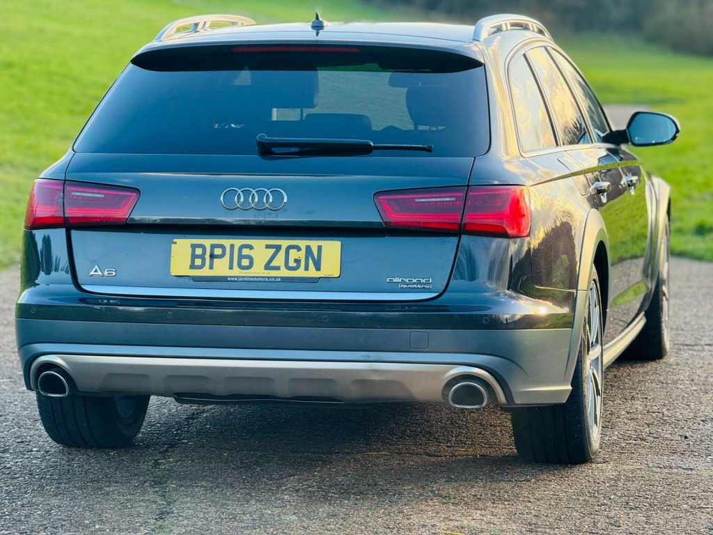 Fantastic car very well looked after and comes with a massive pile of service history , drives fantastic and air suspension works perfectly This 2016 Audi A6 Allroad TDI V6 Sport is a remarkable example, having had only two owners from new. It boasts a powerful 3.0 litre diesel engine paired with a smooth four wheel drive system, ensuring excellent performance and grip in all conditions. As a Euro 6 compliant vehicle, it meets stringent emission standards. This Sport trim model comes equipped with a host of desirable features, including a Bluetooth interface for mobile telephone preparation, and a deluxe four zone electronic climate control system for personalised comfort. Parking is made effortless with Audi Parking System Plus, featuring sensors at both the front and rear. The electrically adjustable front seats include a memory function for the driver's side, adding a touch of convenience.The Audi A6 Allroad TDI V6 Sport offers impressive capabilities, including a substantial towing weight of 2500 kg, making it a versatile choice for various needs. Its acceleration is noteworthy, achieving 0-60mph in just 6.0 seconds, demonstrating its dynamic performance. Furthermore, the generous boot space provides ample room for luggage or equipment, highlighting its practicality. These attributes, combined with its sophisticated features and low owner count, position this Audi A6 Allroad as a superior option compared to similar vehicles on the market. rking pack, alcantara-leather - sport seats - black, quattro sports differential, 12v power socket, 12v power socket - rear x2, 19in alloy wheels - 10-spoke design in matt titanium look - gloss turned, 6.5in display screen, abs - anti-lock braking system, ami - audi music interface, aux-in socket, adaptive air suspension, airbags - curtain, airbags - driver, airbags - front passenger, airbags - front side system, all-led headlights with high-beam assist, aluminium optic package, aluminium roof rails, amplifier - 180 watt, amplifier - 6 channel, anti theft locking wheel bolts, anti-theft alarm, audi drive select, audi hill hold assist, audi parking system plus - front, audi parking system plus - rear, audi sound system, auto-dimming rear-view mirror, automatic wipers with rain sensor, body coloured door mirrors, car jack, climate control - electronic deluxe 4-zone, cloth headlining, collapsible spare wheel, cruise control, cup holder in the rear centre armrest, cupholders, dab digital radio, dis - drivers information system - monochrome, door handles - aluminium look trim, door mirrors - automatic kerb view dipping function when reversing, door mirrors - heated-electrically adjustable-folding with memory function, door mirrors - memory function, door sill trims - with allroad quattro logo, door trim inserts - alcantara, double cargo floor, dynamic led indicators - rear, dynamic route guidance, esp - electronic stability programme, efficiency program in the drivers information system - dis, electric windows - front and rear, electrically adjustable 4-way lumbar support, electrically adjustable front seats with memory function for drivers side, electromechanical parking brake, emergency braking function, floor mats - front and rear in velour, front centre armrest, front passenger airbag deactivation switch, front sports seats, gear-shift display, head restraints - front adjustable, headlight washers, headlights - automatic adjustment, headlights - high-beam assist, headlights - light sensor, hill descent control, isofix child seat mounting for front passenger, isofix child seat preparation for rear seats with top tether, inlays - aluminium delta, keyless go, led daytime running lights, led rear lights, luggage compartment - dirt resistant tray, luggage compartment - hooks, luggage compartment - lashing points and side restraining straps, luggage compartment - net, luggage compartment - rail fixing system, luggage compartment system, mmi navigation - sd card based, mmi radio plus, mmi touch, mobile telephone preparation - bluetooth interface, pollen filter, power operated tailgate, power steering, privacy glass, remote boot release, remote central locking, rest recommendation system, sdhc card reader x2, seat belt reminder, seats - front electric adjustment, seats - front electric height adjustment, speakers x10 including subwoofer, split-folding rear seats, spoiler - body coloured, steering wheel - 3-spoke leather - multi-function - sports - shift paddles, steering wheel - gear-shift paddles, steering wheel - height and reach adjustable, steering wheel - multi-function, storage package, tp memo - automatically saves traffic news, tool kit, towbar preparation, traction control, tyre pressure monitoring system, usb connection, voice control - navigation, window surrounds - aluminium