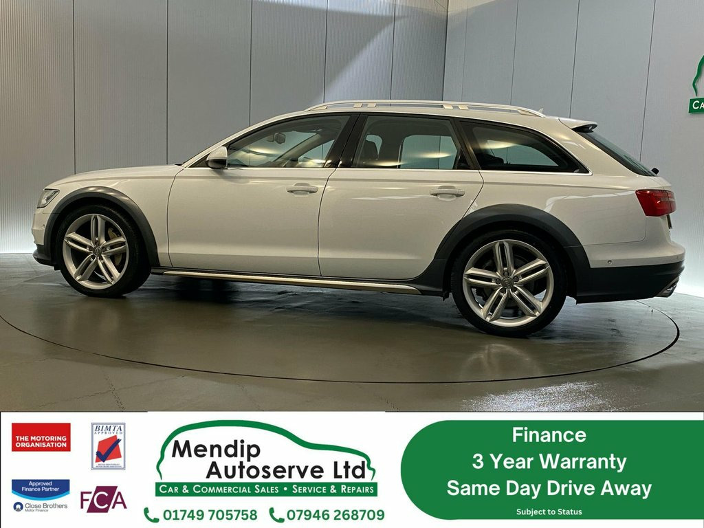 **Experience the Ultimate in Luxury and Performance with the Audi A6 Allroad 3.0 TFSI V6 Estate!** Dont miss out on the opportunity to own this stunning Audi A6 Allroad, a perfect blend of sophistication and power. With a robust 3.0-litre V6 engine delivering 306 bhp, this estate car accelerates from 0 to 60 mph in just 5.9 seconds, reaching a top speed of 155 mph. Coupled with an automatic transmission and quattro four-wheel drive, it ensures a smooth and exhilarating driving experience. With only 50,491 miles on the clock, full service history and a long MOT, this vehicle is ready for your next adventure. What sets this Audi apart is the impressive ?10,000 worth of optional extras that enhance both performance and comfort. **Dynamic Steering** takes your driving experience to the next level. This feature adjusts the steering response based on your speed, providing a more agile feel at lower speeds while maintaining stability at higher speeds. Whether navigating tight city streets or cruising on the motorway, youll enjoy a responsive and engaging drive. Dressed in a striking **Glacier White**, this Audi A6 Allroad not only looks stunning but also reflects a sense of elegance and sophistication. The eye-catching colour is sure to turn heads and make a statement wherever you go. Step inside to discover the luxurious **Valcona Leather Sports Seats** in black, designed for both comfort and style. These seats provide exceptional support during long drives, ensuring you arrive at 12V Power Socket, 12V Power Socket - Luggage Compartment, 12V Power Socket - Rear x2, 18in Alloy Wheels - 5-Arm Design, 20in Alloy Wheels - 5-Parallel Spoke Des, 6.5in Display Screen, ABS - Anti-Lock Braking System, Acoustic and Visual Parking System - Rea, Adaptive Air Suspension, Advanced Key, Airbags - Driver, Airbags - Front Passenger, Airbags - Front Side System, Airbags - Head System, Aluminium Optic Package, Aluminium Roof Rails, Amplifier - 180 Watt, Amplifier - 6 Channel, Anti Theft Locking Wheel Bolts, Anti-Theft Alarm, Audi Drive Select, Audi Hill Hold Assist, Audi Parking System Advanced with Rear V, Audi Parking System Plus, Audi Sound System, Auto-Dimming Rear-View Mirror, Auto