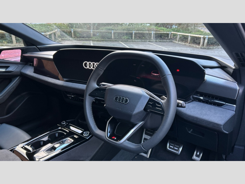 Audi A6 270kW Performance 100kWh Launch Edition 5dr Auto Audi application store, Audi assistant, Audi connect emergency call and service, Audi connect remote and controls, Audi drive select (Balanced/Individual, effeciency, comfort and dynamic), Audi smartphone interface, Audi virtual cockpit plus with 11.9" OLED colour display, Augmented reality head up display, Driver attention alert system, Exit warning function, Fatigue monitor, Front cross traffic assist, Lane departure warning including emergency assist, Luggage compartment lid with Electric opening / closing, MMI 10.9" front passenger touch display, MMI navigation plus with high resolution 14.5" OLED touchscreen colour display, Proactive occupant protection, Progressive steering, Rear cross traffic assist, Rear turn assist, Side assist, Swerve assist and front turn assist, USB interfaces with higher charging capacity - 2 X 100 W in the rear and 2 X 60 W in the 1st seat row, 11 kW AC onboard charger, 2 charging ports - Charging port via charging (mode 2 and mode 3) + Charging port via DC charging (mode 4) driver side, Compact e-tron charging system, Dynamic suspension, Household plug type G for the e-tron charging system, Industrial connector CEE 32A, 230V, long and straight for the e-tron charging system, Mode 3 charging cable for public charging, 22 KW (AC), On-board charger up to 270 KW (DC), Wall mounted bracket for compact e-tron charging system, Bang and Olufsen premium sound system with 3D sound and integrated headrest speakers, DAB Digital radio, Smartphone compartment with wireless charging, Acoustic glazing for front door windows, Auto dimming rear view mirror, Black diffuser, Black door handle inserts, Black exterior door mirrors, Black single frame ornaments and black air intakes, Digital light signature with eight combination of daytime running light, Door sill trims with aluminium inlays in front with illuminated S logo, Electric charging cover, Electrically operated frunk, Headlight cleaning system, High beam assist, Illuminated audi rings in rear, LED rear lights pro, LED third brake light, Matrix LED headlights, Panoramic glass roof with switchable transparency, Privacy glass, Projection light in exterior mirrors, Rear side wing doors, Rear wiper, Roof spoiler, Towbar preparation, Trim on roof edge spoiler in black, Virtual exterior mirrors, Window trim strips and attachments, dark with audi rings, front and rear in anthracite grey, Windscreen with heat insulating and acoustic glazing, 3 spoke flat bottomed multi-function leather sport steering wheel with gear shift paddles, 3-zone deluxe automatic air conditioning, 4 way electrically adjustable lumbar support for driver and front passenger, 40/20/40 split folding 3 rear seat bench in 3 parts with rear centre armrest, Black carpets, Black cloth headlining, Black front and rear floor mats, Centre armrest, centre console and door armrests in dinamica microfibre black, Convenience auxiliary air conditioning, Dinamica/leather upholstery with front sports seats S embossed logo, Electrically adjustable front seats, Front and rear outer heated seats, Front centre armrest adjustable angle with four settings, Front head restraints, Heat pump, Heated steering wheel, Manual steering wheel adjustment, Memory function for driver seat, Rear headrests, Single front passenger seat, Stainless steel pedals and foot rest, Steering wheel with trim in chrome look, S emblem, steering wheel grips in perforated leather and contrast stitching, Trim elements in the instrument panel and doors in black with contrast stitch in steel grey, Ambient lighting pack plus with dynamic interaction light - A6 E-TRON, Assist package drive and park plus - A6 E-TRON, Storage and luggage compartment pack - A6 E-TRON, 3 point seatbelts on all seats, Acoustic vehicle alerting system, Airbags - Front side, front and rear including head, Convenience key with safelock, E-tron sport sound, First aid kit with warning triangle and high visibility vests, Front emergency brake assist, Front passenger airbag deactivation, Hill hold assist, ISOFIX child seat mounting for front passenger seat and ISOFIX child seat mounting with Top Tether for outer rear seats, Manual child proof rear door locks, Occupant detection in rear seat area, Rear seat alert, Red brake callipers, Side airbags in front and rear with head airbag system and front interaction airbag, Standard steel disc brakes front and rear, Tyre pressure loss indicator, Anti theft alarm, Anti theft wheel bolts, Digital key, Accent surfaces and control buttons in gloss black, Black dashboard, Interior accents aluminium look, Matt brushed aluminium inlays with linear embossing anthracite, Upper and lower interior elements in dinamica microfibre, 21" 5 arm dynamic black metallic sport alloy wheels, Tyre repair kit