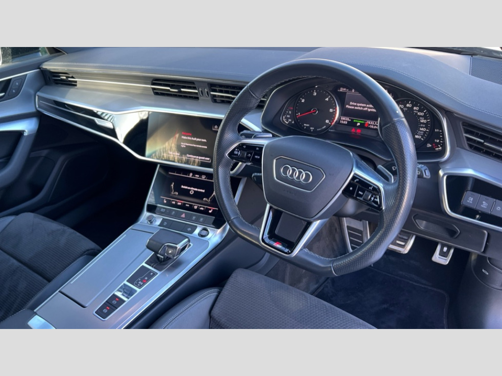 Audi A6 40 TDI Black Edition 5dr S Tronic 7" high resolution colour driver information display system, Audi connect safety and service (e-call), Audi drive select, Audi parking system plus - acoustic and visual park assist system for front and rear, Audi smartphone interface, Automatic start/stop system with coasting functionality, Bluetooth interface, Lane departure warning system, MMI navigation with MMI touch + twin touch screens 8.8" and 8.6" with haptic and acoustic feedback, Power operated tailgate, Progressive steering, Rear view camera, Service interval indicator, Voice control system, 12V Mild hybrid, 24 litre AdBlue tank, Diesel particulate filter, Sports suspension, Audi music interface, Audi sound system, Auxiliary input socket, DAB Digital radio, USB connection, Black roof rails, Electric front/rear windows, Frameless auto dimming interior rear view mirror, Gloss black exterior mirror housings, Gloss black highlights on the exterior area of the Audi Single frame, Gloss black highlights on the front and rear bumpers, Gloss black highlights on the radiator grille, Gloss black highlights on the side windows trim strips, Headlight washers, Heat insulating darkened glass in side and rear windows, Heat insulating glass in windshield, LED rear lights, LED signature front daytime running light, Matrix LED headlights with dynamic rear indicators, Matt black rear diffuser with diffuser strip and tailpipes in chrome, Matt black side air intake grille with inlay in matt aluminium, Privacy glass, Rain and light sensors, Rear roof spoiler, Signature rear LED light design, 2 zone deluxe electronic climate control, 4 way electric lumbar support for driver and front passenger, 40/20/40 split folding 3 rear seat bench in 3 parts with rear centre armrest, Black cloth headlining, Electrically adjustable front seats with driver memory, Front centre armrest, Front head restraints, Front/rear floor mats, Heated front seats, Height/reach adjust steering wheel, Illuminated door sill trims with S logo, Illuminated sun visors with vanity mirrors, ISOFIX child seat mounting and Top Tether with front passenger airbag deactivation, Leather gear knob, Luggage compartment system, Rear headrests, Stainless steel pedals and foot rest, Tool kit and car jack, LED Interior Ambient Lighting Pack - A6, Non smoking pack - A6, 3 point seatbelts on all seats, Airbags - Front side, front and rear including head, Audi pre-sense front, Black seatbelts, EBD - Electronic brakeforce distribution, Electromechanical parking brake, Electronic Stability Control (ESC) including ABS, ASR and EDL, Extended pedestrian protection measures, Seatbelt monitoring, Tyre pressure warning light, Warning triangle and first aid kit, Anti theft alarm with tow away protection, Anti-theft wheel bolts and wheel loosening detection, Immobiliser, Keyless Go, Remote central locking, Matt brushed aluminium dark inlays, 20" 5 V spoke star design Audi sport cast aluminium alloy wheels in matt titanium look