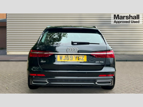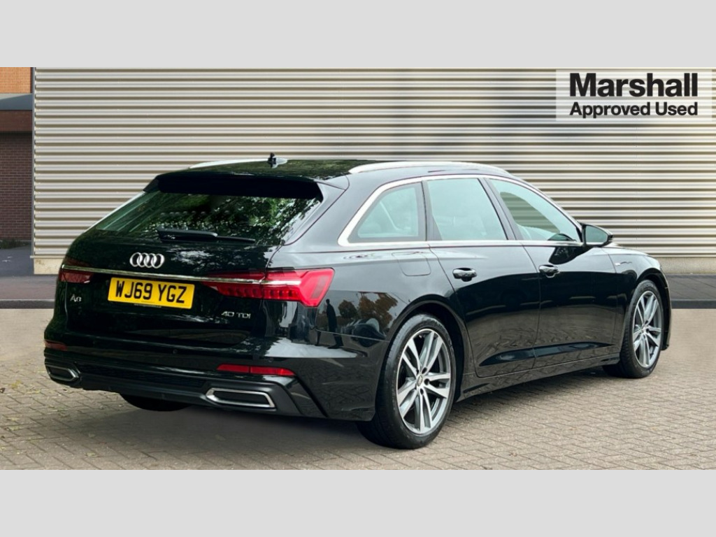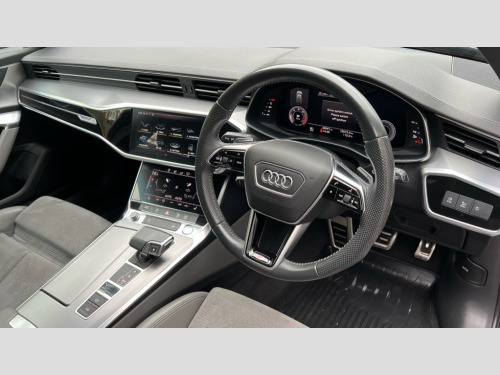 Audi A6 40 TDI S Line 5dr S Tronic 7" high resolution colour driver information display system, Amazon alexa Integration, Audi connect safety and service (e-call), Audi drive select, Audi parking system plus with front and rear sensors, Audi smartphone interface, Automatic start/stop system with coasting functionality, Bluetooth interface, Lane departure warning system, MMI navigation with MMI touch + twin touch screens 8.8" and 8.6" with haptic and acoustic feedback, Power operated tailgate, Progressive steering, Service interval indicator, Voice control system, Diesel particulate filter, Sports suspension, Audi music interface, Auxiliary input socket, DAB Digital radio, USB connection, Aluminium roof rails, Body coloured door mirrors, Electric front/rear windows, Electrically adjustable, heated and folding door mirrors with driver memory function and integrated LED indicators, Frameless auto dimming interior rear view mirror, Headlight washers, Heat insulating darkened glass in side and rear windows, LED signature front daytime running light, Matrix LED headlights with dynamic rear indicators, Privacy glass, Radiator grille in titanium black matt, single frame in chrome and horizontal struts in matt aluminium silver, Rain and light sensors, S line air inlet design with inlay in matt aluminium, S Line badge on front fender, S Line front and rear bumpers, S line rear diffuser and grille in matt black with matt aluminium tailpipes, S Line roof edge spoiler, S Line side skirts, Signature rear LED light design, Windscreen with acoustic glazing, 2 zone deluxe electronic climate control, 4 way electric lumbar support for driver and front passenger, 40/20/40 split folding 3 rear seat bench in 3 parts with rear centre armrest, Black cloth headlining, Electrically adjustable front seats with driver memory, Front centre armrest, Front head restraints, Heated front seats, Height/reach adjust steering wheel, Illuminated door sill trims with S logo, Illuminated sun visors with vanity mirrors, ISOFIX child seat mounting and Top Tether with front passenger airbag deactivation, Leather gear knob, Leatherette on upper instrument panel and door shoulders, Luggage compartment system, Rear headrests, S line front and rear floor mats with contrast stitching, Stainless steel pedals and foot rest, Tool kit and car jack, LED Interior Ambient Lighting Pack - A6, Non smoking pack - A6, 3 point seatbelts on all seats, Airbags - Front side, front and rear including head, Audi pre-sense front, EBD - Electronic brakeforce distribution, Electromechanical parking brake, Electronic Stability Control (ESC) including ABS, ASR and EDL, Extended pedestrian protection measures, Seatbelt monitoring, Tyre pressure warning light, Warning triangle and first aid kit, Anti theft alarm with tow away protection, Anti-theft wheel bolts and wheel loosening detection, Immobiliser, Keyless Go, Remote central locking