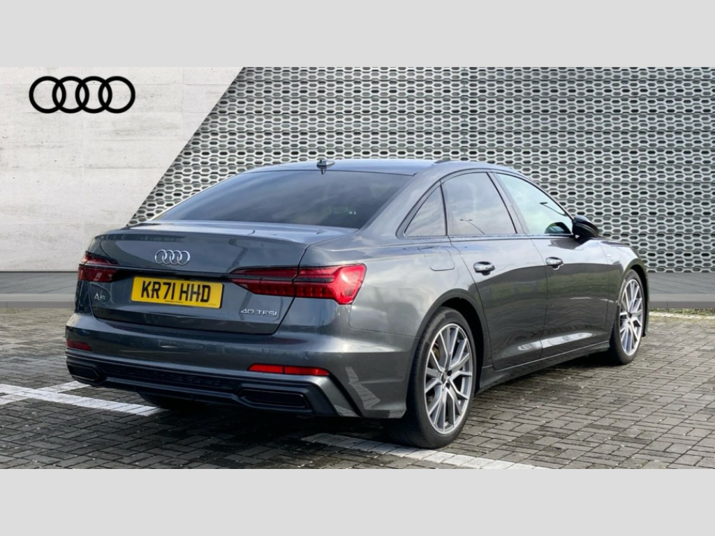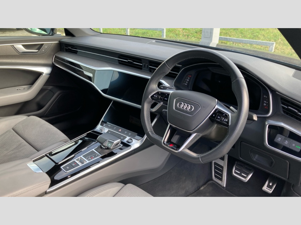 Audi A6 40 TFSI Black Edition 4dr S Tronic 7" high resolution colour driver information display system, Audi connect safety and service (e-call), Audi drive select, Audi parking system plus - acoustic and visual park assist system for front and rear, Audi smartphone interface, Automatic start/stop system with coasting functionality, Bluetooth interface, Electric boot lid release, Lane departure warning system, MMI navigation with MMI touch + twin touch screens 8.8" and 8.6" with haptic and acoustic feedback, Progressive steering, Rear view camera, Service interval indicator, Voice control system, Sports suspension, Audi music interface, Audi sound system, Auxiliary input socket, DAB Digital radio, USB connection, Electric front/rear windows, Frameless auto dimming interior rear view mirror, Gloss black exterior mirror housings, Gloss black highlights on the exterior area of the Audi Single frame, Gloss black highlights on the front and rear bumpers, Gloss black highlights on the radiator grille, Gloss black highlights on the side windows trim strips, Headlight washers, Heat insulating darkened glass in side and rear windows, Heat insulating glass in windshield, LED rear lights, LED signature front daytime running light, Matrix LED headlights with dynamic rear indicators, Matt black rear diffuser with diffuser strip and tailpipes in chrome, Matt black side air intake grille with inlay in matt aluminium, Privacy glass, Rain and light sensors, Signature rear LED light design, 2 zone deluxe electronic climate control, 4 way electric lumbar support for driver and front passenger, 40/20/40 split folding 3 rear seat bench in 3 parts with rear centre armrest, Black cloth headlining, Electrically adjustable front seats with driver memory, Front centre armrest, Front head restraints, Front/rear floor mats, Heated front seats, Height/reach adjust steering wheel, Illuminated door sill trims with S logo, Illuminated sun visors with vanity mirrors, ISOFIX child seat mounting and Top Tether with front passenger airbag deactivation, Leather gear knob, Rear headrests, Stainless steel pedals and foot rest, Tool kit and car jack, LED Interior Ambient Lighting Pack - A6, Non smoking pack - A6, 3 point seatbelts on all seats, Airbags - Front side, front and rear including head, Audi pre-sense front, Black seatbelts, EBD - Electronic brakeforce distribution, Electromechanical parking brake, Electronic Stability Control (ESC) including ABS, ASR and EDL, Extended pedestrian protection measures, Seatbelt monitoring, Tyre pressure warning light, Warning triangle and first aid kit, Anti theft alarm with tow away protection, Anti-theft wheel bolts and wheel loosening detection, Immobiliser, Keyless Go, Remote central locking, Matt brushed aluminium dark inlays, 20" 5 V spoke star design Audi sport cast aluminium alloy wheels in matt titanium look