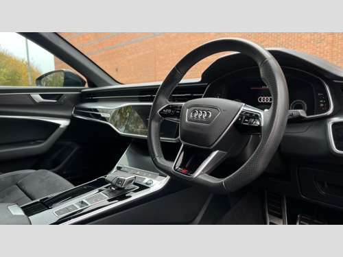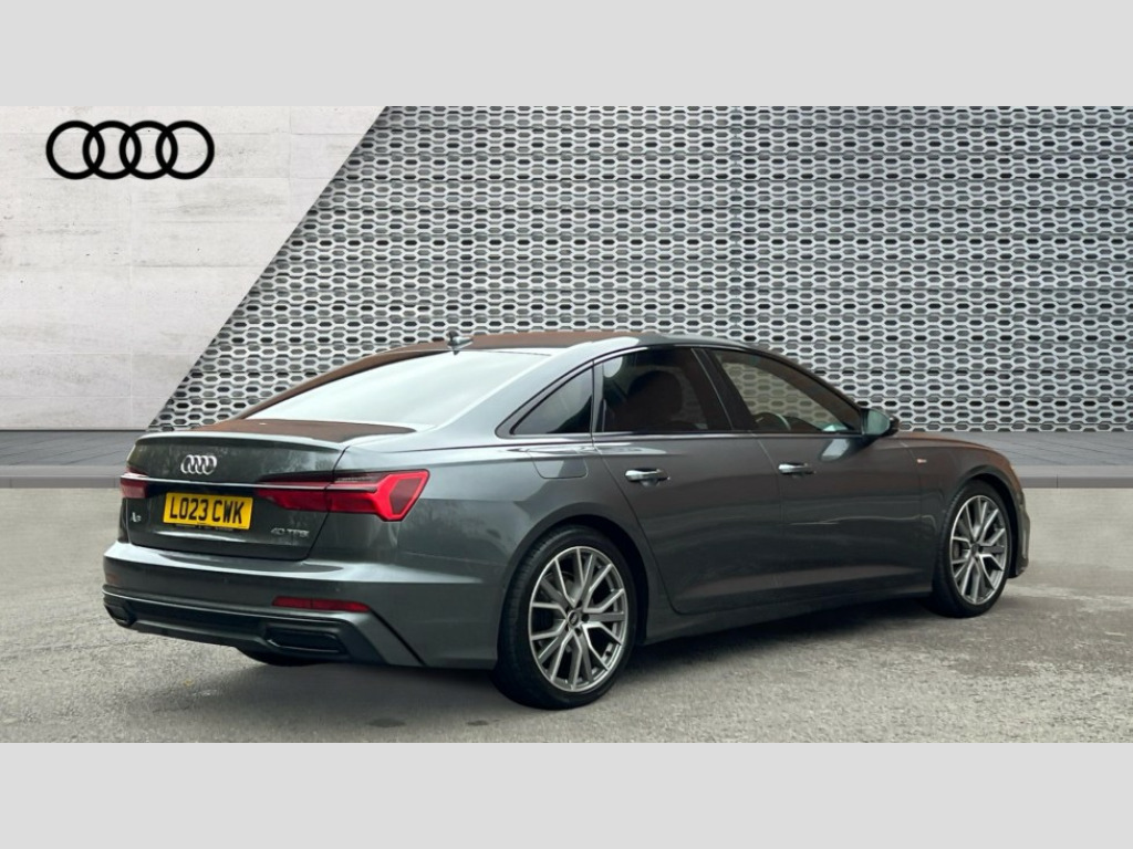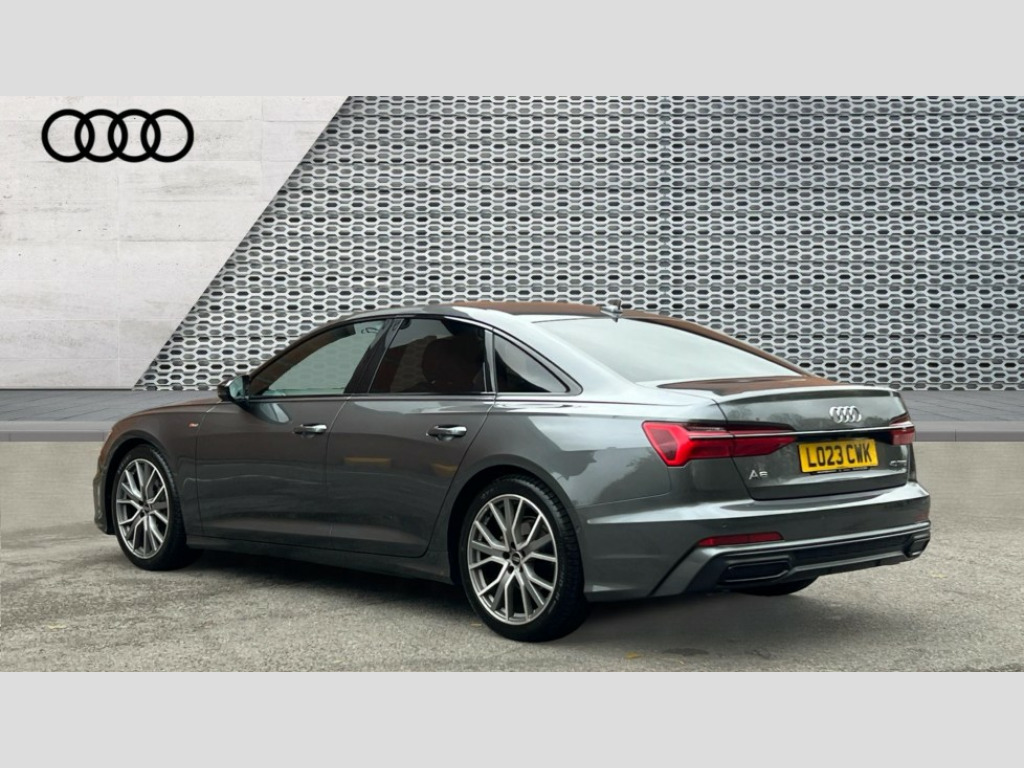 Audi A6 40 TFSI Black Edition 4dr S Tronic [Tech Pack] 7" high resolution colour driver information display system, Audi connect safety and service (e-call), Audi connect with Amazon Alexa Integration, Audi drive select, Audi parking system plus - acoustic and visual park assist system for front and rear, Automatic start/stop system with coasting functionality, Bluetooth interface, Electric boot lid release, Lane departure warning system, Progressive steering, Rear view camera, Service interval indicator, Smartphone interface includes wireless Apple carplay/Android Auto, Voice control system, Sports suspension, Audi front music interface, Audi sound system, Auxiliary input socket, DAB Digital radio, USB connection, Electric front/rear windows, Frameless auto dimming interior rear view mirror, Front intermittent wipers, Gloss black highlights on the exterior area of the Audi Single frame, Gloss black highlights on the front and rear bumpers, Gloss black highlights on the radiator grille, Gloss black highlights on the side windows trim strips, Headlight washers, Heat insulating darkened glass in side and rear windows, Heat insulating glass in windshield, LED signature front daytime running light, LED third brake light, Matrix LED headlights, Matt black rear diffuser with diffuser strip and tailpipes in chrome, Matt black side air intake grille with inlay in matt aluminium, Privacy glass, Rain and light sensors, Rear boot, Rear side wing doors, Signature rear LED light design, 2 zone deluxe electronic climate control, 4 way electric lumbar support for driver and front passenger, 40/20/40 split folding 3 rear seat bench in 3 parts with rear centre armrest, Black cloth headlining, Black front and rear carpet floor mat, Black steering wheel insert, Electrically adjustable front seats with driver memory, Front centre armrest, Front head restraints, Heated front seats, Height/reach adjust steering wheel, Illuminated door sill trims with S logo, Illuminated sun visors with vanity mirrors, ISOFIX child seat mounting and Top Tether with front passenger airbag deactivation, Leather gear knob, Rear headrests, Single front passenger seat, Stainless steel pedals and foot rest, LED Interior Ambient Lighting Pack - A6, Non smoking pack - A6, Technology pack - A6, 3 point seatbelts on all seats, Airbags - Front side, front and rear including head, Audi pre-sense front, Black seatbelts, EBD - Electronic brakeforce distribution, Electromechanical parking brake, Electronic Stability Control (ESC) including ABS, ASR and EDL, Extended pedestrian protection measures, Manual child proof rear door locks, Seatbelt monitoring, Tyre pressure warning light, Warning triangle and first aid kit, Anti theft alarm with tow away protection, Anti-theft wheel bolts and wheel loosening detection, Immobiliser, Keyless Go, Remote central locking, Carbon twill inlays, 20" 5 V spoke star design Audi sport cast aluminium alloy wheels in matt grey look