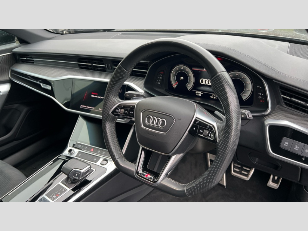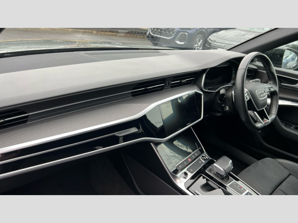 Audi A6 40 TFSI Black Edition 5dr S Tronic [Tech Pack] 7" high resolution colour driver information display system, Audi connect safety and service (e-call), Audi connect with Amazon Alexa Integration, Audi drive select, Audi parking system plus - acoustic and visual park assist system for front and rear, Automatic start/stop system with coasting functionality, Bluetooth interface, Lane departure warning system, Power operated tailgate, Progressive steering, Rear view camera, Service interval indicator, Smartphone interface includes wireless Apple carplay/Android Auto, Voice control system, Sports suspension, Audi front music interface, Audi sound system, Auxiliary input socket, DAB Digital radio, USB connection, All weather LED headlights, Black roof rails, Electric front/rear windows, Frameless auto dimming interior rear view mirror, Front intermittent wipers, Gloss black highlights on the exterior area of the Audi Single frame, Gloss black highlights on the front and rear bumpers, Gloss black highlights on the radiator grille, Gloss black highlights on the side windows trim strips, Headlight washers, Heat insulating darkened glass in side and rear windows, Heat insulating glass in windshield, LED rear lights, LED signature front daytime running light, LED third brake light, Matt black rear diffuser with diffuser strip and tailpipes in chrome, Matt black side air intake grille with inlay in matt aluminium, Privacy glass, Rain and light sensors, Rear roof spoiler, Rear side wing doors, Rear wiper, 2 zone deluxe electronic climate control, 4 way electric lumbar support for driver and front passenger, 40/20/40 split folding 3 rear seat bench in 3 parts with rear centre armrest, Black cloth headlining, Black front and rear carpet floor mat, Black steering wheel insert, Electrically adjustable front seats with driver memory, Front centre armrest, Front head restraints, Heated front seats, Height/reach adjust steering wheel, Illuminated door sill trims with S logo, Illuminated sun visors with vanity mirrors, ISOFIX child seat mounting and Top Tether with front passenger airbag deactivation, Leather gear knob, Luggage compartment system, Rear headrests, Single front passenger seat, Stainless steel pedals and foot rest, LED Interior Ambient Lighting Pack - A6, Non smoking pack - A6, Technology pack - A6, 3 point seatbelts on all seats, Airbags - Front side, front and rear including head, Audi pre-sense front, Black seatbelts, EBD - Electronic brakeforce distribution, Electromechanical parking brake, Electronic Stability Control (ESC) including ABS, ASR and EDL, Extended pedestrian protection measures, Manual child proof rear door locks, Seatbelt monitoring, Tyre pressure warning light, Warning triangle and first aid kit, Anti theft alarm with tow away protection, Anti-theft wheel bolts and wheel loosening detection, Immobiliser, Keyless Go, Remote central locking, Carbon twill inlays, 20" 5 V spoke star design Audi sport cast aluminium alloy wheels in matt titanium look