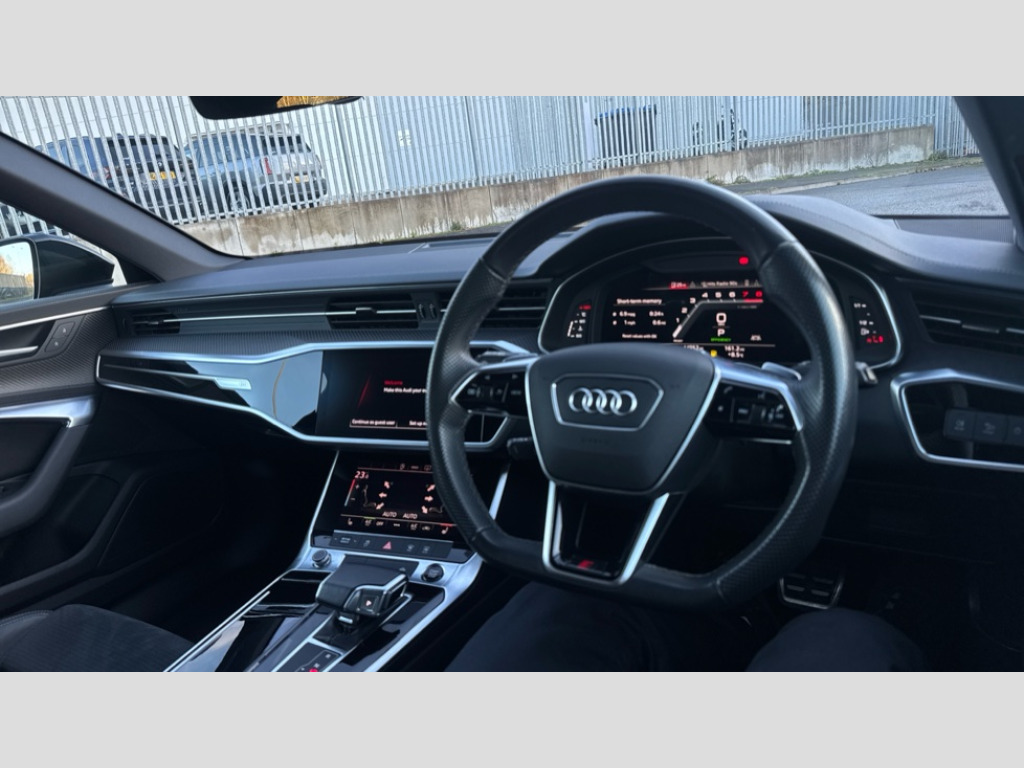 Audi A6 40 TFSI Black Edition 5dr S Tronic [Tech Pack] 7" high resolution colour driver information display system, Audi connect safety and service (e-call), Audi connect with Amazon Alexa Integration, Audi drive select, Audi parking system plus - acoustic and visual park assist system for front and rear, Automatic start/stop system with coasting functionality, Bluetooth interface, Lane departure warning system, Power operated tailgate, Progressive steering, Rear view camera, Service interval indicator, Smartphone interface includes wireless Apple carplay/Android Auto, Voice control system, Sports suspension, Audi front music interface, Audi sound system, Auxiliary input socket, DAB Digital radio, USB connection, All weather LED headlights, Black roof rails, Electric front/rear windows, Frameless auto dimming interior rear view mirror, Front intermittent wipers, Gloss black highlights on the exterior area of the Audi Single frame, Gloss black highlights on the front and rear bumpers, Gloss black highlights on the radiator grille, Gloss black highlights on the side windows trim strips, Headlight washers, Heat insulating darkened glass in side and rear windows, Heat insulating glass in windshield, LED rear lights, LED signature front daytime running light, LED third brake light, Matt black rear diffuser with diffuser strip and tailpipes in chrome, Matt black side air intake grille with inlay in matt aluminium, Privacy glass, Rain and light sensors, Rear roof spoiler, Rear side wing doors, Rear wiper, 2 zone deluxe electronic climate control, 4 way electric lumbar support for driver and front passenger, 40/20/40 split folding 3 rear seat bench in 3 parts with rear centre armrest, Black cloth headlining, Black front and rear carpet floor mat, Black steering wheel insert, Electrically adjustable front seats with driver memory, Front centre armrest, Front head restraints, Heated front seats, Height/reach adjust steering wheel, Illuminated door sill trims with S logo, Illuminated sun visors with vanity mirrors, ISOFIX child seat mounting and Top Tether with front passenger airbag deactivation, Leather gear knob, Luggage compartment system, Rear headrests, Single front passenger seat, Stainless steel pedals and foot rest, LED Interior Ambient Lighting Pack - A6, Non smoking pack - A6, Technology pack - A6, 3 point seatbelts on all seats, Airbags - Front side, front and rear including head, Audi pre-sense front, Black seatbelts, EBD - Electronic brakeforce distribution, Electromechanical parking brake, Electronic Stability Control (ESC) including ABS, ASR and EDL, Extended pedestrian protection measures, Manual child proof rear door locks, Seatbelt monitoring, Tyre pressure warning light, Warning triangle and first aid kit, Anti theft alarm with tow away protection, Anti-theft wheel bolts and wheel loosening detection, Immobiliser, Keyless Go, Remote central locking, Carbon twill inlays, 20" 5 V spoke star design Audi sport cast aluminium alloy wheels in matt titanium look