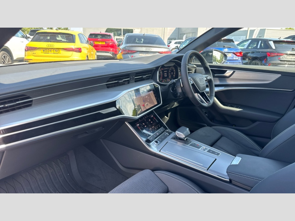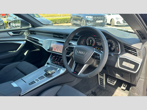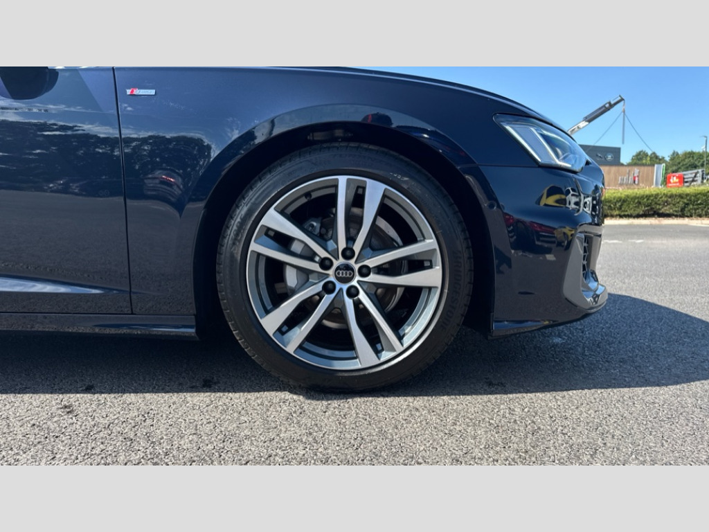 Audi A6 40 TFSI S Line 4dr S Tronic Audi connect safety and service (e-call), Audi connect with Amazon Alexa Integration, Audi drive select, Audi parking system plus - acoustic and visual park assist system for front and rear, Audi virtual cockpit, Automatic start/stop system with coasting functionality, Bluetooth interface, Camera based traffic sign recognition, Electric boot lid release, Lane departure warning system, MMI navigation plus with 10.1" and 8.6" touch screens, Progressive steering, Rear view camera, Service interval indicator, Smartphone interface includes wireless Apple carplay/Android Auto, Voice control system, Sports suspension, Audi front music interface, Audi sound system, Auxiliary input socket, DAB Digital radio, USB connection, Body coloured door mirrors, Electric front/rear windows, Electrically adjustable heated and folding + automatically dimming exterior mirrors with memory function, Frameless auto dimming interior rear view mirror, Front intermittent wipers, Heat insulating darkened glass in side and rear windows, Heat insulating glass in windshield, LED rear lights with dynamic indicators, LED signature front daytime running light, LED third brake light, Matrix LED headlights, Matt black rear diffuser with diffuser strip and tailpipes in chrome, Matt black side air intake grille with inlay in matt aluminium, Privacy glass, Radiator grille in anthracite black matt, single frame in chrome and horizontal struts in matt aluminium silver, Rain and light sensors, Rear boot, Rear side wing doors, 2 zone deluxe electronic climate control, 3 spoke high multi-function perforated leather steering wheel with contrast stitching and shift paddles, 40/20/40 split folding 3 rear seat bench in 3 parts with rear centre armrest, Audi phone box light, Black cloth headlining, Electrically adjustable front seats including seat height, fore/aft position, backrest angle and 4-way lumbar with memory for driver's seat, Front and rear floor mats, Front centre armrest, Front head restraints, Heated front seats, Height/reach adjust steering wheel, Illuminated door sill trims with S logo, Illuminated sun visors with vanity mirrors, Leather gear knob, Rear headrests, Single front passenger seat, Stainless steel pedals and foot rest, Tool kit and car jack, LED Interior Ambient Lighting Pack - A6, Non smoking pack - A6, S line exterior style pack - A6, 3 point seatbelts on all seats, Airbags - Front side, front and rear including head, Audi pre-sense front, EBD - Electronic brakeforce distribution, Electromechanical parking brake, Electronic Stability Control (ESC) including ABS, ASR and EDL, Extended pedestrian protection measures, ISOFIX child seat mounting for front passenger seat and ISOFIX child seat mounting with Top Tether for outer rear seats, Manual child proof rear door locks, Seatbelt monitoring, Tyre pressure warning light, Warning triangle and first aid kit, Anti theft alarm with tow away protection, Anti-theft wheel bolts and wheel loosening detection, Immobiliser, Keyless Go, Remote central locking, Matt brushed aluminium inlays
