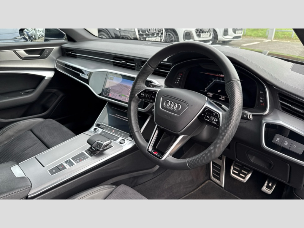 Audi A6 40 TFSI S Line 5dr S Tronic [Tech Pack] 7" high resolution colour driver information display system, Audi connect safety and service (e-call), Audi connect with Amazon Alexa Integration, Audi drive select, Audi parking system plus - acoustic and visual park assist system for front and rear, Automatic start/stop system with coasting functionality, Bluetooth interface, Lane departure warning system, Power operated tailgate, Progressive steering, Rear view camera, Service interval indicator, Smartphone interface includes wireless Apple carplay/Android Auto, Voice control system, Sports suspension, Audi front music interface, Audi sound system, Auxiliary input socket, DAB Digital radio, USB connection, Aluminium roof rails, Body coloured door mirrors, Electric front/rear windows, Frameless auto dimming interior rear view mirror, Front intermittent wipers, Headlight washers, Heat insulating darkened glass in side and rear windows, Heat insulating glass in windshield, LED signature front daytime running light, LED third brake light, Matrix LED headlights, Matt black side air intake grille with inlay in matt aluminium, Privacy glass, Radiator grille in anthracite black matt, single frame in chrome and horizontal struts in matt aluminium silver, Rain and light sensors, Rear side wing doors, Rear wiper, S line air inlet design with inlay in matt aluminium, S Line badge on front fender, S Line front and rear bumpers, S line rear diffuser and grille in matt black with matt aluminium tailpipes, S Line roof edge spoiler, S Line side skirts, Signature rear LED light design, 2 zone deluxe electronic climate control, 4 way electric lumbar support for driver and front passenger, 40/20/40 split folding 3 rear seat bench in 3 parts with rear centre armrest, Black cloth headlining, Black steering wheel insert, Electrically adjustable front seats with driver memory, Front centre armrest, Front head restraints, Heated front seats, Height/reach adjust steering wheel, Illuminated door sill trims with S logo, Illuminated sun visors with vanity mirrors, ISOFIX child seat mounting and Top Tether with front passenger airbag deactivation, Leather gear knob, Luggage compartment system, Perforated leather steering wheel with contrast stitching, Rear headrests, S line front and rear black carpet floor mats with contrast stitching, Single front passenger seat, Stainless steel pedals and foot rest, LED Interior Ambient Lighting Pack - A6, Non smoking pack - A6, Technology pack - A6, 3 point seatbelts on all seats, Airbags - Front side, front and rear including head, Audi pre-sense front, Black seatbelts, EBD - Electronic brakeforce distribution, Electromechanical parking brake, Electronic Stability Control (ESC) including ABS, ASR and EDL, Extended pedestrian protection measures, Manual child proof rear door locks, Seatbelt monitoring, Tyre pressure warning light, Warning triangle and first aid kit, Anti theft alarm with tow away protection, Anti-theft wheel bolts and wheel loosening detection, Immobiliser, Keyless Go, Remote central locking, Matt brushed aluminium dark inlays