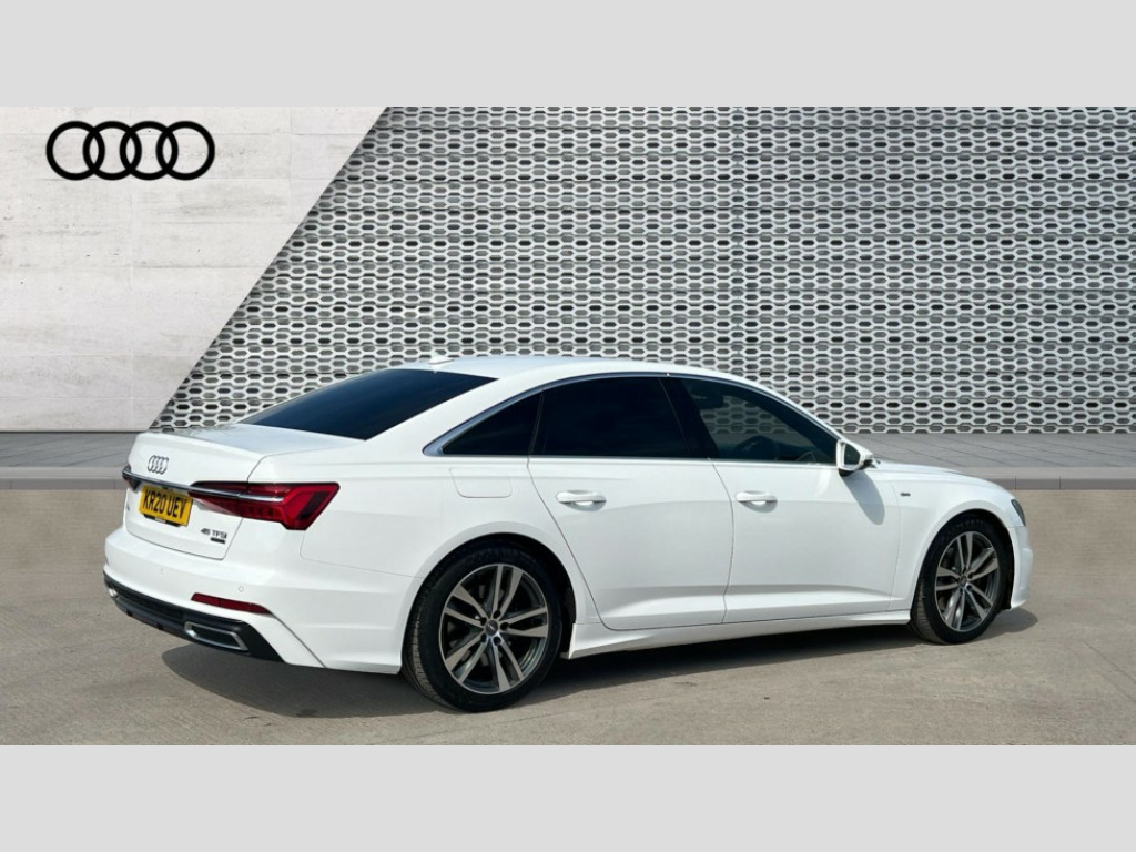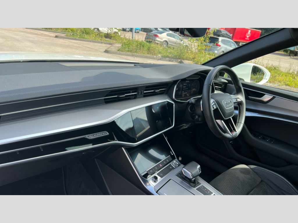 Audi A6 45 TFSI Quattro S Line 4dr S Tronic 7" high resolution colour driver information display system, Amazon alexa Integration, Audi connect safety and service (e-call), Audi drive select, Audi parking system plus - acoustic and visual park assist system for front and rear, Audi smartphone interface, Automatic start/stop system with coasting functionality, Bluetooth interface, Electric boot lid release, Lane departure warning system, MMI navigation with MMI touch + twin touch screens 8.8" and 8.6" with haptic and acoustic feedback, Progressive steering, Service interval indicator, Voice control system, 12V Mild hybrid, Quattro on demand, Sports suspension, Audi music interface, Auxiliary input socket, DAB Digital radio, USB connection, Body coloured door mirrors, Electric front/rear windows, Electrically adjustable, heated and folding door mirrors with driver memory function and integrated LED indicators, Frameless auto dimming interior rear view mirror, Headlight washers, Heat insulating darkened glass in side and rear windows, LED signature front daytime running light, Matrix LED headlights with dynamic rear indicators, Privacy glass, Radiator grille in titanium black matt, single frame in chrome and horizontal struts in matt aluminium silver, Rain and light sensors, S line air inlet design with inlay in matt aluminium, S Line badge on front fender, S Line front and rear bumpers, S line rear diffuser and grille in matt black with matt aluminium tailpipes, S Line side skirts, Signature rear LED light design, Windscreen with acoustic glazing, 2 zone deluxe electronic climate control, 4 way electric lumbar support for driver and front passenger, 40/20/40 split folding 3 rear seat bench in 3 parts with rear centre armrest, Black cloth headlining, Electrically adjustable front seats with driver memory, Front centre armrest, Front head restraints, Heated front seats, Height/reach adjust steering wheel, Illuminated door sill trims with S logo, Illuminated sun visors with vanity mirrors, ISOFIX child seat mounting and Top Tether with front passenger airbag deactivation, Leather gear knob, Rear headrests, S line front and rear floor mats with contrast stitching, Stainless steel pedals and foot rest, Tool kit and car jack, Non smoking pack - A6, 3 point seatbelts on all seats, Airbags - Front side, front and rear including head, Audi pre-sense front, Black seatbelts, EBD - Electronic brakeforce distribution, Electromechanical parking brake, Electronic Stability Control (ESC) including ABS, ASR and EDL, Extended pedestrian protection measures, Seatbelt monitoring, Tyre pressure warning light, Warning triangle and first aid kit, Anti theft alarm with tow away protection, Anti-theft wheel bolts and wheel loosening detection, Immobiliser, Keyless Go, Remote central locking