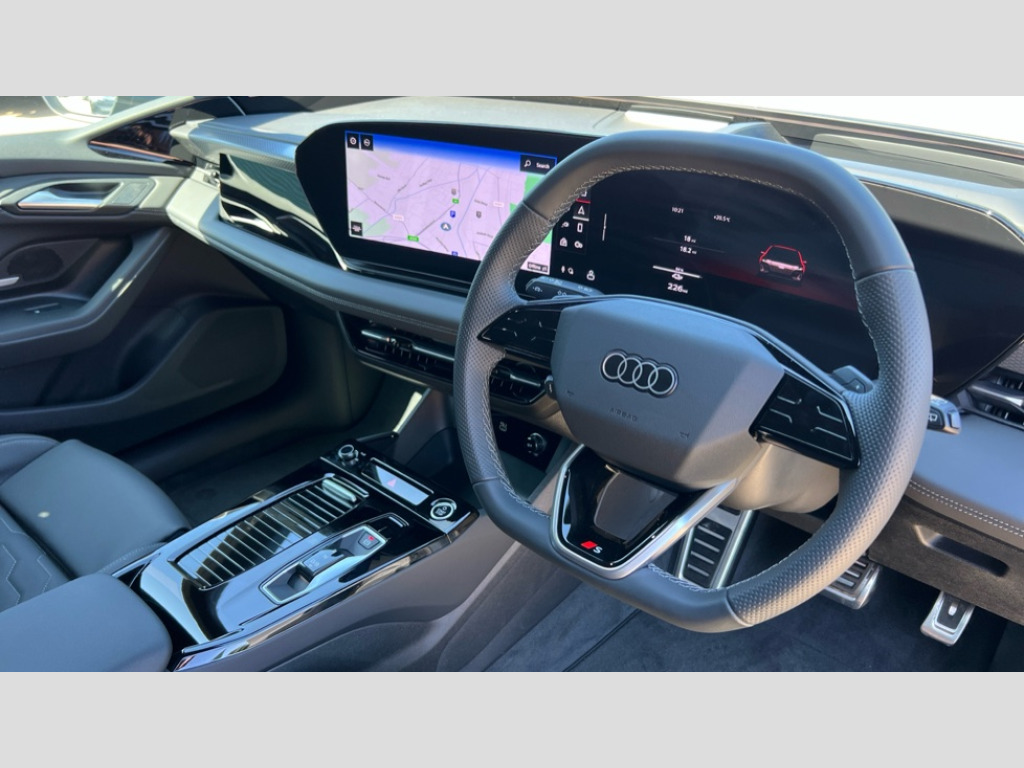 Audi A6 210kW 83kWh S Line 5dr Auto Audi application store, Audi assistant, Audi connect emergency call and service, Audi connect remote and controls, Audi drive select (Balanced/Individual, effeciency, comfort and dynamic), Audi smartphone interface, Audi virtual cockpit plus with 11.9" OLED colour display, Driver attention alert system, Fatigue monitor, Front cross traffic assist, Lane departure warning system, Luggage compartment lid with Electric opening / closing, MMI navigation plus with high resolution 14.5" OLED touchscreen colour display, Progressive steering, Swerve assist and front turn assist, USB ports with charging function in the first and second seat row - 15W output, 11 kW AC onboard charger, 2 charging ports - Charging port via charging (mode 2 and mode 3) + Charging port via DC charging (mode 4) driver side, Compact e-tron charging system, Dynamic suspension, Household plug type G for the e-tron charging system, Industrial connector CEE 32A, 230V, long and straight for the e-tron charging system, Mode 3 charging cable for public charging, 22 KW (AC), On-board charger up to 270 KW (DC), Wall mounted bracket for compact e-tron charging system, Audi sound system - 10 loudspeakers including centre loudspeaker and subwoofer, DAB Digital radio, Smartphone compartment with wireless charging, Acoustic glazing for front door windows, Auto dimming rear view mirror, Body coloured door handles, Body coloured door mirrors, Daytime running lights, Door sill trims with aluminium inlays in front with illuminated, Electric charging cover, Electrically adjustable heated and folding + automatically dimming exterior mirrors, Electrically operated frunk, Headlight cleaning system, High beam assist, Illuminated audi rings in rear, LED headlights plus, LED rear lights pro, LED third brake light, Privacy glass, Rear side wing doors, Rear wiper, Roof spoiler, S line exterior - Accents in chrome look matt anthracite in the front and rear area , Diffuser in black, Towbar preparation, White rhombus logo projection light in exterior mirrors, Window trim strips in aluminium look -Upper trim in matt aluminium silver,lower trim in black and trim on roof edge spoiler in chrome look matt silver, Windscreen with heat insulating and acoustic glazing, 3 spoke flat bottomed multi-function leather sport steering wheel with gear shift paddles, 3-zone deluxe automatic air conditioning, 4 way electrically adjustable lumbar support for driver and front passenger, 40/20/40 split folding 3 rear seat bench in 3 parts with rear centre armrest, Auxiliary air conditioning, Black carpets, Black cloth headlining, Black front and rear floor mats, Front centre armrest adjustable angle with four settings, Front head restraints, Heat pump, Heated front seats, Manual steering wheel adjustment, Manually adjustable front seats, Rear headrests, Single front passenger seat, Stainless steel pedals and foot rest, Steering wheel with trim in chrome look, S emblem, steering wheel grips in perforated leather and contrast stitching, Upper and lower interior elements in artificial leather plus, upper part of the instrument panel in black with contrast stitching, Ambient lighting pack - A6 E-TRON, Assist package drive and park - A6 E-TRON, 3 point seatbelts on all seats, Acoustic vehicle alerting system, Airbags - Front side, front and rear including head, Convenience key with safelock, First aid kit with warning triangle and high visibility vests, Front emergency brake assist, Front passenger airbag deactivation, Hill hold assist, ISOFIX child seat mounting for front passenger seat and ISOFIX child seat mounting with Top Tether for outer rear seats, Manual child proof rear door locks, Rear seat alert, Side airbags in front and rear with head airbag system and front interaction airbag, Standard steel disc brakes front and rear, Tyre pressure loss indicator, Anti theft alarm, Anti theft wheel bolts, Digital key, Accent surfaces and control buttons in gloss black, Black dashboard, Matt brushed aluminium inlays with linear embossing anthracite, Tyre repair kit