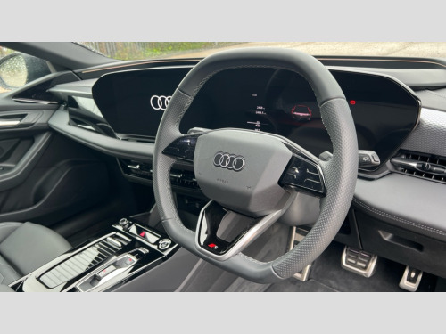 Audi A6 210kW 83kWh S Line 5dr Auto Audi application store, Audi assistant, Audi connect emergency call and service, Audi connect remote and controls, Audi drive select (Balanced/Individual, effeciency, comfort and dynamic), Audi smartphone interface, Audi virtual cockpit plus with 11.9" OLED colour display, Driver attention alert system, Fatigue monitor, Front cross traffic assist, Lane departure warning system, Luggage compartment lid with Electric opening / closing, MMI navigation plus with high resolution 14.5" OLED touchscreen colour display, Progressive steering, Swerve assist and front turn assist, USB ports with charging function in the first and second seat row - 15W output, 11 kW AC onboard charger, 2 charging ports - Charging port via charging (mode 2 and mode 3) + Charging port via DC charging (mode 4) driver side, Compact e-tron charging system, Dynamic suspension, Household plug type G for the e-tron charging system, Industrial connector CEE 32A, 230V, long and straight for the e-tron charging system, Mode 3 charging cable for public charging, 22 KW (AC), On-board charger up to 270 KW (DC), Wall mounted bracket for compact e-tron charging system, Audi sound system - 10 loudspeakers including centre loudspeaker and subwoofer, DAB Digital radio, Smartphone compartment with wireless charging, Acoustic glazing for front door windows, Auto dimming rear view mirror, Body coloured door handles, Body coloured door mirrors, Daytime running lights, Door sill trims with aluminium inlays in front with illuminated, Electric charging cover, Electrically adjustable heated and folding + automatically dimming exterior mirrors, Electrically operated frunk, Headlight cleaning system, High beam assist, Illuminated audi rings in rear, LED headlights plus, LED rear lights pro, LED third brake light, Privacy glass, Rear side wing doors, Rear wiper, Roof spoiler, S line exterior - Accents in chrome look matt anthracite in the front and rear area , Diffuser in black, Towbar preparation, White rhombus logo projection light in exterior mirrors, Window trim strips in aluminium look -Upper trim in matt aluminium silver,lower trim in black and trim on roof edge spoiler in chrome look matt silver, Windscreen with heat insulating and acoustic glazing, 3 spoke flat bottomed multi-function leather sport steering wheel with gear shift paddles, 3-zone deluxe automatic air conditioning, 4 way electrically adjustable lumbar support for driver and front passenger, 40/20/40 split folding 3 rear seat bench in 3 parts with rear centre armrest, Auxiliary air conditioning, Black carpets, Black cloth headlining, Black front and rear floor mats, Front centre armrest adjustable angle with four settings, Front head restraints, Heat pump, Heated front seats, Manual steering wheel adjustment, Manually adjustable front seats, Rear headrests, Single front passenger seat, Stainless steel pedals and foot rest, Steering wheel with trim in chrome look, S emblem, steering wheel grips in perforated leather and contrast stitching, Upper and lower interior elements in artificial leather plus, upper part of the instrument panel in black with contrast stitching, Ambient lighting pack - A6 E-TRON, Assist package drive and park - A6 E-TRON, 3 point seatbelts on all seats, Acoustic vehicle alerting system, Airbags - Front side, front and rear including head, Convenience key with safelock, First aid kit with warning triangle and high visibility vests, Front emergency brake assist, Front passenger airbag deactivation, Hill hold assist, ISOFIX child seat mounting for front passenger seat and ISOFIX child seat mounting with Top Tether for outer rear seats, Manual child proof rear door locks, Rear seat alert, Side airbags in front and rear with head airbag system and front interaction airbag, Standard steel disc brakes front and rear, Tyre pressure loss indicator, Anti theft alarm, Anti theft wheel bolts, Digital key, Accent surfaces and control buttons in gloss black, Black dashboard, Matt brushed aluminium inlays with linear embossing anthracite, Tyre repair kit