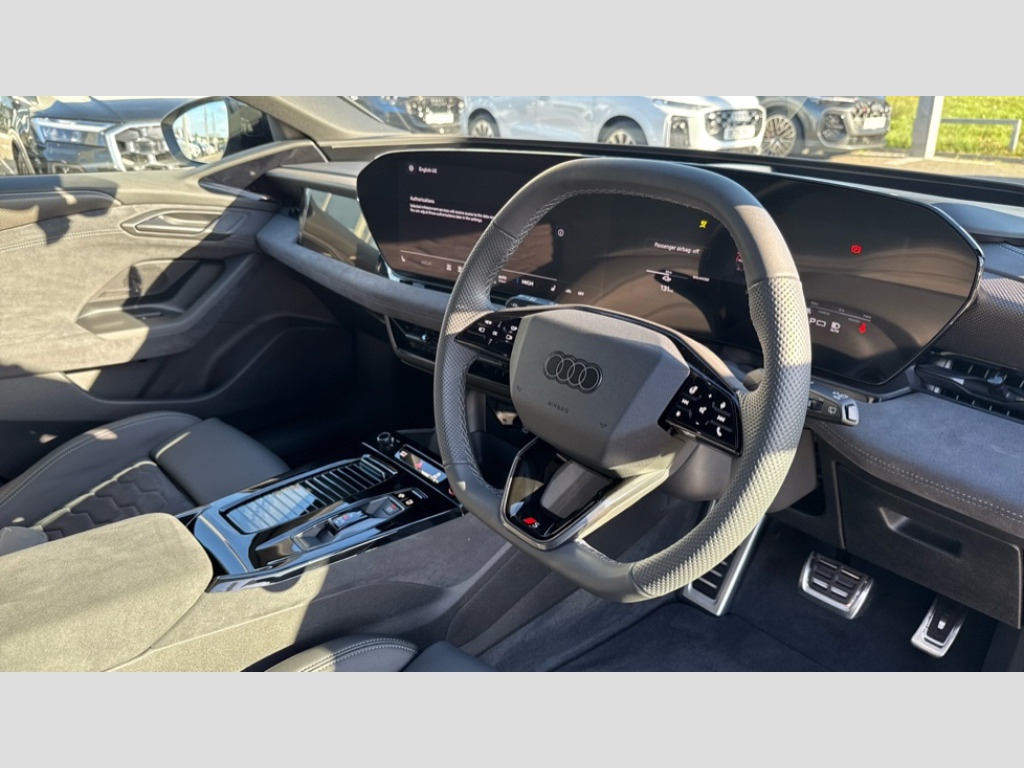 Audi A6 270kW Performance 100kWh Edition 1 5dr Auto Audi application store, Audi assistant, Audi connect emergency call and service, Audi connect remote and controls, Audi drive select (Balanced/Individual, effeciency, comfort and dynamic), Audi smartphone interface, Audi virtual cockpit plus with 11.9" OLED colour display, Augmented reality head up display, Driver attention alert system, Exit warning function, Fatigue monitor, Front cross traffic assist, Lane departure warning including emergency assist, Luggage compartment lid with Electric opening / closing, MMI 10.9" front passenger touch display, MMI navigation plus with high resolution 14.5" OLED touchscreen colour display, Proactive occupant protection, Progressive steering, Rear cross traffic assist, Rear turn assist, Side assist, Swerve assist and front turn assist, USB interfaces with higher charging capacity - 2 X 100 W in the rear and 2 X 60 W in the 1st seat row, 11 kW AC onboard charger, 2 charging ports - Charging port via charging (mode 2 and mode 3) + Charging port via DC charging (mode 4) driver side, Compact e-tron charging system, DC On-board charger 270kW, Dynamic suspension, Household plug type G for the e-tron charging system, Industrial connector CEE 32A, 230V, long and straight for the e-tron charging system, Mode 3 charging cable for public charging, 22 KW (AC), Wall mounted bracket for compact e-tron charging system, Bang and Olufsen premium sound system with 3D sound and integrated headrest speakers, DAB Digital radio, Smartphone compartment with wireless charging, Acoustic glazing for front door windows, Auto dimming rear view mirror, Black diffuser, Black door handle inserts, Black exterior door mirrors, Black single frame ornaments and black air intakes, Body colour radiator grille, Digital light signature with eight combination of daytime running light, Door sill trims with aluminium inlays in front with illuminated, Electric charging cover, Electrically operated frunk, Headlight cleaning system, High beam assist, Illuminated audi rings in rear, LED rear lights pro, LED third brake light, Matrix LED headlights, Privacy glass, Rear side wing doors, Rear wiper, Roof spoiler, Trim on roof edge spoiler in black, White rhombus logo projection light in exterior mirrors, Window trim strips and attachments, dark with audi rings, front and rear in anthracite grey, Windscreen with heat insulating and acoustic glazing, 3 spoke flat bottomed multi-function leather sport steering wheel with gear shift paddles, 3-zone deluxe automatic air conditioning, 4 way electrically adjustable lumbar support for driver and front passenger, 40/20/40 split folding 3 rear seat bench in 3 parts with rear centre armrest, Black carpets, Black cloth headlining, Black front and rear floor mats, Centre armrest, centre console and door armrests in dinamica microfibre black, Convenience auxiliary air conditioning, Electrically adjustable front seats, Front and rear outer heated seats, Front centre armrest adjustable angle with four settings, Front head restraints, Heat pump, Heated steering wheel, Manual steering wheel adjustment, Memory function for driver seat, Rear cup holders, Rear headrests, Single front passenger seat, Stainless steel pedals and foot rest, Steering wheel with trim in chrome look, S emblem, steering wheel grips in perforated leather and contrast stitching, Trim elements in the instrument panel and doors in black with contrast stitch in steel grey, Ambient lighting pack plus with dynamic interaction light - A6 E-TRON, Assist package drive and park plus - A6 E-TRON, 3 point seatbelts on all seats, Acoustic vehicle alerting system, Airbags - Front side, front and rear including head, Convenience key with safelock, E-tron sport sound, First aid kit with warning triangle and high visibility vests, Front emergency brake assist, Front passenger airbag deactivation, Hill hold assist, ISOFIX child seat mounting for front passenger seat and ISOFIX child seat mounting with Top Tether for outer rear seats, Manual child proof rear door locks, Occupant detection in rear seat area, Red brake callipers, Side airbags in front and rear with head airbag system and front interaction airbag, Standard steel disc brakes front and rear, Tyre pressure loss indicator, Anti theft alarm, Anti theft wheel bolts, Digital key, Accent surfaces and control buttons in gloss black, Accents in the interior in vanadium look, Black dashboard, Carbon square structure inlays, Upper and lower interior elements in dinamica microfibre, Tyre repair kit