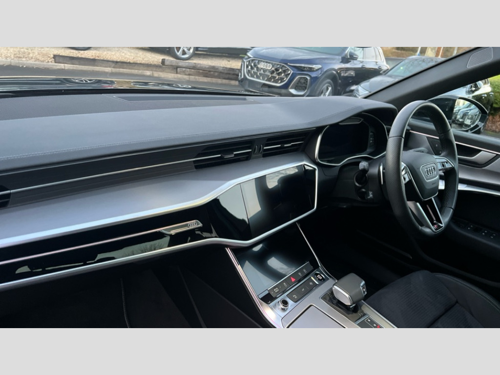 Audi A6 40 TFSI S Line 4dr S Tronic Audi connect safety and service (e-call), Audi connect with Amazon Alexa Integration, Audi drive select, Audi parking system plus - acoustic and visual park assist system for front and rear, Audi virtual cockpit, Automatic start/stop system with coasting functionality, Bluetooth interface, Camera based traffic sign recognition, Electric boot lid release, Lane departure warning system, MMI navigation plus with 10.1" and 8.6" touch screens, Progressive steering, Rear view camera, Service interval indicator, Smartphone interface includes wireless Apple carplay/Android Auto, Voice control system, Sports suspension, Audi front music interface, Audi sound system, Auxiliary input socket, DAB Digital radio, USB connection, Body coloured door mirrors, Electric front/rear windows, Electrically adjustable heated and folding + automatically dimming exterior mirrors with memory function, Frameless auto dimming interior rear view mirror, Front intermittent wipers, Heat insulating darkened glass in side and rear windows, Heat insulating glass in windshield, LED rear lights with dynamic indicators, LED signature front daytime running light, LED third brake light, Matrix LED headlights, Matt black rear diffuser with diffuser strip and tailpipes in chrome, Matt black side air intake grille with inlay in matt aluminium, Privacy glass, Radiator grille in anthracite black matt, single frame in chrome and horizontal struts in matt aluminium silver, Rain and light sensors, Rear boot, Rear side wing doors, 2 zone deluxe electronic climate control, 3 spoke high multi-function perforated leather steering wheel with contrast stitching and shift paddles, 40/20/40 split folding 3 rear seat bench in 3 parts with rear centre armrest, Audi phone box light, Black cloth headlining, Electrically adjustable front seats including seat height, fore/aft position, backrest angle and 4-way lumbar with memory for driver's seat, Front and rear floor mats, Front centre armrest, Front head restraints, Heated front seats, Height/reach adjust steering wheel, Illuminated door sill trims with S logo, Illuminated sun visors with vanity mirrors, Leather gear knob, Rear headrests, Single front passenger seat, Stainless steel pedals and foot rest, Tool kit and car jack, LED Interior Ambient Lighting Pack - A6, Non smoking pack - A6, S line exterior style pack - A6, 3 point seatbelts on all seats, Airbags - Front side, front and rear including head, Audi pre-sense front, EBD - Electronic brakeforce distribution, Electromechanical parking brake, Electronic Stability Control (ESC) including ABS, ASR and EDL, Extended pedestrian protection measures, ISOFIX child seat mounting for front passenger seat and ISOFIX child seat mounting with Top Tether for outer rear seats, Manual child proof rear door locks, Seatbelt monitoring, Tyre pressure warning light, Warning triangle and first aid kit, Anti theft alarm with tow away protection, Anti-theft wheel bolts and wheel loosening detection, Immobiliser, Keyless Go, Remote central locking, Matt brushed aluminium inlays