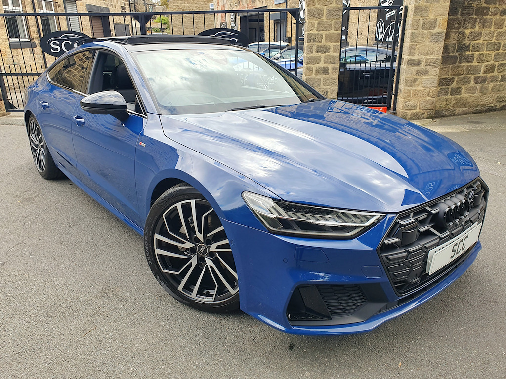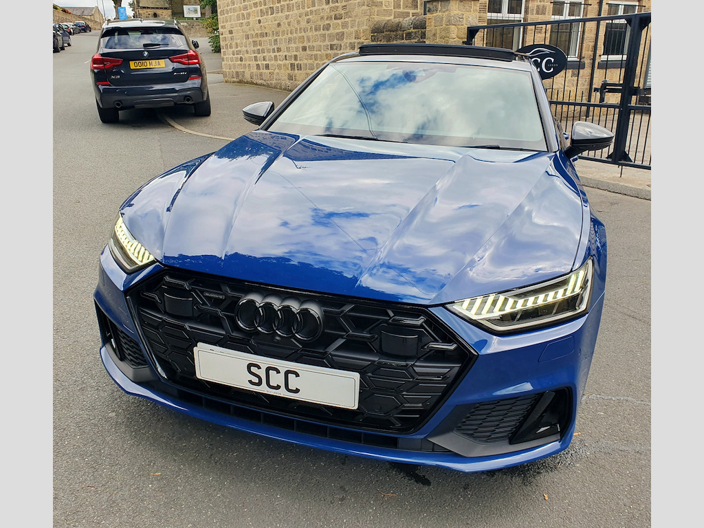 ***AUDI SERVICE PACK LIVE TO 26.02.2029*** Introducing the stunning 2.0 TDI 40 QUATTRO Audi A7. This 2023 model is presented in rare striking Ascari Blue. Full Audi history and is showing a live service pack until 2029! One of the standout features of this vehicle is the impressive 20-inch alloy wheels, designed in a 5-segment-spoke Evo style with a matte black and diamond-turned finish. Really making a nice contrast with the blue paint and black gloss styling package. Step inside, and you'll discover the comfort of 4-way electric lumbar support, providing personalised seating adjustments that cater to your comfort needs. Whether you're embarking on a long journey or navigating through city traffic, this feature promises to keep you relaxed and supported. The Audi Drive Select feature offers you the flexibility to tailor your driving experience to your preferences. Whether you desire a sportier performance or a more economical drive, simply switch modes and enjoy the ride that suits your mood. Finally, immerse yourself in a world of entertainment with the Audi Music Interface (AMI). This feature allows you to effortlessly connect your devices and enjoy your favourite music while on the go, creating the perfect soundtrack for your journeys. Bang & Olufsen HI-Fi system. Don't miss out on the opportunity to own this exceptional Audi A7. Contact SCC Leeds today at 01943884551 to arrange a test drive and experience the luxury and performance for yourself. Your next adventure awaits! 20in Alloy Wheels - 5-Segment-Spoke Evo Style Design - Matte Black - Diamond-Turned,4-Way Electric Lumbar Support,AMI - Audi Music Interface,Air Inlets in High Gloss Black,Airbags - Driver,Airbags - Front Passenger,Anti Theft Wheel Bolts and Wheel Loosening Detection,Anti-Theft Alarm with Tow-Away Protection,Audi Beam,Audi Connect (3 Year Subscription From New),Audi Connect Safety and Service - e-call,Audi Drive Select,Audi Phone Box Light,Audi Pre-Sense Front,Audi Smartphone Interface,Audi Sound System,Audi Virtual Cockpit,Auto Dimming and Frameless Rear View Mirror,Black Styling Pack Plus,Bluetooth Interface,Camera-Based Traffic Sign Recognition,Cloth Headlining,Cruise Control System with Speed Limiter,DAB Digital Radio,Deluxe 2-Zone Electronic Climate Control,Door Mirrors - Heated - Electrically Adjustable - Folding and Auto Dimming with Memory Function,ESC - Electronic Stabilisation Control inc ABS - ASR and EDL,Electric Windows - Front,Electrically Adjustable Front Seats with Driver Memory Function,Extended Pedestrian Protection,First Aid Kit and Warning Triangle,Flat Bottomed 3-Spoke Leather High Multi-Function Steering Wheel with Shift Paddles,Front Centre Armrest,Front and Rear Side Airbags with Head Airbag System,Gear Knob - Leather,HD Matrix LED Headlights,Heat Insulating Glass - Windscreen,Heated Front Seats,ISOFIX Child Seat Mounting and Top Tether - Front Passenger Airbag Deactivation,Illuminated Door Sill Trims with S Logo,Illuminated Sun Visors with Vanity Mirrors,Inlays - Carbon Twill,Keyless Go,LED Interior Ambient Lighting Pack,LED Rear Lights with Dynamic Indicator,Lane Departure Warning,Leatherette Upper Instrument Panel and Door Shoulders,Luggage Compartment Lid - Electrically Opening and Closing,MMI Navigation Plus including MMI Touch,Non-Smoking Package,Omission of Output-Technology Badging,Operating Buttons in Black - Glass Look with Haptic Feedback,Parking System Plus - Front and Rear Sensors,Pedals and Footrest - Stainless Steel,Privacy Glass,Progressive Steering,Rear Diffuser in Black with Chrome Inlay,Rear-View Camera,Retractable Rear Spoiler,S line Front and Rear Floor Mats with Contrast Stitching,Seat Belt Monitoring,Side and Rear Windows in Heat-Insulating Glass,Split-Folding 3-Seater Rear Seat Bench in 3 Parts - 40-20-40 with Rear Centre Armrest,Sport Suspension,Tool Kit,Tow Bar Preparation,Tyre Pressure Warning Light,Tyre Repair Kit,quattro On Demand,Ascari Blue,Leather-Dinamica - Sport Seats with S Embossed Logo - Black