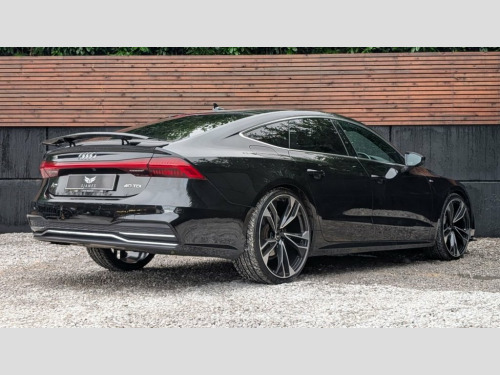 THIS STUNNING A7 COMES WITH A FANTASTIC SPEC WHICH INCLUDES - 22" Wheels - RS style honeycomb grille - Mythos Black Metallic. - Black leather and Alcantara interior. - Virtual cockpit - Reverse camera - Wireless charging pad - Satellite navigation - LED headlights with daytime running lights - Electrically adjustable seats - Heated seats - Automatic transmission - OPTIONAL EXTRA'S / UPGRADES AVAILABLE. - Optional 3 year manufacturer equivalent warranty available to purchase - Optional gloss black front splitter - Optional rear privacy - Optional gloss black wing mirrors - Optional gloss black badges - Optional brake caliper painting to a colour of your choice - The fitment of the brand new tyres, alloy wheels and styling parts are subject to a fee of £249. This also warrants the fitted parts for 12 months. - Number of keys to be confirmed at the point of sale. Mythos Black, 4-Way Electric Lumbar Support, AMI - Audi Music Interface, Airbags - Driver, Airbags - Front Passenger, Anti-Theft Alarm with Tow-Away Protectio, Anti-Theft Wheel Bolts and Wheel Looseni, Audi Connect (3 Year Subscription From N, Audi Connect Safety and Service - e-call, Audi Drive Select, Audi Phone Box with Wireless Charging, Audi Pre-Sense Front, Audi Smartphone Interface, Audi Sound System, Audi Virtual Cockpit, Auto Dimming and Frameless Rear View Mir, Black Cloth Headlining, Body Coloured Door Mirrors, Coming-Leaving Home Animations in Front , Cruise Control System with Speed Limiter, DAB Digital Radio, Deluxe 2-Zone Electronic Climate Control, Door Mirrors - Electrically