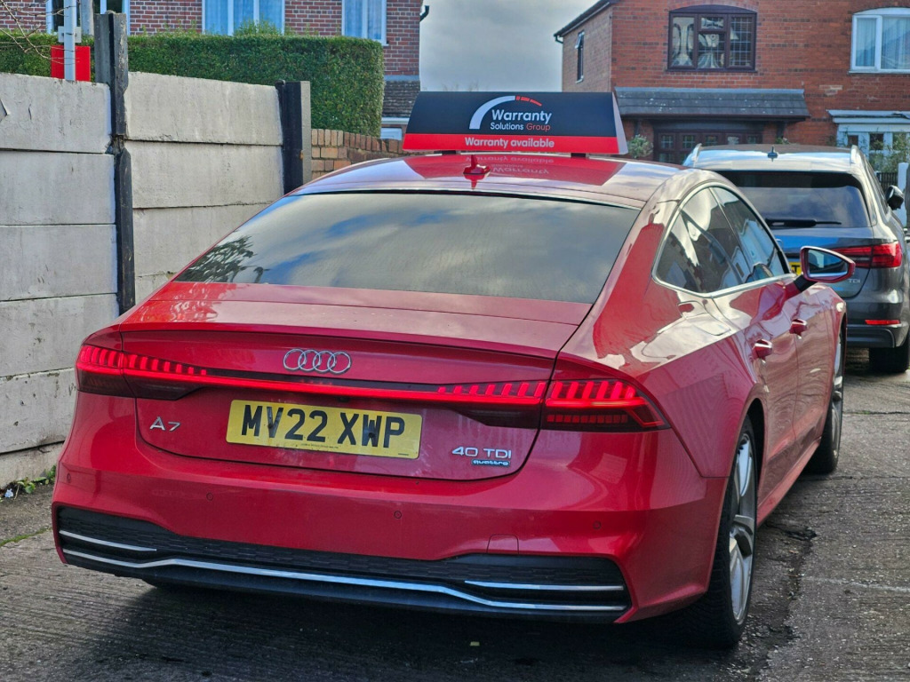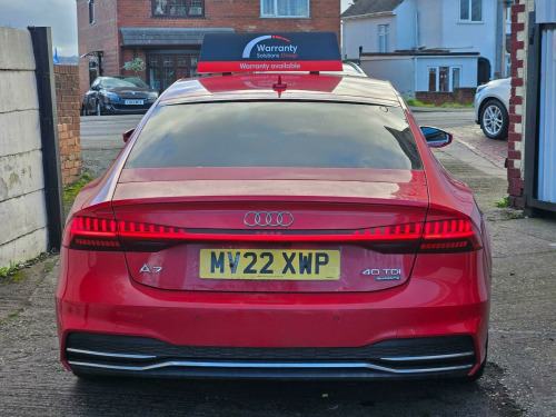 This 2022 Audi A7 2.0 TDI 40 S line Sportback S Tronic quattro Euro 6 (s/s) 5dr Hatchback is currently available for £21,995 in Brierley Hill West Midlands with Diesel engine and Automatic gearbox. For more information or to arrange a viewing, click here to send us an email using form below.