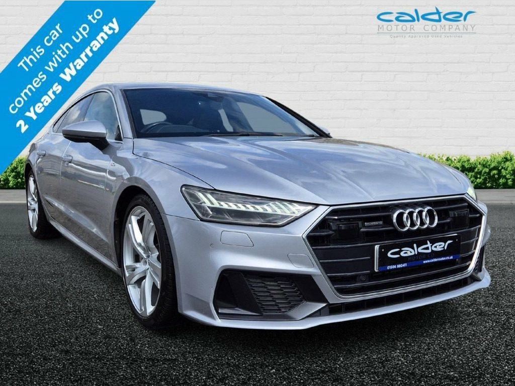Lovely A7 Finished in Metallic Floret Silver with Black Sports Valcona Leather with Rock grey contrast stitching Upholstery. This car has a very high spec with over £8500 of Factory options including The Tour Pack, Audi Virtual Dash, 20" Alloys, Acoustic Glazing with Privacy Glass, Extended LED Lighting ( Multi Coloured ), Four Zone Climate, Soft Close Doors, bang and Oulfsen Sound System, Satellite Navigation, Smart Phone Interface, Wireless Charging, Car Play, Keyless Entry and so much more. This car has a Full Service History and Two Keys. 20in Alloy Wheels - 5-Twin-Spoke V-Desig, 4-Way Electric Lumbar Support, Acoustic Glazing - Side Windows, AMI - Audi Music Interface, Audi Connect - 3 Year Subscription, Audi Connect Safety and Service - e-call, Audi Drive Select, Audi Phone Box with Wireless Charging, Audi Pre-Sense Front, Audi Smartphone Interface, Audi Virtual Cockpit - 12.3in High Resol, Auto Dimming and Frameless Rear View Mir, Bang and Olufsen Premium Sound System, Body Coloured Door Mirrors Electrically , Coming-Leaving Home Animations in Front , Cruise Control with Speed Limiter, DAB Digital Radio, Deluxe 4-Zone Automatic Climate Control, Electric Boot Lid Release, Electrically Adjustable Front Seats with, ESC - Elec