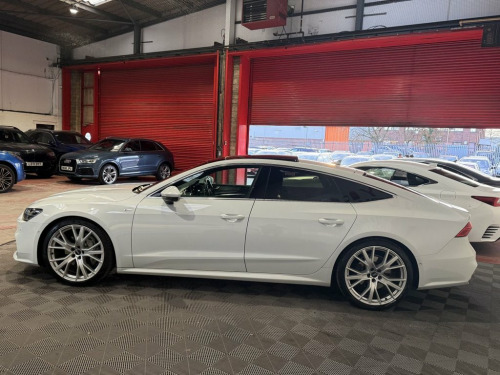 AUDI A7 3.0 TDI V6 50 S line Sportback 5dr Diesel Tiptronic quattro COMES WITH: -FULL AUDI SERVICE HISTORY -PANORAMIC SUNROOF -B&O SOUND SYSTEM -21" VORSPRUNG ALLOYS -HD MATRIX LED HEADLIGHTS WITH AUDI LASER LIGHT -SOFT CLOSE DOORS -FLAT BOTTOM STEERING WHEEL -STORAGE PACK -PRIVACY GLASS -HEATED & FOLDING MIRRORS -ELECTRIC SEATS WITH DRIVER MEMORY -SPACE SAVER WHEEL & JACK -APPLE CARPLAY -HEATED FRONT SEATS -DAB -BLUETOOTH AUDIO -LANE ASSIST -CRUISE CONTROL -PLUS ALL USUAL REFINEMENTS Rear Side Airbags, Leather-Alcantara - Sport Seats with S E, Storage Package, Flat Bottomed 3-Spoke Leather High Multi, Space Saver Spare Wheel and Jack, Panoramic Glass Sunroof, 21in Alloy Wheels - 5-V-Spoke Star Desig, 20in Alloy Wheels - 5-Twin-Spoke Design , 4-Way Electric Lumbar Support, AMI - Audi Music Interface, Airbags - Driver, Amazon Alexa Integration - Part of Conne, Anti-Theft Alarm with Tow-Away Protectio, Anti-Theft Wheel Bolts and Wheel Looseni, Audi Connect (3 Year Subscription From N, Audi Connect Safety and Service - e-call, Audi Drive Select, Audi Phone Box with Wireless Charging, Audi Pre-Sense Front, Audi Smartphone Interface, Audi Sound System, Audi Virtual Cockpit, Au