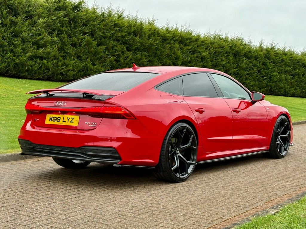 August 2019 Audi A7 50 TDI S-Line Quattro S-Tronic in Tango Red. Full Service History & Mot'd to December 2026. Loaded with spec including Virtual Cockpit, Half Leather / Suede S-Line Interior, Heated Seats, Virtual Cockpit, LED Daytime Running Lights, Cruise Control, Privacy Glass, Media System, Bluetooth, DAB radio, Dual Climate Control, Aero Styling Kit etc. Fitted with Brand New 22" Alloys & Tyres (Optional Extra £1495) FINANCE AVAILABLE AT KEEN RATES!! 20in Alloy Wheels - 5-Twin-Spoke Design , 4-Way Electric Lumbar Support, Airbags - Driver, Amazon Alexa Integration - Part of Conne, AMI - Audi Music Interface, Anti-Theft Alarm with Tow-Away Protectio, Anti-Theft Wheel Bolts and Wheel Looseni, Audi Connect (3 Year Subscription From N, Audi Connect Safety and Service - e-call, Audi Drive Select, Audi Phone Box with Wireless Charging, Audi Pre-Sense Front, Audi Smartphone Interface, Audi Sound System, Audi Virtual Cockpit, Auto Dimming and Frameless Rear View Mir, Black Cloth Headlining, Body Coloured Door Mirrors, Coming-Leaving Home Animations in Front , Cruise Control System with Speed Limiter, DAB Digital Radio, Deluxe 2-Zone Electronic C