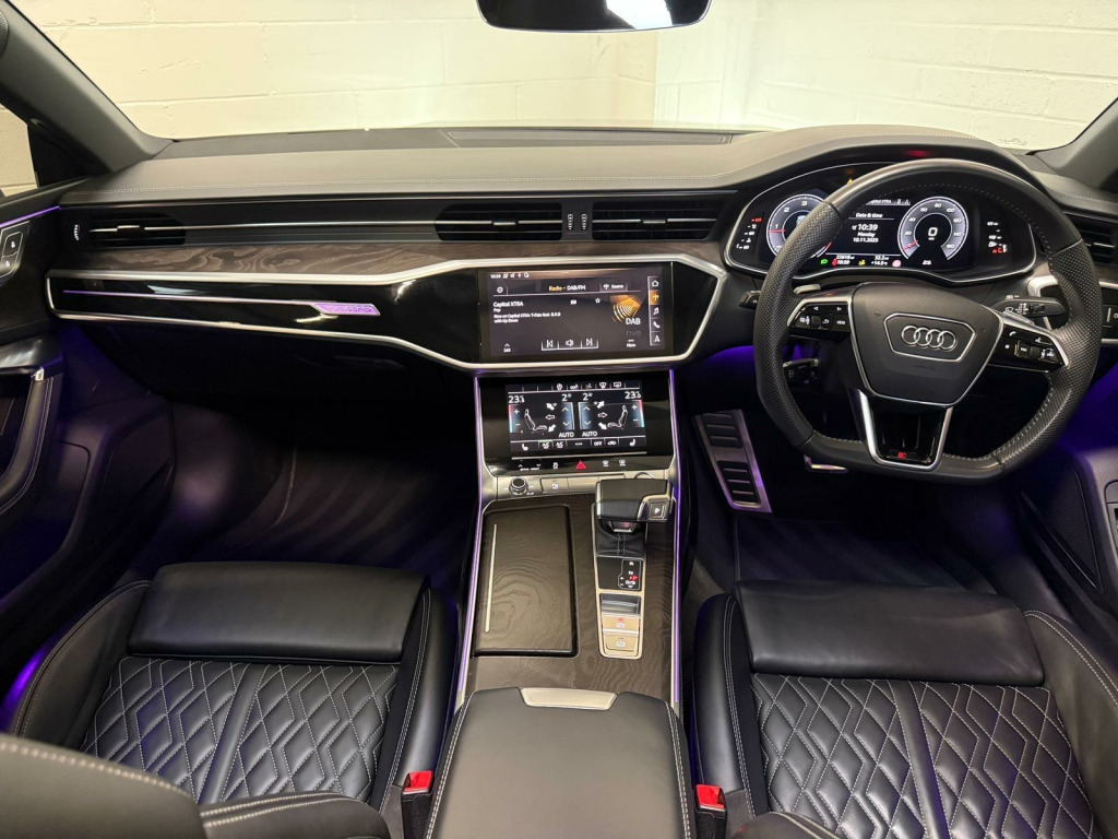 This 2020 Audi A7 TDI V6 Vorsprung presents an exceptional opportunity with its remarkably low mileage of just 22,000 miles. This premium saloon boasts a powerful 3.0 litre diesel engine paired with Audi's renowned four wheel drive system, ensuring confident performance in all conditions. As a Euro 6 compliant vehicle, it meets stringent emission standards. The Vorsprung trim level signifies a high specification, featuring convenient Advanced Key with keyless entry, and the Audi Phone Box with wireless charging to keep your devices powered up on the go.Experience effortless driving with the Head Up Display, projecting vital information directly into your line of sight. Parking is made simple thanks to the Parking System Plus, offering front and rear sensors, complemented by a 360 degree camera for complete situational awareness. This Audi A7 also offers generous boot space, making it practical for everyday use and longer journeys. Its impressive acceleration, capable of reaching 0-62mph in a swift 5.6 seconds, demonstrates its dynamic capabilities, setting it apart from other vehicles in its class. in alloy wheels - 5-v-spoke star design - gloss anthracite black - diamond cut, 360 degree camera, 4-way electric lumbar support, ami - audi music interface, adaptive air suspension, adaptive windscreen wipers with integrated washer jets, advanced key, airbags - driver, amazon alexa integration - part of connect navigation and information plus, anti-theft alarm with tow-away protection, anti-theft wheel bolts and wheel loosening warning, audi beam, audi connect (3 year subscription from new), audi connect safety and service - e-call, audi drive select, audi music interface in the rear, audi phone box with wireless charging, audi pre-sense front, audi smartphone interface, audi virtual cockpit, auto dimming and frameless rear view mirror, black cloth headlining, city assist pack, comfort and sound package, coming-leaving home animations in front and rear, dab digital radio, deluxe 4-zone automatic climate control, dynamic all-wheel steering, esc - electronic stabilisation control inc abs - asr and edl, electric boot lid release, electric steering column adjustment, electric windows - front, electrically adjustable front seats with driver memory function, electromechanical parking brake, extended led interior lighting package - multi-coloured, extended pedestrian protection, exterior mirrors -? heated - electrically adjustable - folding and auto-dimming, first aid kit and warning triangle, flat bottomed 3-spoke leather high multi-function steering wheel with shift paddles, front centre armrest, front super sports seats, front and rear side airbags with head airbag system, full leather package, gear knob - leather, gloss black door mirror housings, gloss black highlights on the exterior in the area of the audi single frame, gloss black highlights on the front and rear bumpers, gloss black highlights on the radiator-grille, gloss black highlights on the trim strips on the side windows, hd matrix led headlights with audi laser light, head-up display, headlight washers, heated front and rear seats, isofix child seat mounting and top tether - front passenger airbag deactivation, illuminated door sill trims with s logo, illuminated sun visors with vanity mirrors, inlays - fine grain ash - natural grey-brown, keyless go, led interior ambient lighting pack, led rear lights, lane departure warning, leatherette upper instrument panel and door shoulders, light and rain sensor, luggage compartment floor, mmi navigation plus including mmi touch, non-smoking package, operating buttons in black - glass look with haptic feedback, panoramic glass sunroof, parking system plus - front and rear sensors, pedals and footrest - stainless steel, power door closure, power operated tailgate, retractable rear spoiler, s line air inlet design with inlay in high gloss black, s line front and rear bumpers, s line side skirts, s line front and rear floor mats with contrast stitching, s line rear diffuser - black with chrome inlay and rear grille, seat belt monitoring, side and rear windows in heat-insulating glass, signature led drl, split-folding 3-seater rear seat bench in 3 parts - 40-20-40 with rear centre armrest, tool kit, tour pack, tow bar preparation, tyre pressure warning light, tyre repair kit, voice control system, windscreen with acoustic glazing, quattro all-wheel drive