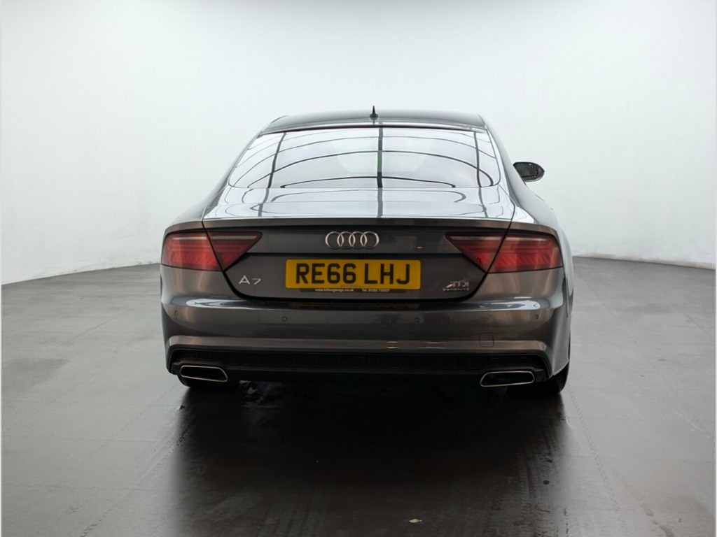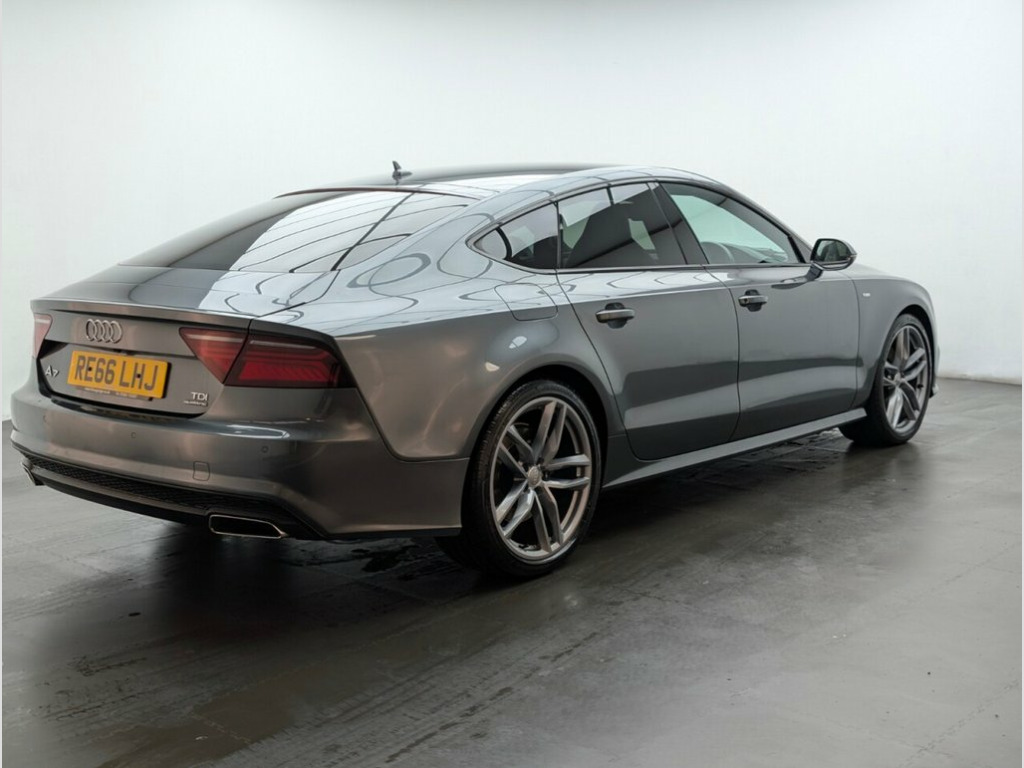 Stylish Audi A7 in Grey with Heated Seats - Audi Parking System Plus - Privacy Glass - BOSE Surround Sound System - Cruise Control Service History: 26/11/2018 at 13k, 25/03/2021 at 27k, 25/08/2022 at 37k, 09/08/2023 at 46k Boasting exceptionally low mileage for its age, this 2016 Audi A7 TDI V6 Black Edition presents a compelling proposition. With only 61,000 miles on the clock and a clear vehicle history check, this Euro 6 compliant model offers peace of mind, further enhanced by an MOT valid until October 2026. The sophisticated Black Edition trim is complemented by a powerful 3.0L Diesel engine and Audi's renowned Four Wheel Drive system, ensuring a dynamic and assured driving experience. Inside, you'll find a host of premium features designed for comfort and convenience, including Deluxe 4-Zone Automatic Climate Control, Electrically Adjustable Front Seats with a memory function for the driver, and the immersive BOSE Surround Sound System. The intelligent Light and Rain Sensor, along with striking Audi Matrix LED Headlights, add to the vehicle's advanced technology. This Audi A7 stands out from other vehicles in its class thanks to its impressive performance and thoughtful features. The potent 3.0L Diesel engine allows for brisk acceleration, reaching 0-60mph in a swift 5.5 seconds, demonstrating its capability. Practicality is also a key strength, with a generously sized boot offering ample storage for luggage or shopping. The combination of its advanc 21in Alloy Wheels - 5-Arm Rotor Design M, ABS - Anti-Lock Braking System, Acoustic Glazing, Airbags, AMI - Audi Music Interface, Anti Theft Locking Wheel Bolts, Anti-Theft Alarm, ASR - Anti Slip Regulation, Audi Drive Select, Audi Hill Hold Assist, Audi Matrix LED Headlights, Audi Parking System Plus, Auto-Dimming Rear-View Mirror, AUX-IN Socket, Black Styling Package, Bluetooth Interface, BOSE Surround Sound System, Cloth Headlining in Black, Colour Drivers Information System - DIS, Cruise Control, Deluxe 4-Zone Automatic Climate Control, Door Mirrors - Heated-Electrically Adjus, Door Sill Trims with S Line Logo, Door Trim Inserts - Alcantara, Dynamic Front Indicators, Dynamic Rear Indicato