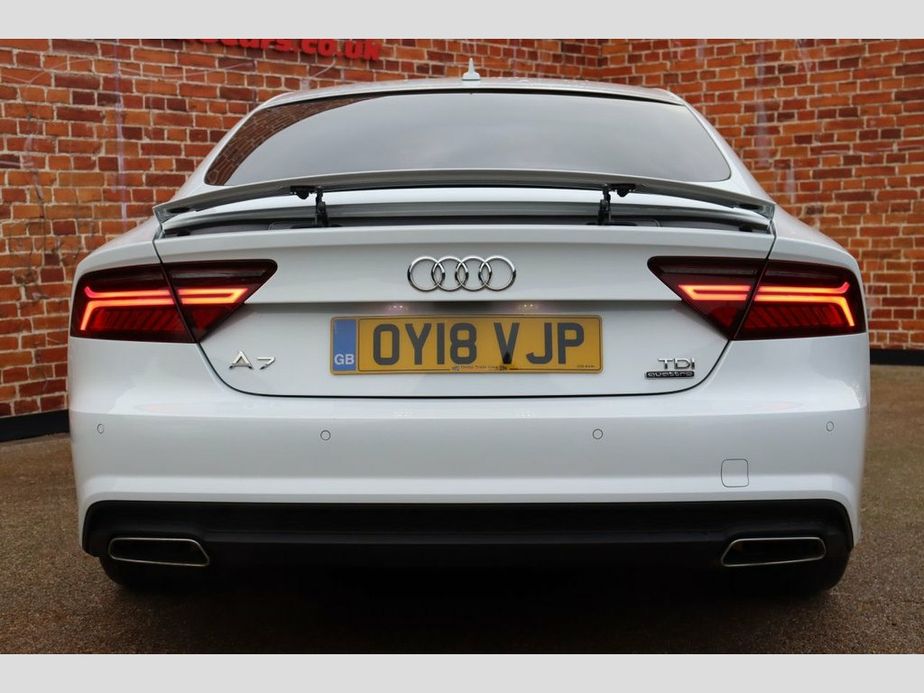 Here We Have The Audi A7 3.0, Black Edition! An Immaculate Low Mileage Example, Finished In Glacier White Metallic, With A Black Styling Package! Find The Full List Of Details And Specification Below: EXTERIOR SPECIFICATION: - Finished In Glacier White - Black Styling Package - 21" Alloys - Xenon Headlights - LED Daytime Running Lights - Rear Tinted Privacy Glass - Electric Boot Spoiler - Electric Tailgate - Front And Rear Parking Sensors - Electric Folding Wing Mirrors In Gloss Black INTERIOR SPECIFICATION: - Head-Up Display - Bose Sound System - Full Black Leather Seats - 'S Line' Headrest Embossing - Electric Memory Seats - Heated Seats - Multifunctional Leather Steering Wheel - Cruise Control - Paddle-Shift Gear Change - Cd/Radio Player - DAB Radio - Full Screen Sat Nav - Bluetooth Connection - 4-Zone Digital Climate Control - Keyless Start - Automatic Stop/Start Technology - Auto Hold - Wireless Phone Charging Service History Carried Out At: @ 4,923 miles @ 13,212 miles @ 17,315 miles @ 20,564 miles @ 22,948 miles. The Current Mileage Is 25,198 miles This Car Will Come With MOT Until 13th November 2026 With NO Advisories. All HPI Clear. Comes With 2X Keys. Contact Us Today TO Arrange A Viewing! 21in Alloy Wheels - 5-Arm Rotor Design M, 6-Airbag System, ABS - Anti-Lock Braking System, AMI - Audi Music Interface, Anti-Theft Alarm, Audi Drive Select, Audi Hill Hold Assist, Audi Matrix LED Headlights, Audi Parking System Plus, Auto-Dimming Rear-View Mirror, Black Styling Package, Bluetooth Interface, BOSE Surround Sound System, Cloth Headlining in Black, Colour Drivers Information System - DIS, Cruise Control, Deluxe 4-Zone Automatic Climate Control, Door Mirrors - Heated-Electrically Adjus, Door Mirrors - Heated-Electrically Adjus, Door Mirrors - High-Gloss Black Housing, Door Sill Trims with S Line Logo, Door Trim Inserts - Alcantara, Dynamic Rear Indicators, Electric Tailgate, Elect