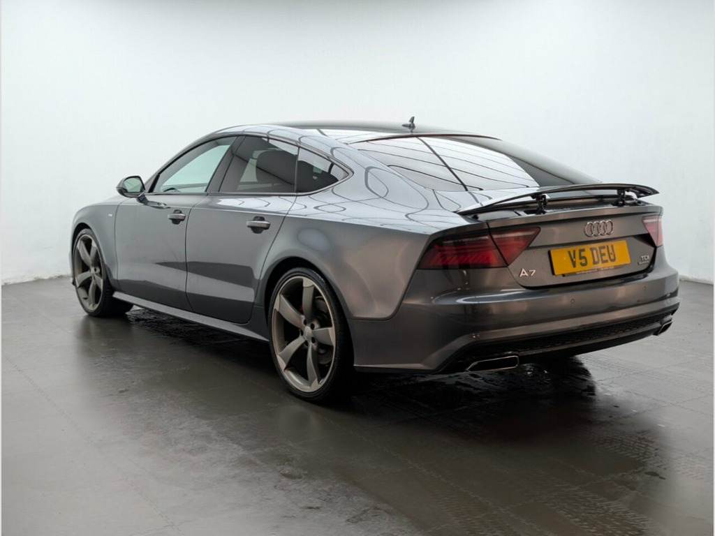 21" alloys, Navigation, Heated seats, Bluetooth and BOSE sound system. With an exceptionally low mileage for its age, this 2017 Audi A7 TDI V6 Black Edition presents a compelling proposition. This striking example boasts a powerful 3.0 litre diesel engine paired with a smooth four wheel drive system, ensuring confident performance in all conditions. As a Euro 6 compliant vehicle, it meets stringent emission standards. The MOT remains valid until July 2026, offering peace of mind for the new owner. Inside, you'll find a wealth of premium features designed for comfort and convenience, including electrically adjustable front seats with memory function and 4 way electric lumbar support, a Bluetooth interface for seamless connectivity, and a superb BOSE surround sound system for an immersive audio experience. The deluxe 4 zone automatic climate control allows everyone to set their preferred temperature, while the advanced Audi Matrix LED headlights provide exceptional visibility. This Audi A7 TDI V6 Black Edition stands out from similar vehicles thanks to its impressive acceleration, reaching 0-60mph in just 6.6 seconds, a testament to its potent engine and refined engineering. The generous boot space is another key highlight, offering ample room for luggage or shopping, making it a practical choice for everyday use and longer journeys alike. This combination of performance, luxury, and practicality, coupled with its remarkably low mileage, makes this A7 a truly desirab 21in Alloy Wheels - 5-Arm Rotor Design M, 6-Airbag System, ABS - Anti-Lock Braking System, AMI - Audi Music Interface, Anti-Theft Alarm, Audi Drive Select, Audi Hill Hold Assist, Audi Matrix LED Headlights, Audi Parking System Plus, Auto-Dimming Rear-View Mirror, Black Styling Package, Bluetooth Interface, BOSE Surround Sound System, Cloth Headlining in Black, Colour Drivers Information System - DIS, Cruise Control, Deluxe 4-Zone Automatic Climate Control, Door Mirrors - Heated-Electrically Adjus, Door Mirrors - High-Gloss Black Housing, Door Sill Trims with S Line Logo, Door Trim Inserts - Alcantara, Dynamic Rear Indicators, Electric Tailgate, Electric Windows - Front and Rear, Electrically