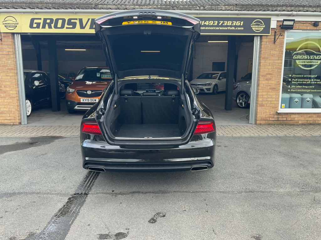 This 2015 British Audi A7 3.0 TDI V6 Black Edition Sportback 5dr Diesel S Tronic quattro Euro 6 (s/s) (272 ps) Hatchback has a mileage of 49000, 5 seats, and 5 doors. It runs on Diesel and is ULEZ compliant, making it an efficient and environmentally friendly choice. The MOT is valid until 03/03/2026, providing peace of mind for the next few years. This Audi A7 comes equipped with features such as 12V Power Socket, AMI - Audi Music Interface, AUX-IN Socket, and a 12-Channel Amplifier, ensuring a comfortable and enjoyable driving experience. With its sleek black exterior and powerful V6 engine, this Audi offers both style and performance for any journey.At Grosvenor Cars Norfolk all our customers have the added peace of mind that all our vehicles are supplied with a minimum of 8 months mot, sales service, pre delivery inspection & 6 months parts & labour warranty for total peace of mind. We also have our own workshop facilities on site with use of free courtesy cars available. Part exchange welcome & finance available. We offer both PCP and Hire Purchase agreements, please call us for a free quotation or more information. All our vehicles have vast specifications, in most cases, far too much too list, so please always check the vehicles exact specification prior to purchase. We always have at least 30 vehicles in stock to choose from. For more information, please call 01493 738361 or visit our website www.grosvenorcarsnorfolk.co.uk v power socket, 12v power socket - rear, ami - audi music interface, aux-in socket, amplifier - 12-channel, audio output - 600 watts, audiopilot for noise compensating volume adjustment, bose surround sound system, dab digital radio, dis - drivers information system with display screen colour - 7in, display screen colour 6.5in for mmi, mmi navigation - sd card based, mmi radio plus, mp3 - wma and aac compatible cd player, sdhc card reader x2, speakers x14, subwoofer in spare wheel well, 21in alloy wheels - 5-arm rotor design matt titanium finish, acoustic glazing, anti theft locking wheel bolts, b-pillar trim in high-gloss black finish, black styling package, bumpers - s line front, diffuser - rear - platinum grey insert - s line design, door mirrors - automatic kerb view dipping function when reversing, door mirrors - electrically adjustable and heated, door mirrors - memory function, dynamic led indicators - front, dynamic rear indicators, electric windows - front and rear, front side grills - matt black, heat insulating glass - windscreen, high gloss package, number plate holder in matt black, platinum grey front spoiler lip and diffuser insert, privacy glass, radiator grille - matt black, radiator grille frame and struts - high gloss black, s line badge on the steering wheel, s line badges on wings, s line side skirts, side ventilation grille - s line, sound insulating glass - windscreen, space saver spare wheel, spoiler - retractable, window capping and side profile roof trim in high-gloss black, abs - anti-lock braking system, airbags - curtain, airbags - driver, airbags - front passenger, airbags - front side, anti-theft alarm, audi hill hold assist, audi parking system plus, esp - electronic stability programme, front passenger airbag deactivation switch, isofix child seat mounting for front passenger, isofix child seat preparation for rear seats with top tether, immobiliser, remote central locking, warning triangle, acoustic and visual parking system - front, acoustic and visual parking system - rear, audi drive select, cruise control, efficiency program in the drivers information system - dis, mobile telephone preparation - low with bluetooth and voice control, outside temperature display, power steering - electromechanical/servotronic speed sensitive, rest recommendation system, s line suspension, trip computer, tyre pressure monitoring system, voice control - navigation, voice control - telephone, active door reflectors, auto-dimming rear-view mirror, automatic wipers with rain sensor, cables x2 - mp3 connection including ipod, car jack, climate control - electronic deluxe 4-zone, cloth headlining in black, door sill trims with s line logo, door trim inserts - alcantara, dynamic route guidance, electrically adjustable 4-way lumbar support, electrically adjustable front seats with memory function for drivers side, front centre armrest, front and rear floor mats, front and rear reading lights, gear knob - perforated leather black, head restraints - leather, head restraints - rear x3, heated front seats, inlays - piano finish - black, keyless go, non-smoking package, pollen filter, power operated tailgate, remote boot release, seats - drivers memory function, seats - extendable thigh support, seats - front electric adjustment, seats - front electric height adjustment, seats - split folding rear - 60-40 or all, start-stop button, steering wheel - 3-spoke leather - multi-function - sports - shift paddles, steering wheel - gear shift paddles, steering wheel - height and reach adjustable, steering wheel - multi-function, tp memo - automatically saves traffic news, tool kit, audi matrix led headlights, headlights - automatic activation, headlights - automatic adjustment, headlights washers, led daytime running lights, led tail lights