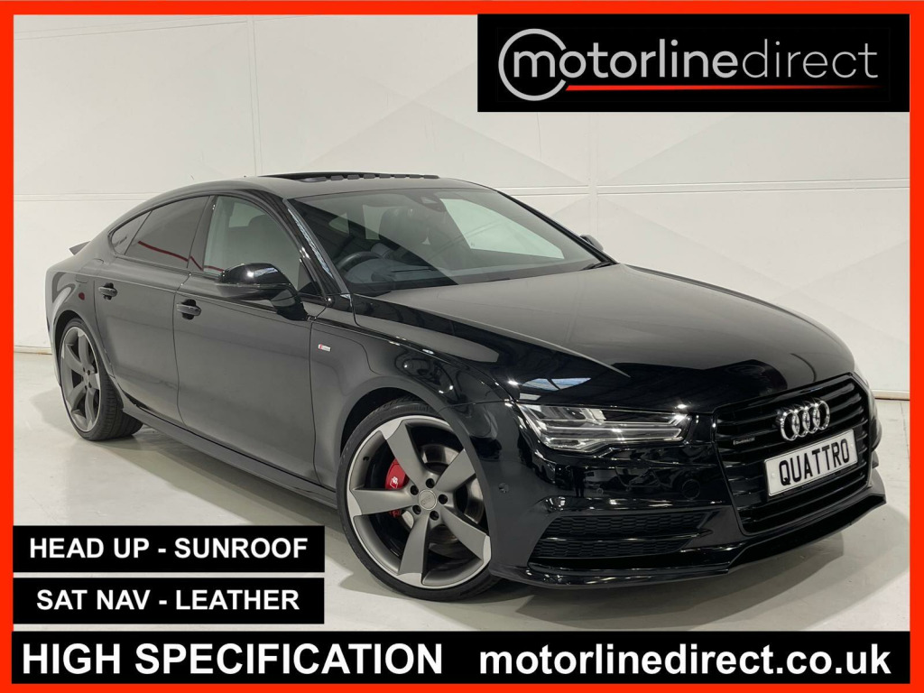 FINANCE & PART EXCHANGE AVAILABLE* - Only 2 registered keepers & 62,859 miles from new, SERVICE HISTORY, 2 KEYS - this FANTASTIC VERY HIGH SPECIFICATION AUDI A7 3.0 TDI V6 BLACK EDITION QUATTRO SPORTBACK AUTOMATIC is finished in stunning sports black & is complimented with contrasting full black leather sports trim and extends itself to the following additional features - Audi Black Edition Sports styling, head up display, full electric tilt & sliding glass sunroof, on board satellite navigation system, DVD, reverse camera, wireless phone charger, 4 zone climate control / automatic air conditioning, trip computer, cruise control, leather trimmed multi function steering wheel with paddle shift, front & rear park distance control, park assist, driver & passenger electric heated front seats with drivers memory, Bluetooth telephone prep, DAB digital radio, media input, BOSE surround sound system, Audi Connect, Apple CarPlay / Android Auto, voice command, keyless entry & start, start / stop, Audi drive select, electric tailgate, speed warning, rest recommendation, lumbar support, privacy glass, S-Line sports suspension, retractable rear spoiler, electric folding & heated exterior mirrors, Matrix LED auto headlights, rain sensor, power assisted steering, abs, airbags, electric windows, remote central locking, head restraints, Audi brake Callipers finished in superb sports red, Audi 21'' ''Black Edition'' sports alloy wheels, Audi anti theft system. ***FINANCE AVAILABLE - subject to status. T&C's apply.***PART EXCHANGE AVAILABLE***ALL VEHICLES ARE HPI & NATIONAL MILEAGE REGISTER CHECKED***THE AA WARRANTY IS SUBJECT TO TERMS & CONDITIONS AND DOES NOT COVER VEHICLES THAT ARE BEING USED FOR TAXI, PRIVATE HIRE, CHAUFFEURING PURPOSES OR FOR REWARD.***Please note, that the specifications/components/features etc. are generic to that vehicle of the type advertised but may not be included in the specific vehicle that is for sale. It is for the intended purchaser to satisfy themselves of the presence or absence of any specifications/components/features before sale.. 12V Power Socket, 12V Power Socket - Rear, 21in Alloy Wheels - 5-Arm Rotor Design Matt Titanium Finish, ABS - Anti-Lock Braking System, AMI - Audi Music Interface, AUX-IN Socket, Acoustic Glazing, Acoustic and Visual Parking System - Front, Acoustic and Visual Parking System - Rear, Active Door Reflectors, Airbags - Curtain, Airbags - Driver, Airbags - Front Passenger, Airbags - Front Side, Amplifier - 12-Channel, Anti Theft Locking Wheel Bolts, Anti-Theft Alarm, Audi Drive Select, Audi Hill Hold Assist, Audi Matrix LED Headlights, Audi Parking System Plus, Audio Output - 600 Watts, AudioPilot for Noise Compensating Volume Adjustment, Auto-Dimming Rear-View Mirror, Automatic Wipers with Rain Sensor, B-Pillar Trim in High-Gloss Black Finish, BOSE Surround Sound System, Black Styling Package, Bumpers - S line Front, Cables x2 - MP3 Connection Including iPod, Car Jack, Climate Control - Electronic Deluxe 4-Zone, Cloth Headlining in Black, Cruise Control, DAB Digital Radio, DIS - Drivers Information System with Display Screen Colour - 7in, Diffuser - Rear - Platinum Grey Insert - S Line Design, Display Screen Colour 6.5in for MMI, Door Mirrors - Automatic Kerb View Dipping Function When Reversing, Door Mirrors - Electrically Adjustable and Heated, Door Mirrors - Memory Function, Door Sill Trims with S Line Logo, Door Trim Inserts - Alcantara, Dynamic LED Indicators - Front, Dynamic Rear Indicators, Dynamic Route Guidance, ESP - Electronic Stability Programme, Efficiency Program in the Drivers Information System - DIS, Electric Windows - Front and Rear, Electrically Adjustable 4-Way Lumbar Support, Electrically Adjustable Front Seats with Memory Function for Drivers Side, Front Centre Armrest, Front Passenger Airbag Deactivation Switch, Front Side Grills - Matt Black, Front and Rear Floor Mats, Front and Rear Reading Lights, Gear Knob - Perforated Leather Black, Head Restraints - Leather, Head Restraints - Rear x3, Headlights - Automatic Activation, Headlights - Automatic Adjustment, Headlights Washers, Heat Insulating Glass - Windscreen, Heated Front Seats, High Gloss Package, ISOFIX Child Seat Mounting for Front Passenger, ISOFIX Child Seat Preparation for Rear Seats with Top Tether, Immobiliser, Inlays - Piano Finish - Black, Keyless Go, LED Daytime Running Lights, LED Tail Lights, MMI Navigation - SD Card Based, MMI Radio Plus, MP3 - WMA and AAC Compatible CD Player, Mobile Telephone Preparation - Low with Bluetooth and Voice Control, Non-Smoking Package, Number Plate Holder in Matt Black, Outside Temperature Display, Platinum Grey Front Spoiler Lip and Diffuser Insert, Pollen Filter, Power Operated Tailgate, Power Steering - Electromechanical/Servotronic Speed Sensitive, Privacy Glass, Radiator Grille - Matt Black, Radiator Grille Frame and Struts - High Gloss Black, Remote Boot Release, Remote Central Locking, Rest Recommendation System, S Line Badge on the Steering Wheel, S Line Badges on Wings, S Line Side Skirts, S Line Suspension, SDHC Card Reader x2, Seats - Drivers Memory Function, Seats - Extendable Thigh Support, Seats - Front Electric Adjustment, Seats - Front Electric Height Adjustment, Seats - Split Folding Rear - 60-40 or All, Side Ventilation Grille - S Line, Sound Insulating Glass - Windscreen, Space Saver Spare Wheel, Speakers x14, Spoiler - Retractable, Start-Stop Button, Steering Wheel - 3-Spoke Leather - Multi-function - Sports - Shift Paddles, Steering Wheel - Gear Shift Paddles, Steering Wheel - Height and Reach Adjustable, Steering Wheel - Multi-function, Subwoofer in Spare Wheel Well, TP Memo - Automatically Saves Traffic News, Tool Kit, Trip Computer, Tyre Pressure Monitoring System, Voice Control - Navigation, Voice Control - Telephone, Warning Triangle, Window Capping and Side Profile Roof Trim in High-Gloss Black, Airbags, ASR - Anti Slip Regulation, Bluetooth Interface, Colour Drivers Information System - DIS, Delu