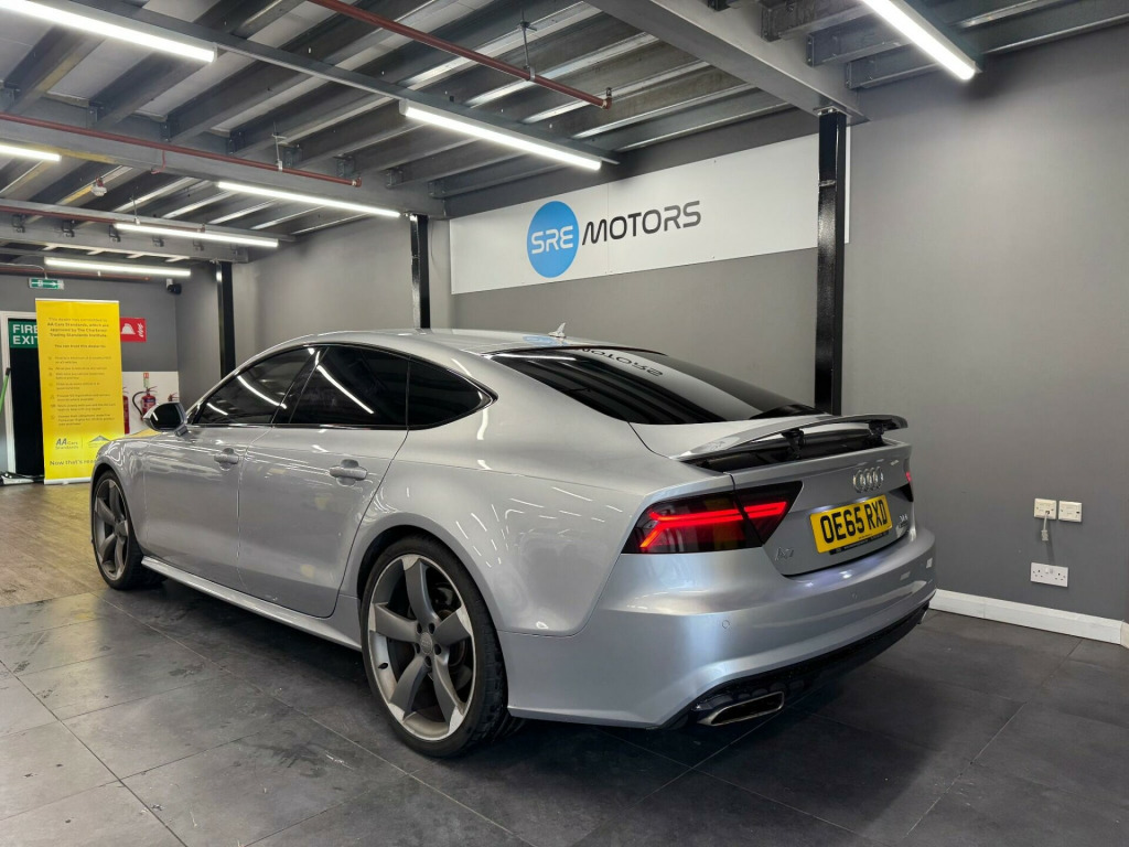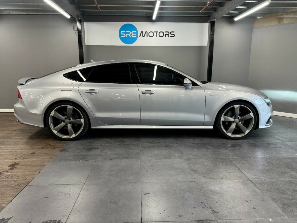 Audi A7 3.0 diesel finished in metallic silver with 71,845 miles, is now available at SRE Motors. The vehicle is in great condition and has been well maintained by the previous owner. The vehicle has had a full vehicle inspection, it will also come with a 9 month minimum MOT, 3 months warranty and 12 months breakdown cover.This 2015 Audi A7 TDI V6 Black Edition presents a compelling proposition with its remarkably low mileage of just 71845 miles for its age, complemented by a full service history. This sophisticated four wheel drive model boasts a powerful 3.0L diesel engine, meeting Euro 6 emissions standards. The Black Edition trim enhances its already striking presence, and you can drive away with confidence knowing it comes with a 12 month MOT and a 3 month warranty.Experience effortless convenience with features like the Advanced Key, offering hands free boot opening and keyless entry. The Technology Package, including a Head Up Display, and the Parking Pack with rear camera assistance, elevate your driving experience. Inside, the leather armrests on the doors add a touch of luxury, while the Pre Sense Basic system provides an added layer of safety. With an impressive 0-62mph acceleration time of just 5.7 seconds and generous boot space, this Audi A7 offers a blend of performance, practicality, and advanced technology that sets it apart.Contact us today to arrange a viewing, arrange finance, reserve this vehicle or for anymore information. 12V Power Socket, 12V Power Socket - Rear, 21in Alloy Wheels - 5-Arm Rotor Design Matt Titanium Finish, ABS - Anti-Lock Braking System, AMI - Audi Music Interface, AUX-IN Socket, Acoustic Glazing, Acoustic and Visual Parking System - Front, Acoustic and Visual Parking System - Rear, Active Door Reflectors, Airbags - Curtain, Airbags - Driver, Airbags - Front Passenger, Airbags - Front Side, Amplifier - 12-Channel, Anti Theft Locking Wheel Bolts, Anti-Theft Alarm, Audi Drive Select, Audi Hill Hold Assist, Audi Matrix LED Headlights, Audi Parking System Plus, Audi Sound System, Audio Output - 600 Watts, AudioPilot for Noise Compensating Volume Adjustment, Auto-Dimming Rear-View Mirror, Automatic Wipers with Rain Sensor, B-Pillar Trim in High-Gloss Black Finish, BOSE Surround Sound System, Black Styling Package, Cables x2 - MP3 Connection Including iPod, Car Jack, Climate Control - Electronic Deluxe 4-Zone, Cloth Headlining in Black, Cruise Control, DAB Digital Radio, DIS - Drivers Information System with Display Screen Colour - 7in, Display Screen Colour 6.5in for MMI, Door Mirrors - Automatic Kerb View Dipping Function When Reversing, Door Mirrors - Electrically Adjustable and Heated, Door Mirrors - Memory Function, Door Sill Trims with S Line Logo, Door Trim Inserts in Selected Leather, Dynamic LED Indicators - Front, Dynamic Rear Indicators, Dynamic Route Guidance, ESP - Electronic Stability Programme, Efficiency Program in the Drivers Information System - DIS, Electric Windows - Front and Rear, Electrically Adjustable 4-Way Lumbar Support, Electrically Adjustable Front Seats with Memory Function for Drivers Side, Front Centre Armrest, Front Passenger Airbag Deactivation Switch, Front and Rear Floor Mats, Front and Rear Reading Lights, Gear Knob - Perforated Leather Black, Head Restraints - Leather, Head Restraints - Rear x3, Headlights - Automatic Activation, Headlights - Automatic Adjustment, Headlights Washers, Heat Insulating Glass - Windscreen, Heated Front Seats, High Gloss Package, ISOFIX Child Seat Mounting for Front Passenger, ISOFIX Child Seat Preparation for Rear Seats with Top Tether, Immobiliser, Inlays - Piano Finish - Black, Keyless Go, LED Daytime Running Lights, LED Tail Lights, MMI Navigation - SD Card Based, MMI Radio Plus, MP3 - WMA and AAC Compatible CD Player, Mobile Telephone Preparation - Low with Bluetooth and Voice Control, Non-Smoking Package, Number Plate Holder in Matt Black, Outside Temperature Display, Platinum Grey Front Spoiler Lip and Diffuser Insert, Pollen Filter, Power Operated Tailgate, Power Steering - Electromechanical/Servotronic Speed Sensitive, Privacy Glass, Radiator Grille Frame and Struts - High Gloss Black, Remote Boot Release, Remote Central Locking, Rest Recommendation System, S Line Suspension, SDHC Card Reader x2, Seats - Drivers Memory Function, Seats - Extendable Thigh Support, Seats - Front Electric Adjustment, Seats - Front Electric Height Adjustment, Seats - Split Folding Rear - 60-40 or All, Side Ventilation Grille - S Line, Sound Insulating Glass - Windscreen, Space Saver Spare Wheel, Speakers x14, Spoiler - Retractable, Start-Stop Button, Steering Wheel - 3-Spoke Leather - Multi-function - Sports - Shift Paddles, Steering Wheel - Gear Shift Paddles, Steering Wheel - Height and Reach Adjustable, Steering Wheel - Multi-function, Subwoofer in Spare Wheel Well, TP Memo - Automatically Saves Traffic News, Tool Kit, Trip Computer, Tyre Pressure Monitoring System, Voice Control - Navigation, Voice Control - Telephone, Warning Triangle, Window Capping and Side Profile Roof Trim in High-Gloss Black, Window Surrounds - Aluminium, Parking Pack, Advanced Key - with Hands-Free Boot Opening System, Pre-Sense Basic, Rear Side Airbags, Speed Limit Display, Armrest Doors - Leather, Perforated Pearl Nappa Leather -Alcantara - S Line Logo - Sport Seats - Black, Technology Package, Quattro Sports Differential. Full service history