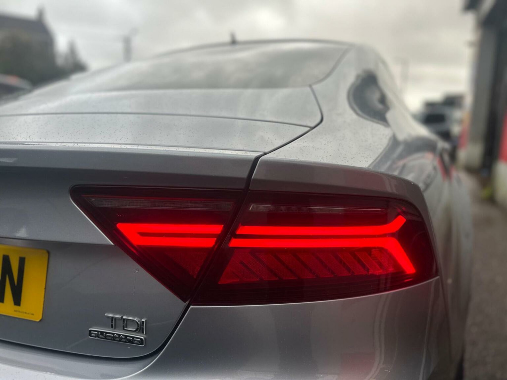 Lovely clean example, drives really nice great condtion throughout. Very good history and maintance receipts! 2 keys, 4 owners. This 2015 Audi A7 TDI V6 Black Edition presents a compelling proposition with its remarkably low mileage of just 75,000 miles for its age, coupled with a clear vehicle history check. This sophisticated model boasts a powerful 3.0 litre diesel engine, delivering impressive performance through its four wheel drive system and meeting Euro 6 emissions standards. The Black Edition trim enhances its striking appearance, while the inclusion of the Technology Package, featuring a Head Up Display, and the convenience of a drivers seat memory function, underscore its premium feel. Further enhancing this Audi A7 are its Audi Matrix LED headlights, providing exceptional visibility, and the Acoustic and Visual Parking System with rear sensors, making manoeuvring effortless. The spacious boot offers ample practicality for everyday needs and longer journeys. Its acceleration from 0 to 62mph in just 5.7 seconds highlights its dynamic capabilities, setting it apart from many other vehicles in its class. The elegant Inlays in Aluminium Beaufort Black add a refined touch to the interior, completing a package that blends performance, technology, and style.