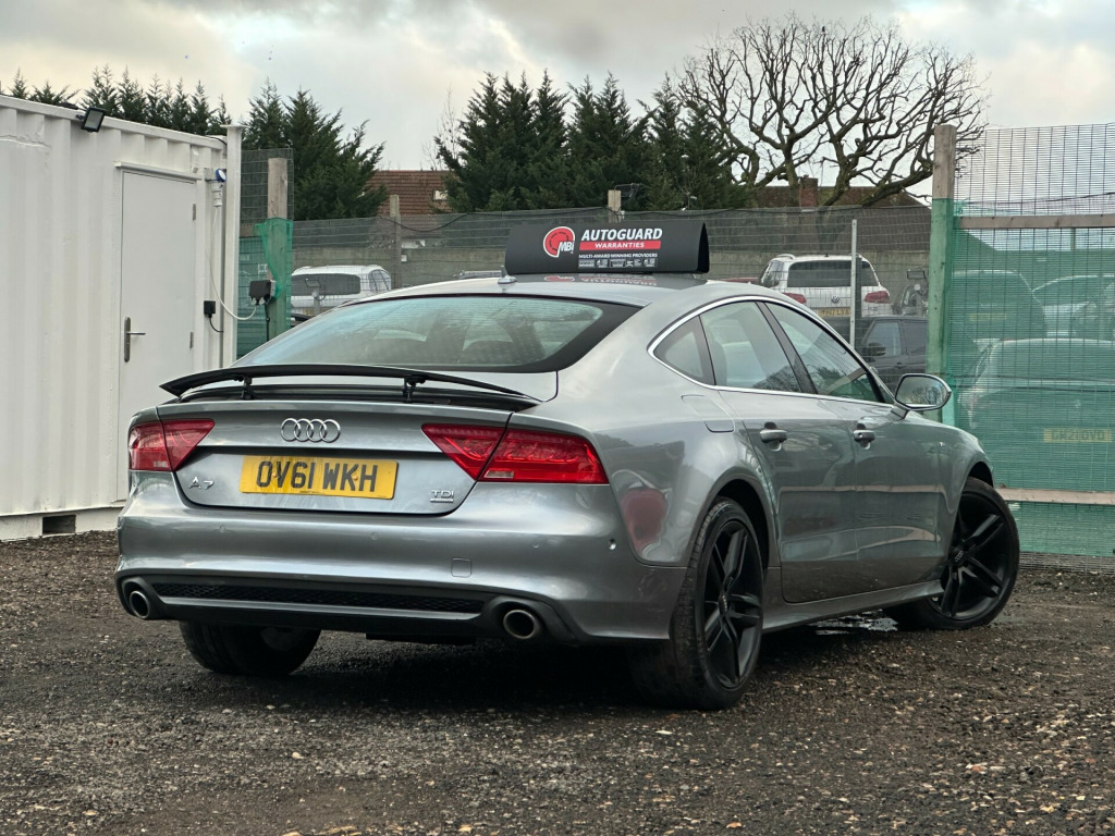 Audi A7 3.0 TDI V6 S line Sportback S Tronic quattro - FULL SERVICE HISTORY - 7 MONTHS WARRANTY - TECH-LOADED - PREMIUM DIESEL COUPEAn exceptional luxury sportback that blends performance, comfort, and refinement, powered by a strong 3.0 V6 TDI engine and paired with S Tronic automatic transmission and quattro all-wheel drive. This A7 S line example stands out for its sleek coupe styling, powerful presence and high-end finish, backed by full service history and an impressive spec list.Comes with the following:• 7 Months Warranty• 3.0 TDI V6 Diesel • New MOT• Timing Chain and Water Pump Already Replaced (Invoices available)• S Tronic Automatic Gearbox• QUATTRO All-Wheel Drive System• Full Service History• Night Vision Pack• Apple CarPlay & Android Auto• Retractable Rear Spoiler• Auto Hill-Hold Assist• Touchpad Controller for MMI• Navigation System• Front & Rear Parking Sensors• Heated Leather S line Sports Seats• Dual-Zone Climate Control• Electric Memory Front Seats• Electric Folding Mirrors• Keyless Start• LED Headlights with Daytime Running Lights• DAB Radio, CD/DVD, Bluetooth & USB• Multi-Function Leather Steering Wheel with Paddle Shifters• Electric Tailgate• Ambient Interior Lighting• Auto Lights & Wipers• Cruise Control• ISOFIX• 2 Keys• HPI Clear• Excellent Condition Inside & Out• Space Saver Spare WheelWarranty AvailablePart-Exchange WelcomeViewings & Test Drives AvailableNationwide Delivery AvailableContact Us Today to Book Your ViewingVehicle registered: 03/01/2012Buying with MP Motors London LtdMP Motors London LTD is a trusted used car dealership based in North West London, known for offering quality checked vehicles at fair prices. We focus on reliable cars that suit new drivers, families and everyday commuters, making the buying process simple, clear and stress free.Every car is inspected, road tested and HPI cleared before sale, giving you full peace of mind. We offer flexible warranty options, nationwide delivery, part exchange and honest guidance throughout the process.Our aim is to give every customer a smooth experience from start to finish, with friendly support and zero pressure. Whether you are buying your first car or upgrading your current one, MP Motors London LTD is here to help you find a dependable vehicle you can trust.