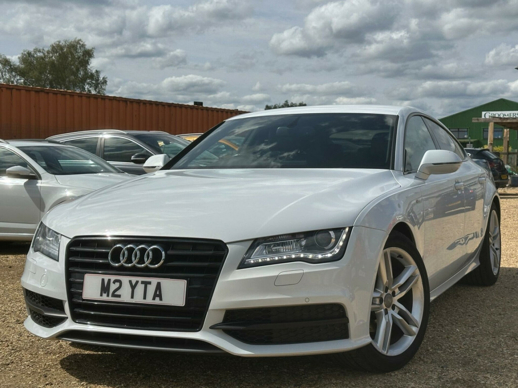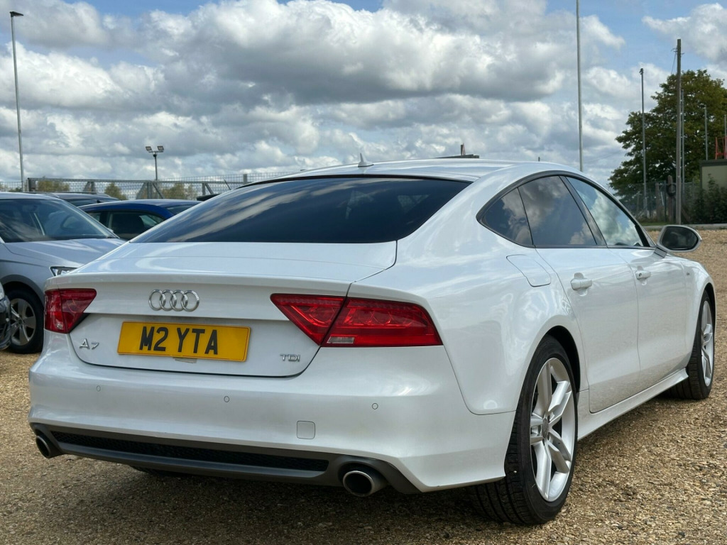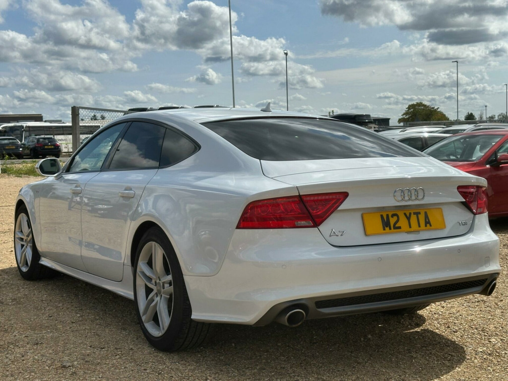 A good example of a Beautiful Audi A7 comes with a long MOT, Navigation System, full black leather, Parking Sensors, Climate controll, 19'' inch Alloys , Privacy Glass , Part service history, latest service been done recently , Good condition inside and outside, Well looked after example, 1 Key, Amazing drive, Hpi Clear (certificate present),***3 Months free warranty and 12 Months Free AA breakdown cover included in price. Viewings and test drives are welcome 7 days a week. Please visit our website for similar cars. For any questions please feel free to call our friendly sales team on 01635226263 or what's app on 07517663671This 2014 Audi A7 TDI V6 S line presents an exceptional opportunity with its remarkably low mileage of just 76,550 miles for its age. As a TDI V6 S line model, it boasts a powerful 3.0 litre diesel engine, delivering a compelling blend of performance and efficiency. The S line trim enhances its appeal with a sporty aesthetic and a host of desirable features. These include advanced Bi Xenon headlights for superior visibility, electrically adjustable front seats with a memory function for the driver, and a comprehensive parking system with sensors both at the front and rear for confident manoeuvring. Inside, you'll also find automatic, electronically controlled air conditioning, ensuring a comfortable cabin environment for all occupants.The Audi A7 TDI V6 S line offers a truly engaging driving experience, highlighted by its brisk acceleration of 0 to 62 miles per hour in just 7.4 seconds, demonstrating its dynamic capabilities. This performance is complemented by a generous boot space, making it a practical choice for everyday use and longer journeys alike. These attributes, combined with its sophisticated technology and the low mileage, position this Audi A7 as a standout option compared to other vehicles in its class., di parking system advanced with reversing camera, bang and olufsen advanced sound system, advanced key - with hands-free boot opening system, headlights - adaptive with high beam assist, black styling package, 12v power socket, 12v power socket - rear, 19in alloy wheels - 5-twin-spoke design, abs - anti-lock braking system, ami - audi music interface, aux-in socket, acoustic and visual parking system - rear, active door reflectors, air conditioning - automatic/electronically controlled, airbags - curtain, airbags - driver, airbags - front passenger, airbags - front side, ambient lighting - centre console, amplifier - 180 watt, amplifier - 6 channel, anti theft locking wheel bolts, anti-theft alarm, audi drive select, audi hill hold assist, audi parking system plus, audi sound system, auto-dimming rear-view mirror, automatic wipers with rain sensor, b-pillar trim in high-gloss black finish, bi-xenon headlights, cables x2 - mp3 connection including ipod, car jack, cloth headlining in black, cruise control, dab digital radio, dis - drivers information system with display screen colour - 7in, display screen colour 6.5in for mmi, door mirrors - automatic kerb view dipping function when reversing, door mirrors - electrically adjustable and heated, door sill trims with aluminium inlay, door sill trims with s line logo, door trim inserts in selected leather, dynamic route guidance, esp - electronic stability programme, efficiency program in the drivers information system - dis, electric windows - front and rear, electrically adjustable 4-way lumbar support, electrically adjustable front seats with memory function for drivers side, entrance lights, front centre armrest - selected leather, front passenger airbag deactivation switch, front and rear floor mats, front and rear reading lights, gear knob - perforated leather black, head restraints - leather, head restraints - rear x3, headlights - automatic activation, headlights - automatic adjustment, headlights washers, headlining - black, heated front seats, high gloss package, isofix child seat mounting for front passenger, isofix child seat preparation for rear seats with top tether, immobiliser, inlays - matt brushed aluminium, keyless go, led daytime running lights, led lighting for front footwell/inside door handles/vanity mirror lights/centre console, led tail lights, lighting - door handles led for easy entry in the dark, lighting - under the door handles, lighting package, mmi navigation - sd card based, mmi radio plus, mp3 - wma and aac compatible cd player, mobile telephone preparation - low with bluetooth and voice control, non-smoking package, outside temperature display, parking sensors - front, platinum grey front spoiler lip and diffuser insert, pollen filter, power operated tailgate, power steering - electromechanical/servotronic speed sensitive, remote boot release, remote central locking, rest recommendation system, s line badges on wings, sdhc card reader x2, seats - drivers memory function, seats - front electric adjustment, seats - front electric height adjustment, seats - front sports - s line embossed, side ventilation grille - s line, space saver spare wheel, speakers x10, speakers x10 including subwoofer, split-folding rear seats, spoiler - retractable, sport suspension, start-stop button, steering wheel - 3-spoke leather - multi-function - sports - shift paddles, steering wheel - gear shift paddles, steering wheel - height and reach adjustable, steering wheel - multi-function, tp memo - automatically saves traffic news, tool kit, trip computer, tyre pressure monitoring system, voice control - navigation, voice control - telephone, warning triangle, window surrounds - aluminium