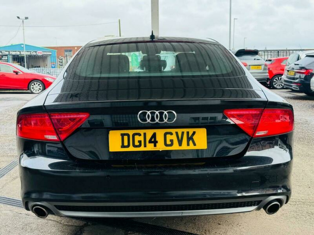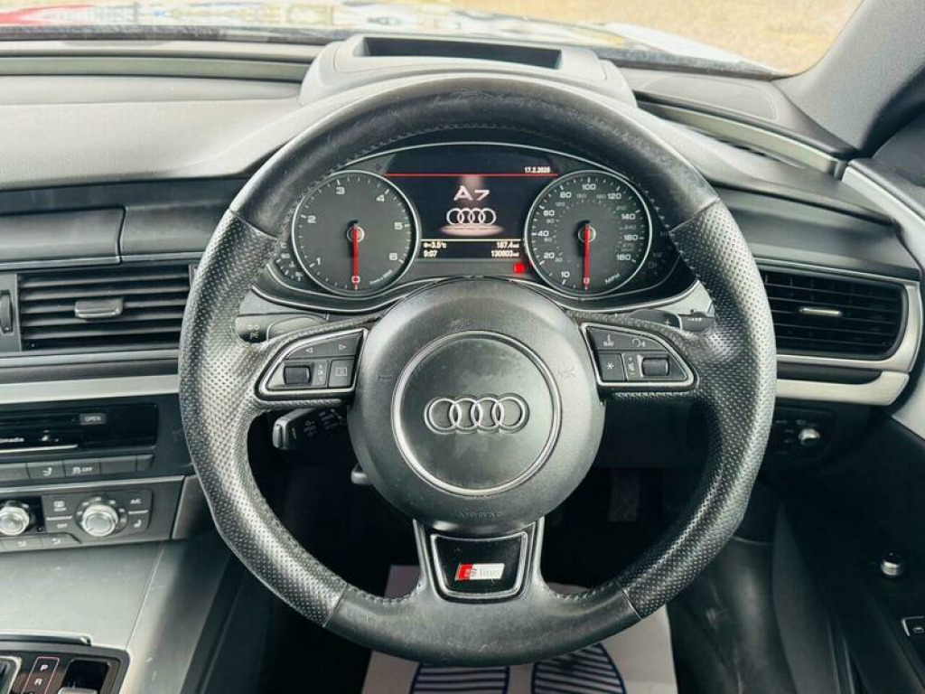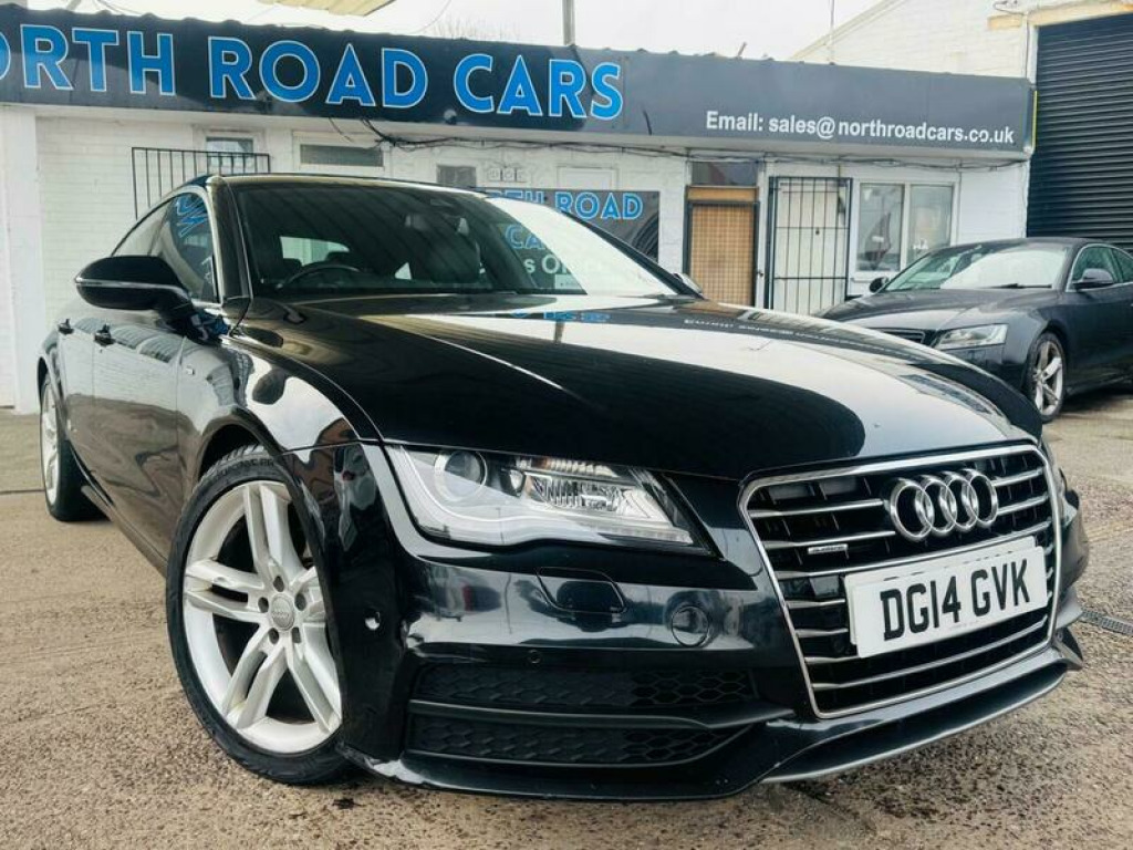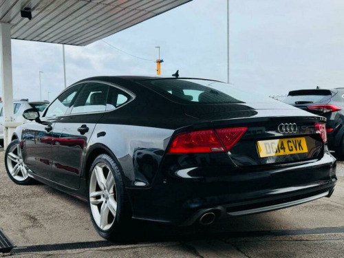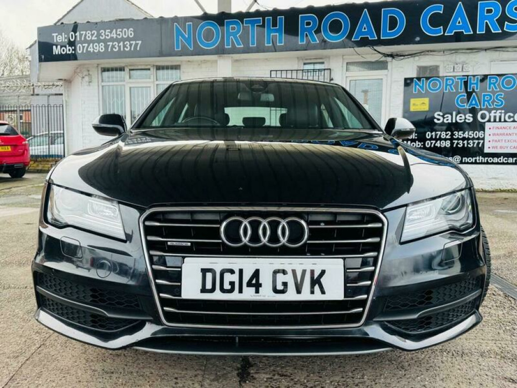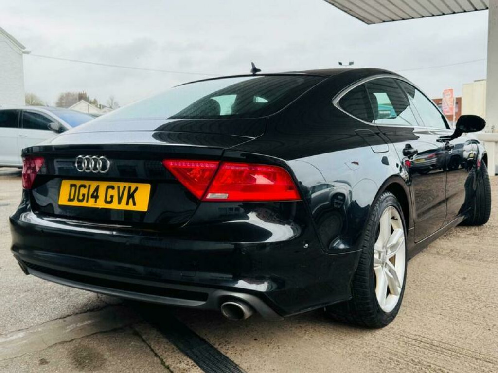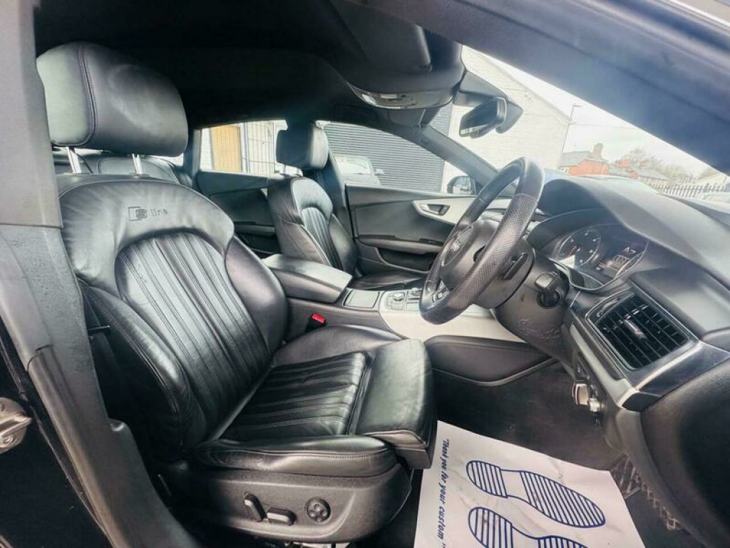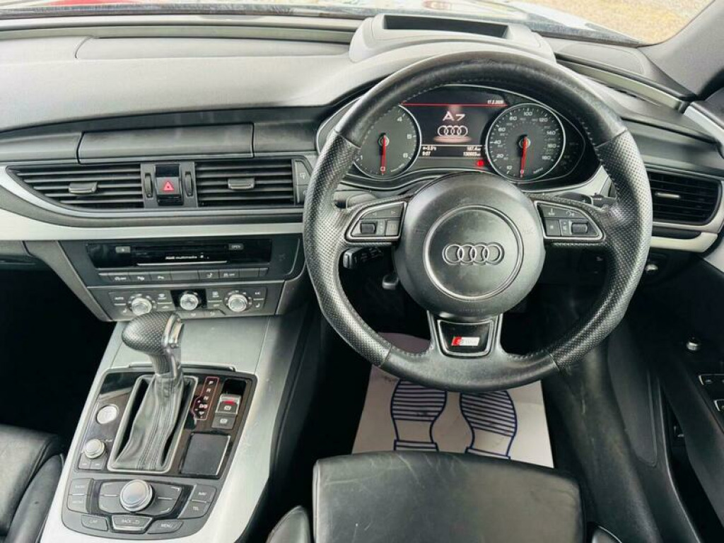Presenting this Audi A7 3.0 TDI V6 S line Sportback S Tronic quattro Euro 5 (s/s) 5dr with HEADS UP DISPLAY, FRONT AND REAR PARKING SENSORS, HEATED FRONT SEATS, CRUISE CONTROL, XENONS, MEMORY/ELECTRIC FRONT SEATS. This vehicle will be supplied with a FRESH MOT AND SERVICE AT THE CURRENT MILEAGE. BRILLIANT FUEL ECONOMY AND PERFORMANCE. Boasting an MOT valid until February 2027 and a clear vehicle history check, this 2014 Audi A7 TDI V6 S line offers peace of mind. Powered by a robust 3.0L Diesel engine and featuring Audi's renowned Four Wheel Drive system, this S line trim model combines performance with practicality. Inside, you'll find electrically adjustable front seats with a driver's memory function, heated front seats for added comfort, and automatic headlights for convenience. Parking is made easier with the acoustic and visual parking system for the rear. This Audi A7 stands out with its impressive acceleration, reaching 0-62mph in just 7.2 seconds, demonstrating its dynamic capability. The large boot space ensures you have ample room for luggage or shopping, making it a versatile choice. Furthermore, its position within a low insurance group indicates that running costs are kept manageable, offering excellent value compared to similar vehicles. A 3 month warranty is also included for your assurance. 12V Power Socket, ABS, Alarm, Automatic Rearview Mirror Dimming, Central Locking, Cruise Control, Daytime Running Lights, ESP, Electric Heated Seats, Electric Windows, Engine Immobiliser, Folding Rear Seats, Front Airbags, Heated Door Mirrors, Hill-Start Assist, LED Lights, Parking Assistance, Radio, Rain Sensor, Satellite Navigation, Side Impact Airbags, Spare Wheel, Sports Suspension, Start Stop System, Xenon Headlights