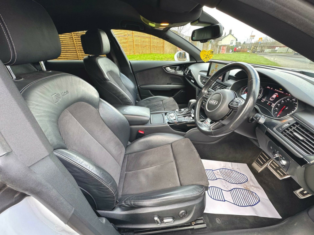 This 2017 Audi A7 TDI V6 S line presents a compelling proposition with its remarkably low mileage for its age, having covered just 78,844 miles. This particular example boasts a clear vehicle history check, offering peace of mind to its next owner. Under the bonnet lies a powerful 3.0 litre diesel engine paired with Audi's renowned four wheel drive system, ensuring confident performance in all conditions. As a Euro 6 compliant vehicle, it meets stringent emission standards. The S line trim level enhances its sporty appeal, and you'll appreciate the convenience of electrically adjustable front seats with a memory function for the driver, alongside acoustic and visual parking systems for both the front and rear, making manoeuvring effortless. Automatic activation and Audi Matrix LED headlights provide excellent visibility.Experience the impressive acceleration of this A7, capable of reaching 0-60mph in a swift 6.6 seconds, a testament to its potent engine and drivetrain. This performance, combined with its substantial boot space, makes it a practical yet exhilarating choice for everyday driving and longer journeys alike. The thoughtful inclusion of features such as the parking assistance systems and automatic headlights demonstrates how this Audi A7 offers a superior driving experience compared to many other vehicles in its class, blending sophisticated technology with everyday usability. v power socket, 12v power socket - rear, 20in alloy wheels - 5-twin-spoke design, abs - anti-lock braking system, ami - audi music interface, aux-in socket, acoustic glazing, acoustic and visual parking system - front, acoustic and visual parking system - rear, active door reflectors, airbags - curtain, airbags - driver, airbags - front passenger, airbags - front side, amplifier - 180 watt, amplifier - 6 channel, anti theft locking wheel bolts, anti-theft alarm, audi drive select, audi hill hold assist, audi matrix led headlights, audi parking system plus, audi sound system, auto-dimming rear-view mirror, automatic wipers with rain sensor, b-pillar trim in high-gloss black finish, bumpers - s line front, cables x2 - mp3 connection including ipod, car jack, climate control - electronic deluxe 4-zone, cloth headlining in black, cruise control, dab digital radio, dis - drivers information system with display screen colour - 7in, diffuser - rear - platinum grey insert - s line design, display screen colour 6.5in for mmi, door mirrors - automatic kerb view dipping function when reversing, door mirrors - electrically adjustable and heated, door mirrors - memory function, door sill trims with s line logo, door trim inserts - alcantara, dynamic led indicators - front, dynamic rear indicators, dynamic route guidance, esp - electronic stability programme, efficiency program in the drivers information system - dis, electric windows - front and rear, electrically adjustable 4-way lumbar support, electrically adjustable front seats with memory function for drivers side, front centre armrest, front passenger airbag deactivation switch, front and rear floor mats, front and rear reading lights, gear knob - perforated leather black, head restraints - leather, head restraints - rear x3, headlights - automatic activation, headlights - automatic adjustment, headlights washers, heated front seats, high gloss package, isofix child seat mounting for front passenger, isofix child seat preparation for rear seats with top tether, immobiliser, inlays - matt brushed aluminium, keyless go, led daytime running lights, led tail lights, mmi navigation - sd card based, mmi radio plus, mp3 - wma and aac compatible cd player, mobile telephone preparation - low with bluetooth and voice control, non-smoking package, outside temperature display, platinum grey front spoiler lip and diffuser insert, pollen filter, power operated tailgate, power steering - electromechanical/servotronic speed sensitive, remote boot release, remote central locking, rest recommendation system, s line badge on the steering wheel, s line badges on wings, s line side skirts, sdhc card reader x2, seats - drivers memory function, seats - extendable thigh support, seats - front electric adjustment, seats - front electric height adjustment, seats - front sports - s line embossed, seats - split folding rear - 60-40 or all, side ventilation grille - s line, space saver spare wheel, speakers x10 including subwoofer, spoiler - retractable, sport suspension, start-stop button, steering wheel - 3-spoke leather - multi-function - sports - shift paddles, steering wheel - gear shift paddles, steering wheel - height and reach adjustable, steering wheel - multi-function, tp memo - automatically saves traffic news, tool kit, trip computer, tyre pressure monitoring system, voice control - navigation, voice control - telephone, warning triangle, window surrounds - aluminium, bose surround sound system, 20in alloy wheels - 5-spoke blade design, black styling package, privacy glass, heads up display, bose