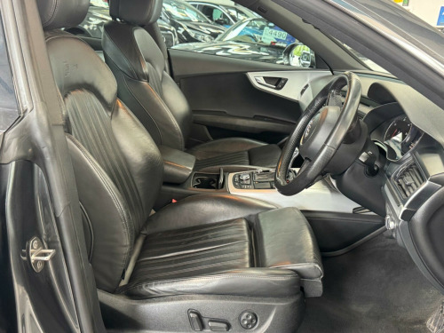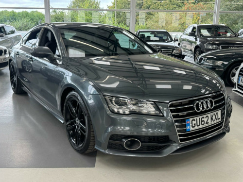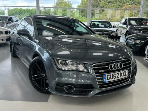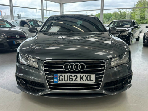 This Audi A7 TDI V6 S line from 2012 boasts a full service history and has had only two owners, offering excellent provenance. This striking vehicle features a powerful 3.0 litre diesel engine paired with a four wheel drive system, ensuring confident performance in all conditions. The S line trim enhances its sporty appeal, while the Bi-Xenon Plus headlights provide superior illumination. Inside, you'll find automatic climate control for comfort, and the convenience of front and rear parking sensors to aid manoeuvrability. The electrically adjustable front seats include a memory function for the driver, ensuring a personalised driving position every time.The impressive acceleration of this Audi A7, achieving 0-62mph in just 6.3 seconds, demonstrates its dynamic capabilities, setting it apart from many similar vehicles. This performance is complemented by a large boot space, offering ample practicality for luggage or shopping. The combination of its sophisticated features, strong performance credentials, and careful ownership history makes this Audi A7 a compelling choice. v power socket, 19in alloy wheels - 5-twin-spoke design, 6.5in display screen, abs - anti-lock braking system, ami - audi music interface, aux-in socket, active door reflectors, air conditioning - automatic/electronically controlled, airbags - curtain, airbags - driver, airbags - front passenger, airbags - front side, amplifier - 180 watt, amplifier - 6 channel, anti theft locking wheel bolts, anti-theft alarm, audi drive select, audi hill hold assist, audi parking system plus, audi sound system, auto-dimming rear-view mirror, automatic wipers with rain sensor, b-pillar trim in high-gloss black finish, car jack, cloth headlining in black, colour drivers information system - dis, cruise control, dab digital radio, display screen colour tft 7in high resolution, door mirrors - automatic kerb view dipping function when reversing, door mirrors - electrically adjustable and heated, door sill trims with s line logo, door sills with aluminium inlays, esp - electronic stability programme, efficiency program in the drivers information system - dis, electric windows - front and rear, electrically adjustable 4-way lumbar support, electrically adjustable front seats with memory function for drivers side, front centre armrest, front and rear floor mats, head restraints - rear x3, headlight washers, headlights - automatic adjustment, headlights - bi-xenon plus, headlining - black, heated front seats, high gloss package, isofix child seat mounting for front passenger with airbag deactivation and outer rear seats, isofix child seat preparation for passenger seat, inlays - matt brushed aluminium, keyless go, led daytime running lights, led tail lights, led reading lights, light package, lighting package, mmi navigation - sd card based, mmi radio plus, mobile telephone preparation - low with bluetooth and voice control, parking sensors - front, platinum grey front spoiler lip and diffuser insert, power operated tailgate, power steering - electromechanical/servotronic speed sensitive, rear parking sensors, remote central locking, s line badges on wings, sdhc card reader x2, side ventilation grille - s line, space saver spare wheel, speakers x10 including subwoofer, split-folding rear seats, spoiler - retractable, sport suspension, steering wheel - 3-spoke leather - multi-function - sports - shift paddles, steering wheel - height and reach adjustable, steering wheel - multi-function, tp memo - automatically saves traffic news, tool kit, tyre pressure monitoring system, voice control - navigation, warning triangle, window surrounds - aluminium