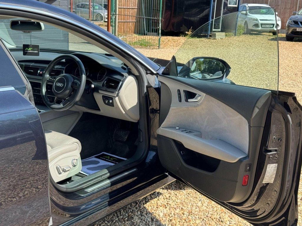 Here at AQS Car Specialist we take pride in being one of the few highly rated dealers for our customer service from Autotrader working closely together so we can go the extra mile to make sure you are getting the best service out there. All vehicles undergo a full visual and Mechanical health inspection, driven and tested. All essential work carried out with no expense spared. We offer an extended nation wide warranty with the option to extend up to 36 months, giving our customers full peace of mind and security when purchasing a car from AQS car specialists. Any inspection welcome, Test drive welcome, Part exchanges welcome. All dealer facilities available on site. Here at AQS Car Specialist we are delighted to offer this great example of an Audi A7 3.0TDi V6 Executive SportBack Quattro. Finished in Black with a contrasting full Grey leather interior alongside 19 Inch alloys. Recently serviced and comes with a long MOT. In stunning condition both inside and out, drives smooth and needs for nothing ! These Audi A7s are renown for their comfort, smooth drive, having great performance while still being reliable and economical. This particular example benefits form being fitted with some great extras which include, Sat Nav, Cruise Control, 4 Zone Climate Controlled Air Conditioning, USB Input, DAB radio, Heads Up Display, Auto Audi LED Matrix Headlights with High Beam Assist, Reverse Camera, Front and Rear Parking Sensors with Visual Guidance, Electrically Adjustable and Heated Front Seats with Drivers Memory Function, MultiFunctional Leather Steering Wheel with Paddle Shifters, Audi Drive Select, Hill Hold Assist, Electrically Adjustable and Heated PowerFolding Side Mirrors, Voice Control, Tyre Pressure Monitoring System, Keyless Go, Electrically Operated Tailgate and the super useful Rain Sensing Wipers amongst all the usual Audi refinements you expect.