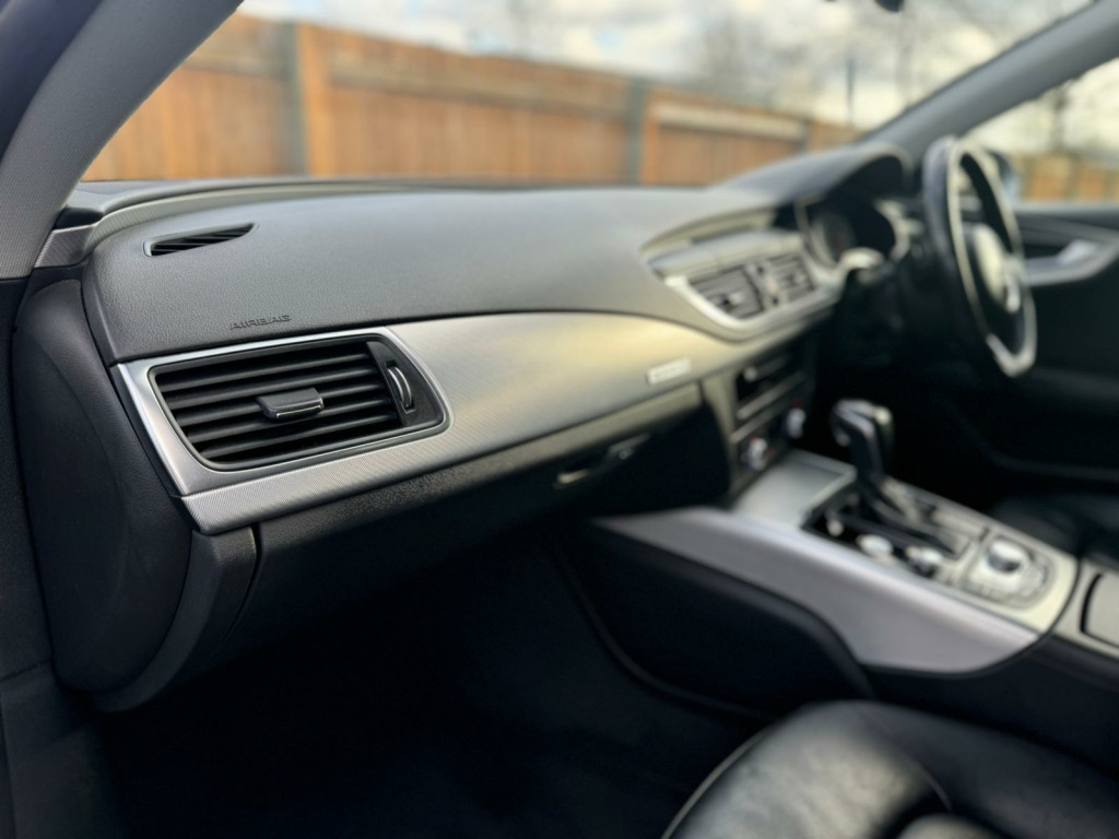 This 2016 Audi A7 TDI V6 SE Executive offers a blend of sophisticated design and powerful performance. Featuring a 3.0 litre diesel engine and four wheel drive, this Euro 6 compliant model ensures an efficient and capable driving experience. The SE Executive trim level comes equipped with desirable features such as Electronic Deluxe 4-Zone Climate Control for personalised comfort, and All Weather LED Headlights for enhanced visibility. Parking is made effortless with Acoustic and Visual Parking Systems for both the front and rear, complemented by front and rear parking sensors. Additionally, the driver will appreciate the convenience of Seats with a Memory Function.The Audi A7 TDI V6 SE Executive excels with its impressive acceleration, reaching 0-60mph in just 6.6 seconds, demonstrating its dynamic capabilities. This performance, combined with its substantial boot space, makes it a practical choice for various needs. The inclusion of features like the multi-zone climate control and advanced parking assistance systems highlight how this vehicle offers a superior level of comfort and convenience compared to other similar models on the market. v power socket, 12v power socket - rear, 19in alloy wheels - 5-arm y design, abs - anti-lock braking system, ami - audi music interface, aux-in socket, acoustic glazing, acoustic and visual parking system - front, acoustic and visual parking system - rear, active door reflectors, airbags - curtain, airbags - driver, airbags - front passenger, airbags - front side, all weather led headlights, amplifier - 180 watt, amplifier - 6 channel, anti theft locking wheel bolts, anti-theft alarm, audi drive select, audi hill hold assist, audi parking system plus, audi sound system, auto-dimming rear-view mirror, automatic wipers with rain sensor, b-pillar trim in high-gloss black finish, cables x2 - mp3 connection including ipod, car jack, climate control - electronic deluxe 4-zone, cruise control, dab digital radio, dis - drivers information system with display screen colour - 7in, display screen colour 6.5in for mmi, door mirrors - automatic kerb view dipping function when reversing, door mirrors - electrically adjustable and heated, door mirrors - memory function, door sill trims with aluminium inlay, dynamic rear indicators, dynamic route guidance, dynamic suspension, esp - electronic stability programme, efficiency program in the drivers information system - dis, electric windows - front and rear, electrically adjustable 4-way lumbar support, electrically adjustable front seats with memory function for drivers side, front centre armrest, front passenger airbag deactivation switch, front and rear floor mats, front and rear reading lights, head restraints - leather, head restraints - rear x3, headlights - automatic activation, headlights - automatic adjustment, headlights washers, heated front seats, high gloss package, isofix child seat mounting for front passenger, isofix child seat preparation for rear seats with top tether, immobiliser, inlays - aluminium delta, keyless go, led daytime running lights, led tail lights, leather door trim inserts, mmi navigation - sd card based, mmi radio plus, mp3 - wma and aac compatible cd player, mobile telephone preparation - low with bluetooth and voice control, non-smoking package, outside temperature display, pollen filter, power operated tailgate, power steering - electromechanical/servotronic speed sensitive, remote boot release, remote central locking, rest recommendation system, sdhc card reader x2, seats - drivers memory function, seats - front electric adjustment, seats - front electric height adjustment, seats - split folding rear - 60-40 or all, space saver spare wheel, speakers x10 including subwoofer, spoiler - retractable, start-stop button, steering wheel - 3-spoke leather - multi-function - sports - shift paddles, steering wheel - gear shift paddles, steering wheel - height and reach adjustable, steering wheel - multi-function, tp memo - automatically saves traffic news, tool kit, trip computer, tyre pressure monitoring system, voice control - navigation, voice control - telephone, warning triangle, window surrounds - aluminium