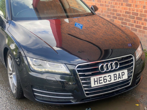 Service HistoryInvoice/ReceiptNumber of services3 (0 main dealer)Last Service06/09/2023SERVICE INTERVALS AT 61K, 67K, 74KDVSA mileage49k (16/03/2018), 54k (12/03/2019), 64k (12/03/2021), 69k (10/08/2022), 74k (11/10/2023), 81k (27/11/2024)This 2014 Audi A7 TDI V6 SE offers exceptional value with its remarkably low mileage of just 86,081 miles for its age. Powered by a 3.0 litre diesel engine and featuring Audi's renowned four wheel drive system, this SE trim model combines performance with efficiency. You'll appreciate the convenience of automatic activation Bi Xenon headlights, front parking sensors for easier manoeuvring, and electrically adjustable front seats with a memory function for the driver. For added comfort, the front seats are also heated, making every journey a pleasure.The Audi A7 TDI V6 SE stands out with its impressive acceleration, reaching 0 to 62 miles per hour in a brisk 7.2 seconds, demonstrating its dynamic capability. This vehicle also boasts a generous boot space, providing ample room for luggage or shopping, which is a significant advantage over many similar cars. Furthermore, its placement in a low insurance group makes it an economical choice for many drivers, indicating lower running costs compared to other vehicles in its class. v power socket, 12v power socket - rear, 18in alloy wheels - 7-arm dynamic design, abs - anti-lock braking system, ami - audi music interface, aux-in socket, acoustic and visual parking system - rear, active door reflectors, air conditioning - automatic/electronically controlled, airbags - curtain, airbags - driver, airbags - front passenger, airbags - front side, ambient lighting - centre console, amplifier - 180 watt, amplifier - 6 channel, anti theft locking wheel bolts, anti-theft alarm, audi drive select, audi hill hold assist, audi parking system plus, audi sound system, auto-dimming rear-view mirror, automatic wipers with rain sensor, b-pillar trim in high-gloss black finish, bi-xenon headlights, cables x2 - mp3 connection including ipod, car jack, cruise control, dab digital radio, dis - drivers information system with display screen colour - 7in, display screen colour 6.5in for mmi, door mirrors - automatic kerb view dipping function when reversing, door mirrors - electrically adjustable and heated, door sill trims with aluminium inlay, door trim inserts in selected leather, dynamic route guidance, esp - electronic stability programme, efficiency program in the drivers information system - dis, electric windows - front and rear, electrically adjustable 4-way lumbar support, electrically adjustable front seats with memory function for drivers side, entrance lights, front centre armrest - selected leather, front passenger airbag deactivation switch, front and rear floor mats, front and rear reading lights, gear knob - perforated leather black, head restraints - leather, head restraints - rear x3, headlights - automatic activation, headlights - automatic adjustment, headlights washers, heated front seats, high gloss package, isofix child seat mounting for front passenger, isofix child seat preparation for rear seats with top tether, immobiliser, inlays - matt brushed aluminium, keyless go, led daytime running lights, led lighting for front footwell/inside door handles/vanity mirror lights/centre console, led tail lights, lighting - door handles led for easy entry in the dark, lighting - under the door handles, lighting package, mmi navigation - sd card based, mmi radio plus, mp3 - wma and aac compatible cd player, mobile telephone preparation - low with bluetooth and voice control, non-smoking package, outside temperature display, parking sensors - front, pollen filter, power operated tailgate, power steering - electromechanical/servotronic speed sensitive, remote boot release, remote central locking, rest recommendation system, sdhc card reader x2, seats - drivers memory function, seats - front electric adjustment, seats - front electric height adjustment, space saver spare wheel, speakers x10, speakers x10 including subwoofer, split-folding rear seats, spoiler - retractable, start-stop button, steering wheel - 4-spoke leather trimmed, steering wheel - gear shift paddles, steering wheel - height and reach adjustable, steering wheel - multi-function, tp memo - automatically saves traffic news, tool kit, trip computer, tyre pressure monitoring system, voice control - navigation, voice control - telephone, warning triangle, window surrounds - aluminium