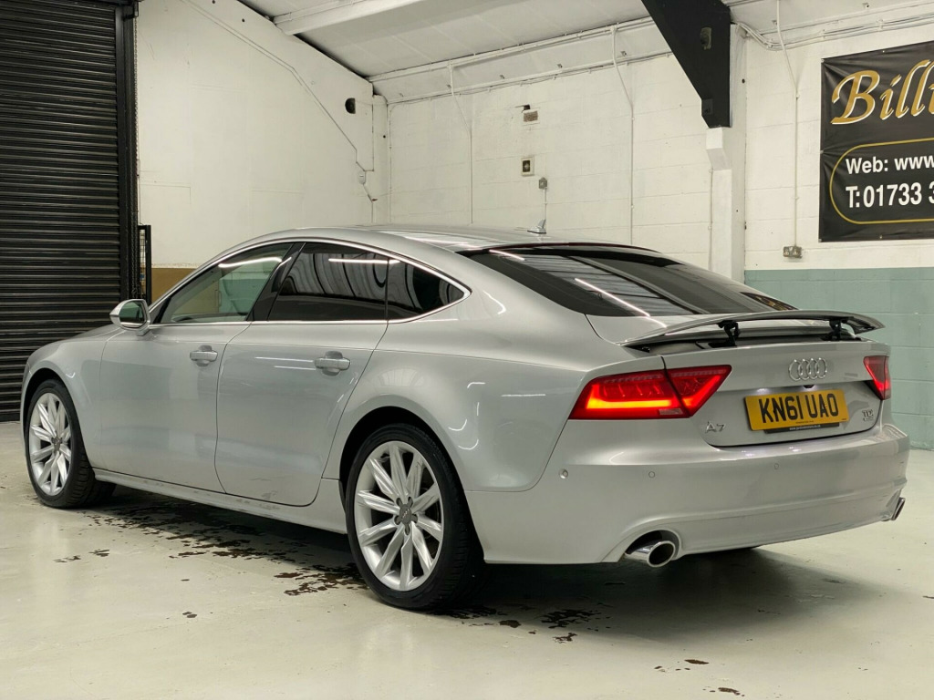 This 2012 Audi A7 TDI V6 SE boasts a clear vehicle history check and a recent service in August 2025 at 140,442 miles, offering peace of mind. This four wheel drive model features a powerful 3.0 litre diesel engine and comes with a 3 month warranty. Notable features include Mobile Telephone Preparation with Audi Connect, Advanced Key for keyless entry, and MMI Navigation Plus with MMI Touch. You'll also find a Speed Limit Display and stylish 19 inch alloy wheels in a 10 spoke design.The Audi A7 TDI V6 SE offers a compelling blend of performance and practicality. Its impressive acceleration from 0 to 62mph in just 6.3 seconds demonstrates its dynamic capability, setting it apart from many similar vehicles. This is complemented by a generous boot space, making it a versatile choice for everyday use and longer journeys. The combination of its advanced technology, comfortable interior, and robust engineering makes this A7 a distinguished option., i navigation plus including mmi touch, mobile telephone preparation - high with audi connect, advanced key, speed limit display, rear side airbags, 19in alloy wheels - 10-spoke design, audi parking system advanced with rear view camera, audi active lane assist, steering wheel - 3-spoke leather-multi-function-heated-sports-shift paddles, head-up display, 18in alloy wheels - 7-arm dynamic design, abs - anti-lock braking system, ami - audi music interface, aux-in socket, acoustic and visual parking system - rear, air conditioning - automatic/electronically controlled, airbags - driver, airbags - front passenger, airbags - front side with curtain, anti-theft alarm, audi drive select, audi parking system plus, audi sound system, auto-dimming rear-view mirror, automatic wipers with rain sensor, colour drivers information system - dis, cruise control, dab digital radio, door mirrors - heated-electrically adjustable with memory function, esp - electronic stability programme, electrically adjustable 4-way lumbar support, electrically adjustable front seats with memory function for drivers side, front centre armrest - adjustable, headlight washers, headlights - automatic adjustment, headlights - bi-xenon plus, heated front seats, isofix child seat mounting for front passenger with airbag deactivation, inlays - matt brushed aluminium, keyless go, lighting package, mmi navigation - sd card based, mmi radio plus, mobile telephone preparation - bluetooth interface, power operated tailgate, power steering - electromechanical/servotronic speed sensitive, remote central locking, space saver spare wheel, split-folding rear seats, steering wheel - 4-spoke leather trimmed/multifunction/shift paddles, steering wheel - multi-function, tyre pressure monitoring system