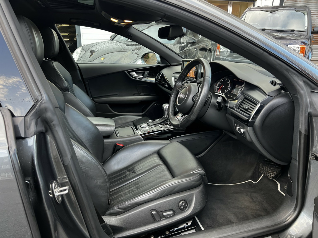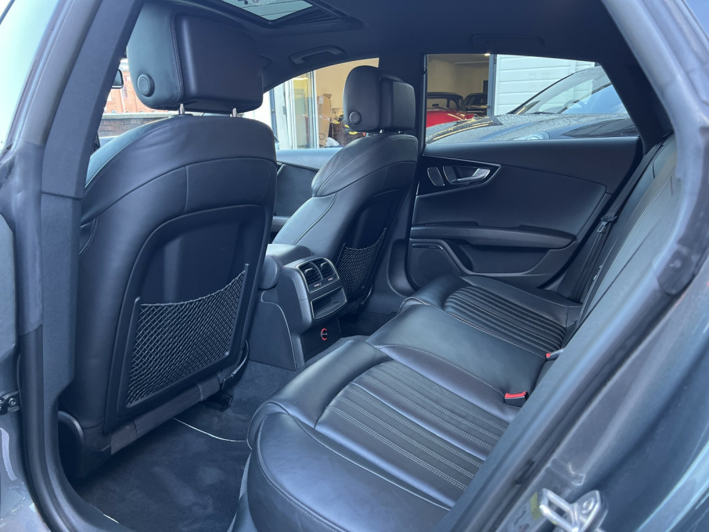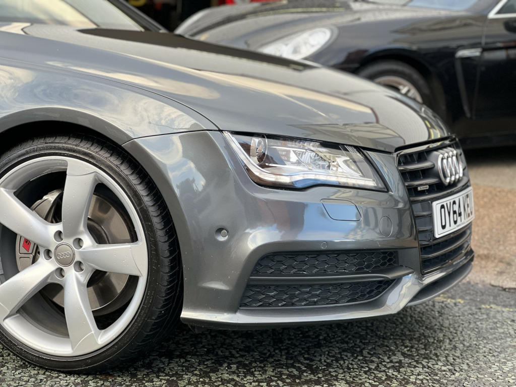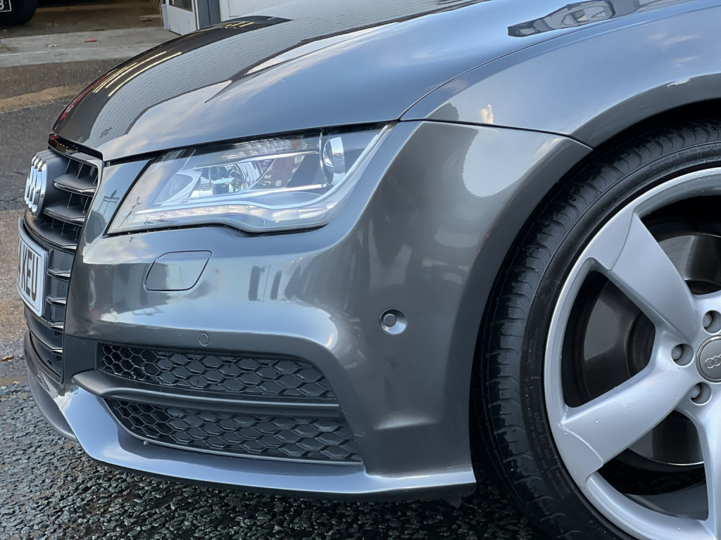 A rare petrol version of the handsome Audi A7 S Line with the superb 3.0 TFSI engine found in the Audi S5. Sure footed Quattro system with over 300 BHP this a great family car that is also fantastic to drive. Excellent spec with electric seats, BOSE sound system, satellite navigation, head up display, electric glass sunroof, bluetooth phone prep, 21 inch alloy wheels, xenon headlights, self parking feature, auto lights and wipers and push button start. Clearly cherished, this car is in excellent condition throughout. , 2 keys, all books and manuals along with spare wheel and tools. Serviced at 11k, 17k, 21k, 26k, 34k, 52k and 71k (inc transmission)
